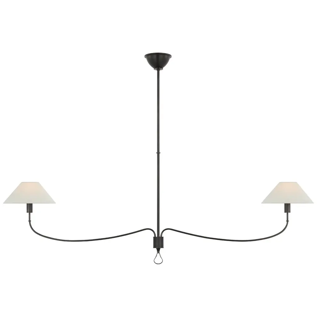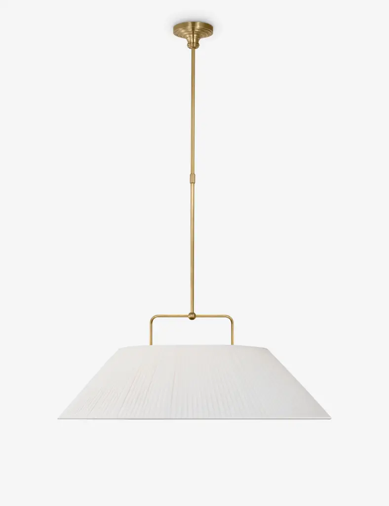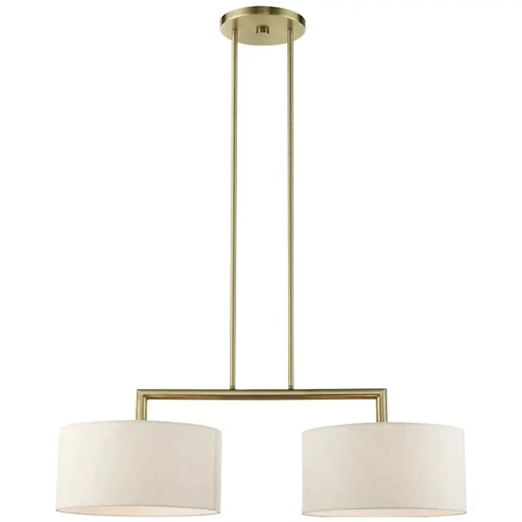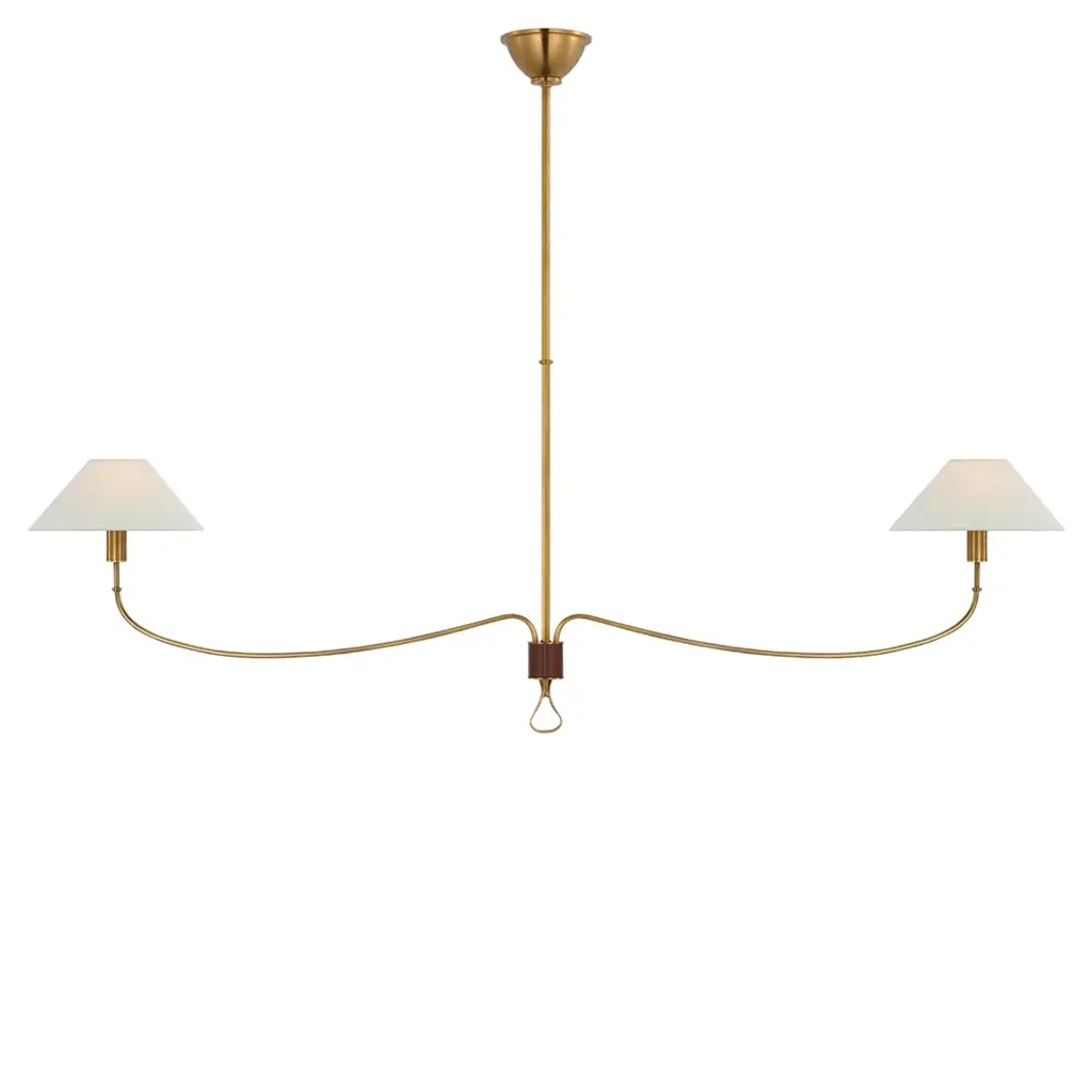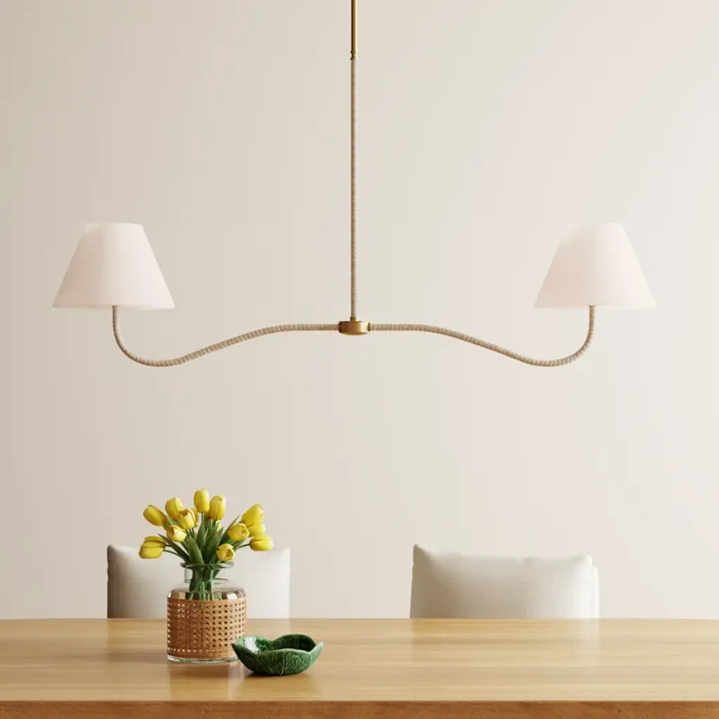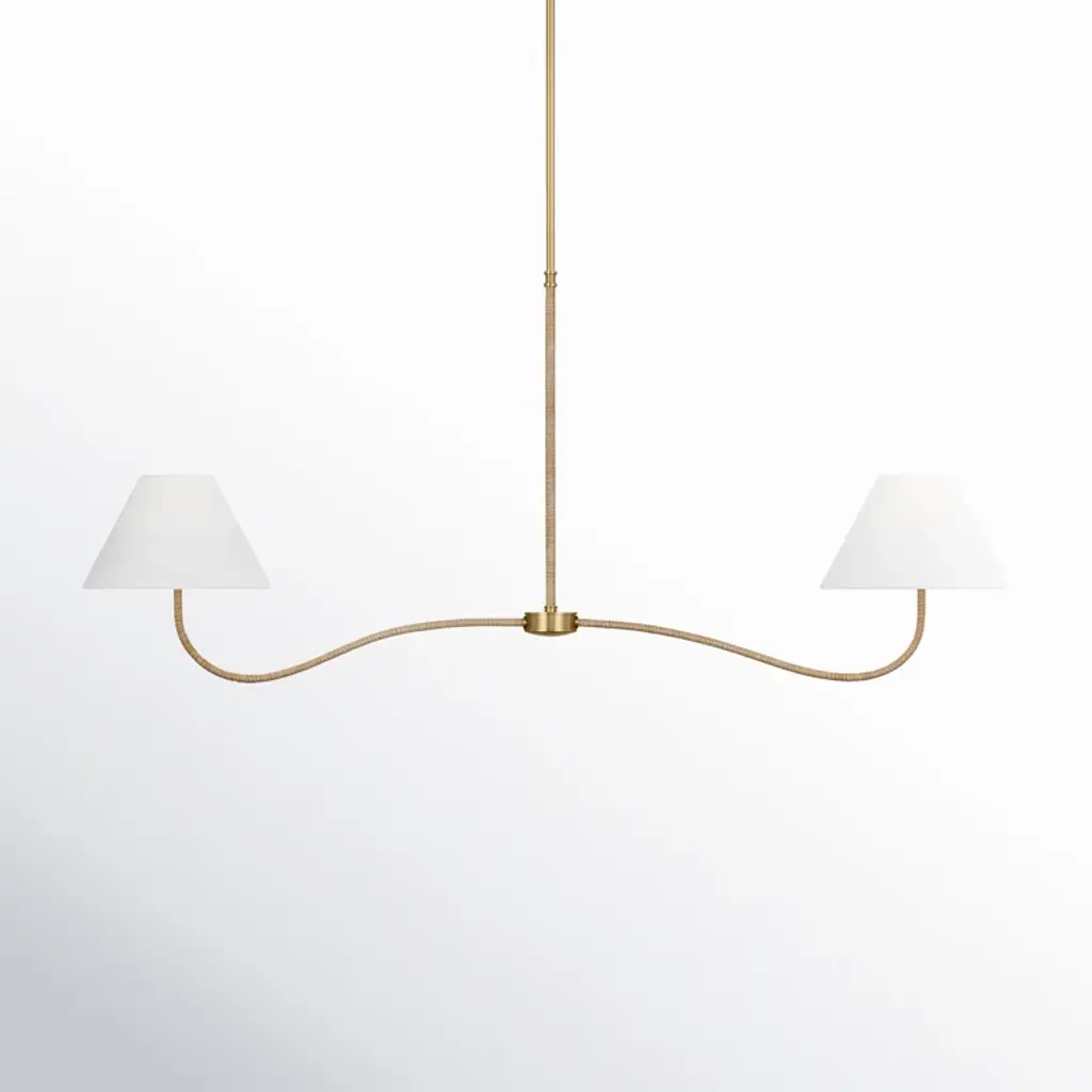 Illuminate your space with the classic silhouette of this 2-light chandelier. The brushed brass finish and white linen shades are simply timeless. On a more modern note, it is dimmable, height adjustable, and sloped ceiling compatible – so you can customize it for just about any space. Candelabra bulbs are sold separately.