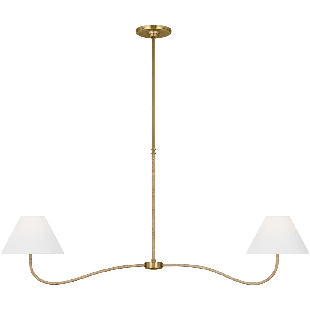 Discover the timeless elegance of the Go Lightly 54" Two Light Linear Chandelier, a masterpiece by Barbara Barry. Part of the Visual Comfort Signature Collection, this chandelier exudes sophistication and grace, making it a perfect centerpiece for any room. Its sleek design and refined craftsmanship reflect a harmonious blend of form and function, providing a warm and inviting ambiance. Whether suspended above a dining table or illuminating a grand hallway, this chandelier offers a touch of luxury and style that complements any decor. Experience the artistry and attention to detail that Barbara Barry is renowned for with this exquisite lighting fixture.