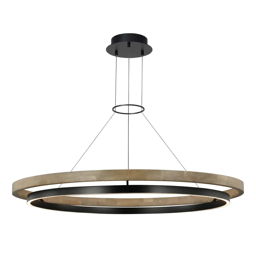 Experience the sophistication and elegance of the Sean Lavin Grace Chandelier from Visual Comfort & Co. Its two rings, one natural oak and one black metal, create a stunning contemporary-meets-industrial design. With integrated LED technology and dimmable capabilities, this chandelier provides a graceful halo of diffused light, making it the perfect centerpiece above a dining room table or living room seating group. Highlights
