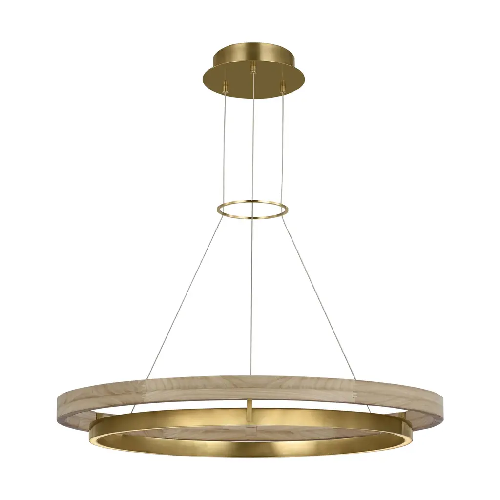 Experience the sophistication and elegance of the Sean Lavin Grace Chandelier from Visual Comfort & Co. Its two rings, one natural oak and one black metal, create a stunning contemporary-meets-industrial design. With integrated LED technology and dimmable capabilities, this chandelier provides a graceful halo of diffused light, making it the perfect centerpiece above a dining room table or living room seating group. Highlights