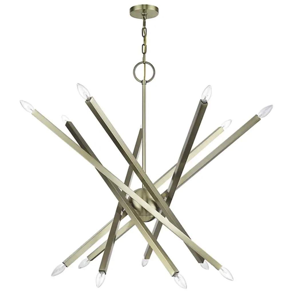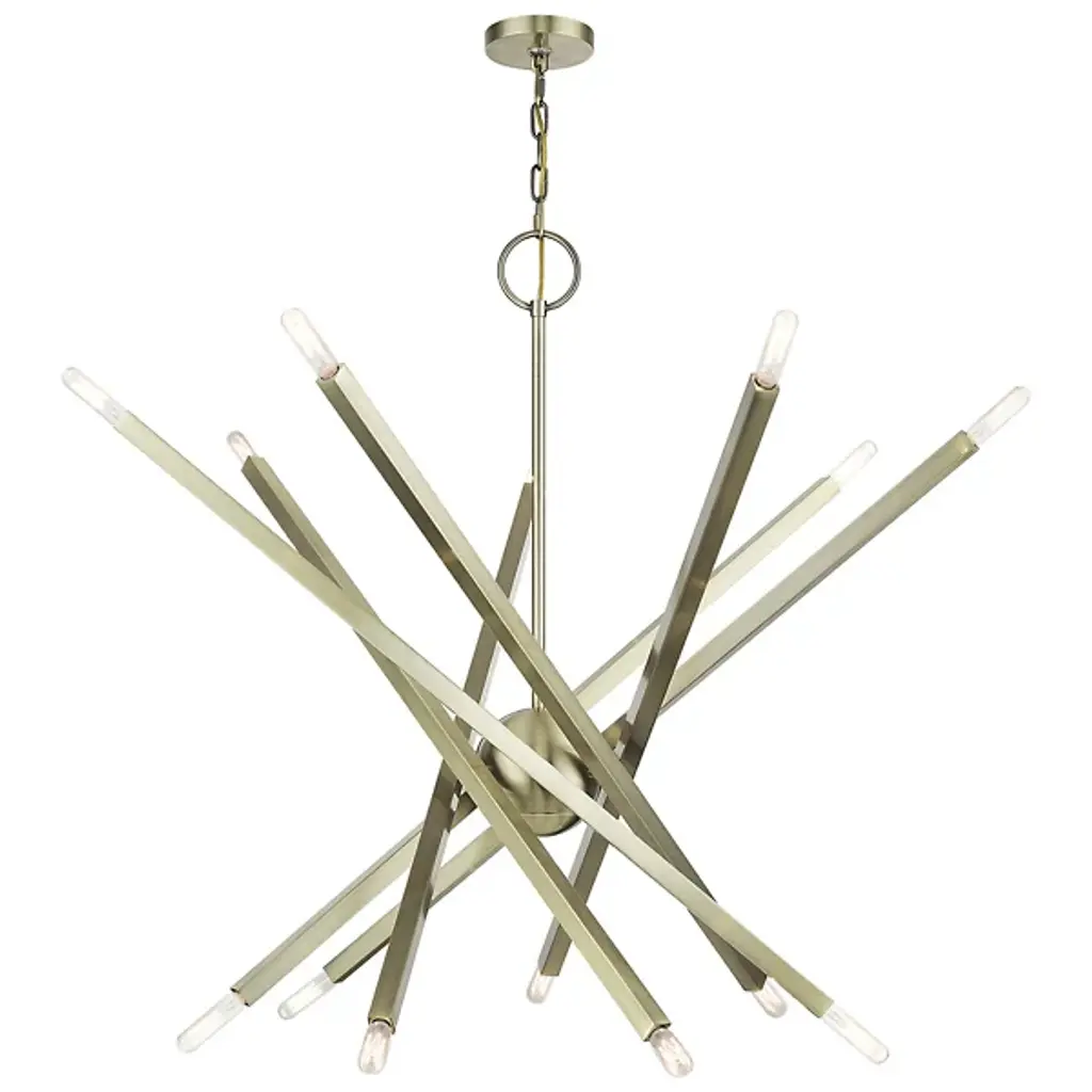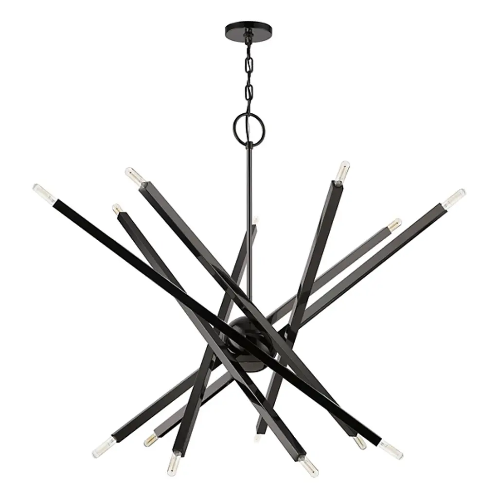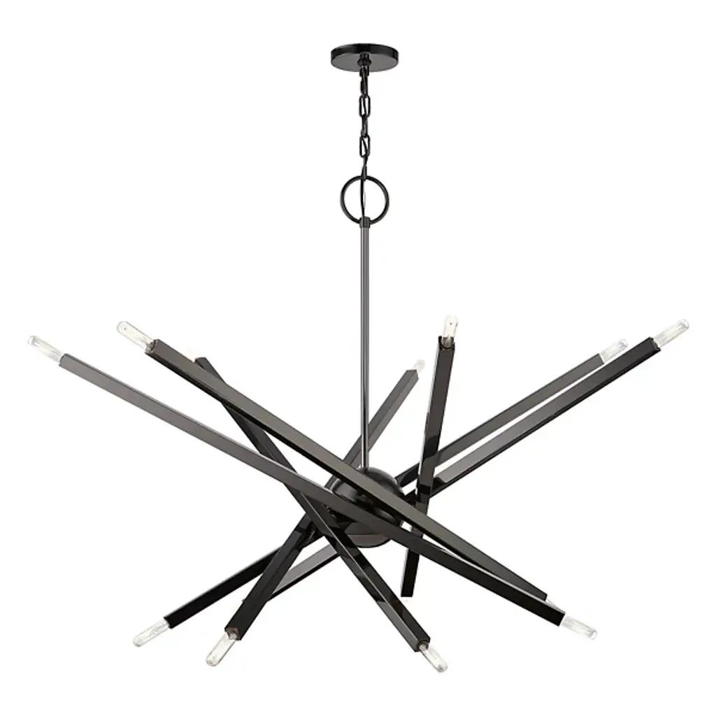 The eyes can’t stay still as they follow the graceful movement of the Grace Chandelier from Alder & Ore. Evoking the starburst, multi-directional design of the mid-century sputnik, this piece sets itself apart with a sculptural composition that appears to change at every glance. The chandelier’s globe body arouses one’s curiosity as it hides behind a dynamic array of lines. The linear arms appear erratic in movement yet come together to create a balanced, graceful silhouette. Each arm features dual, exposed bulbs for a truly multi-directional light. The topping candelabra bulbs create an inviting ambiance while producing an artful play of shadows.