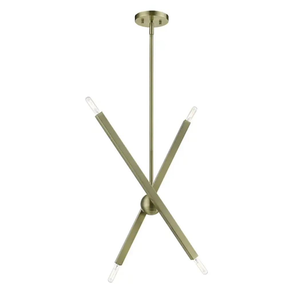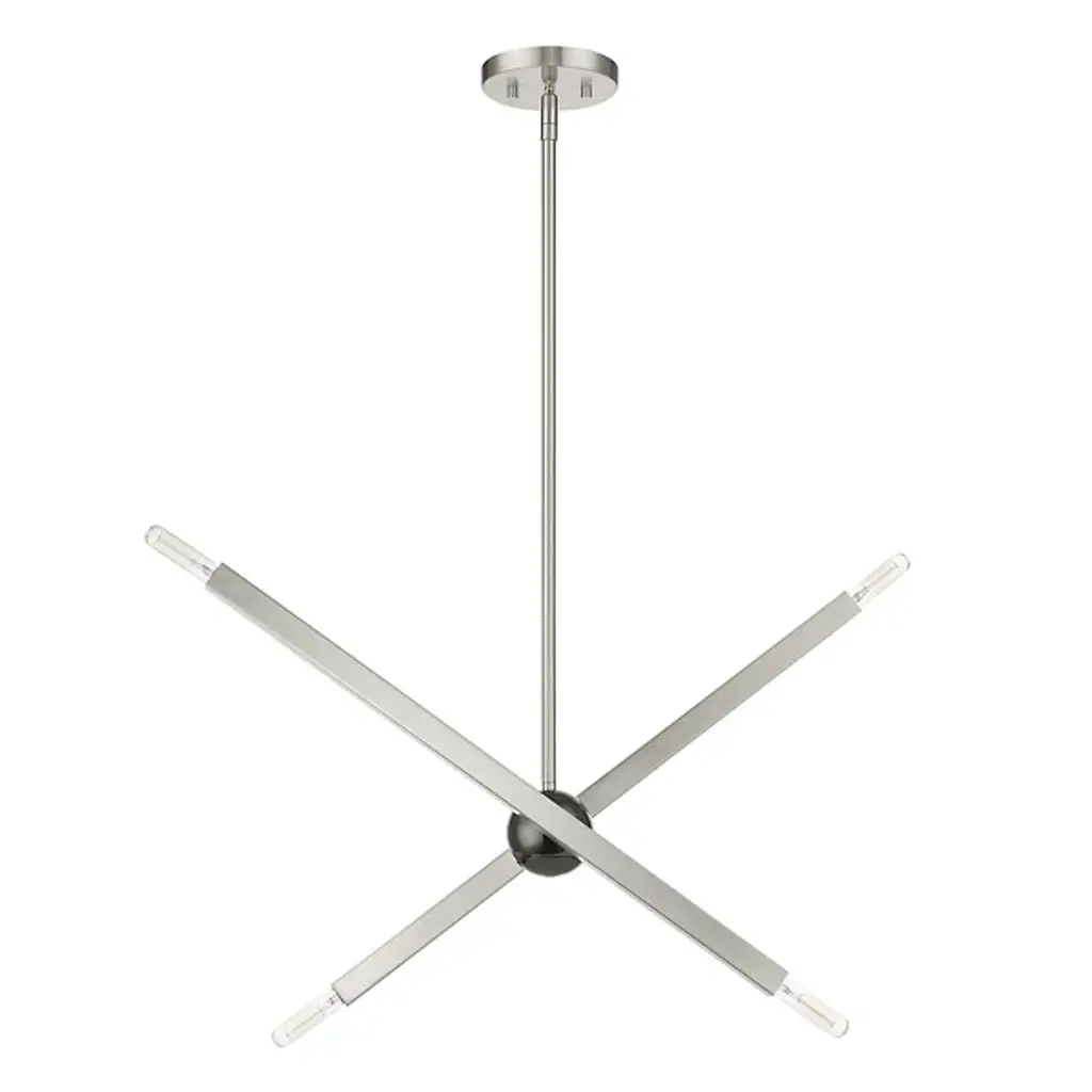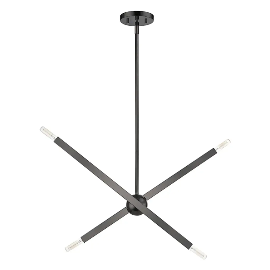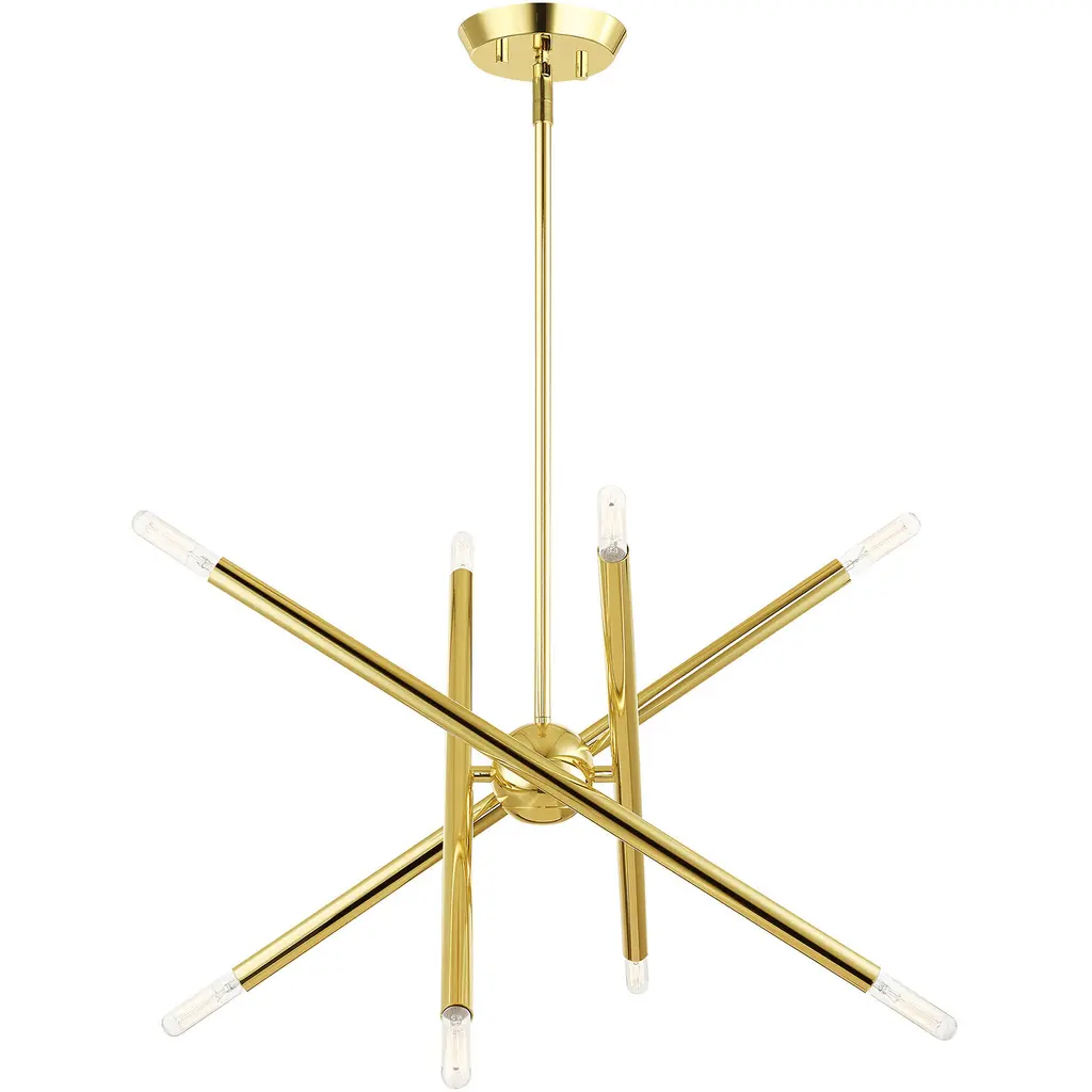 The eyes can’t stay still as they follow the graceful movement of the Grace Chandelier from Alder & Ore. Evoking the starburst, multi-directional design of the mid-century sputnik, this piece sets itself apart with a sculptural composition that appears to change at every glance. The chandelier’s globe body arouses one’s curiosity as it hides behind a dynamic array of lines. The linear arms appear erratic in movement yet come together to create a balanced, graceful silhouette. Each arm features dual, exposed bulbs for a truly multi-directional light. The topping candelabra bulbs create an inviting ambiance while producing an artful play of shadows.