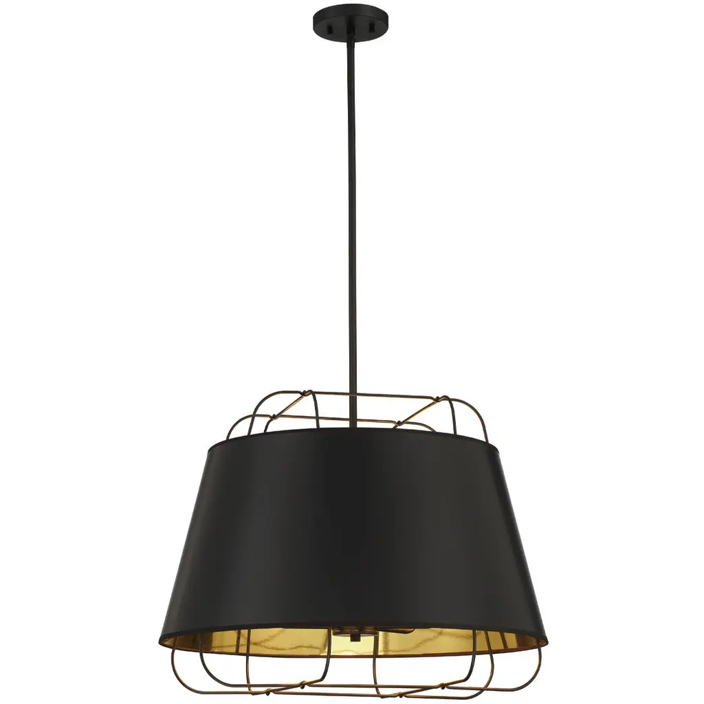 Deserving of its name, the Grandeur Chandelier from Metropolitan Lighting intrigues with a sequence of artful elements. The modern piece evokes Art Deco-style visuals. These visuals show in the graphic lines of the open, angular structure. A velvet drum shade surrounding the structure appears to float in the air. The crystal glass finial below does the same with a mesmerizing bubbly display that catches grand highlights.