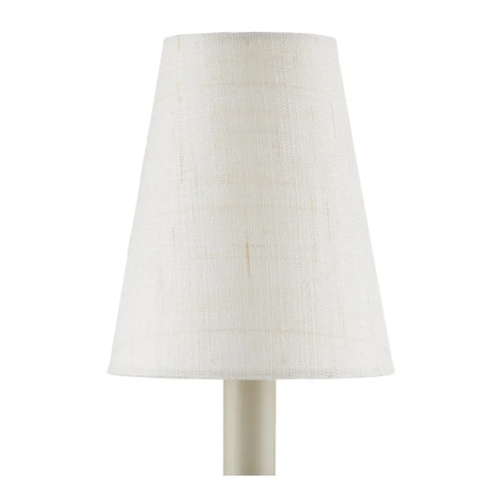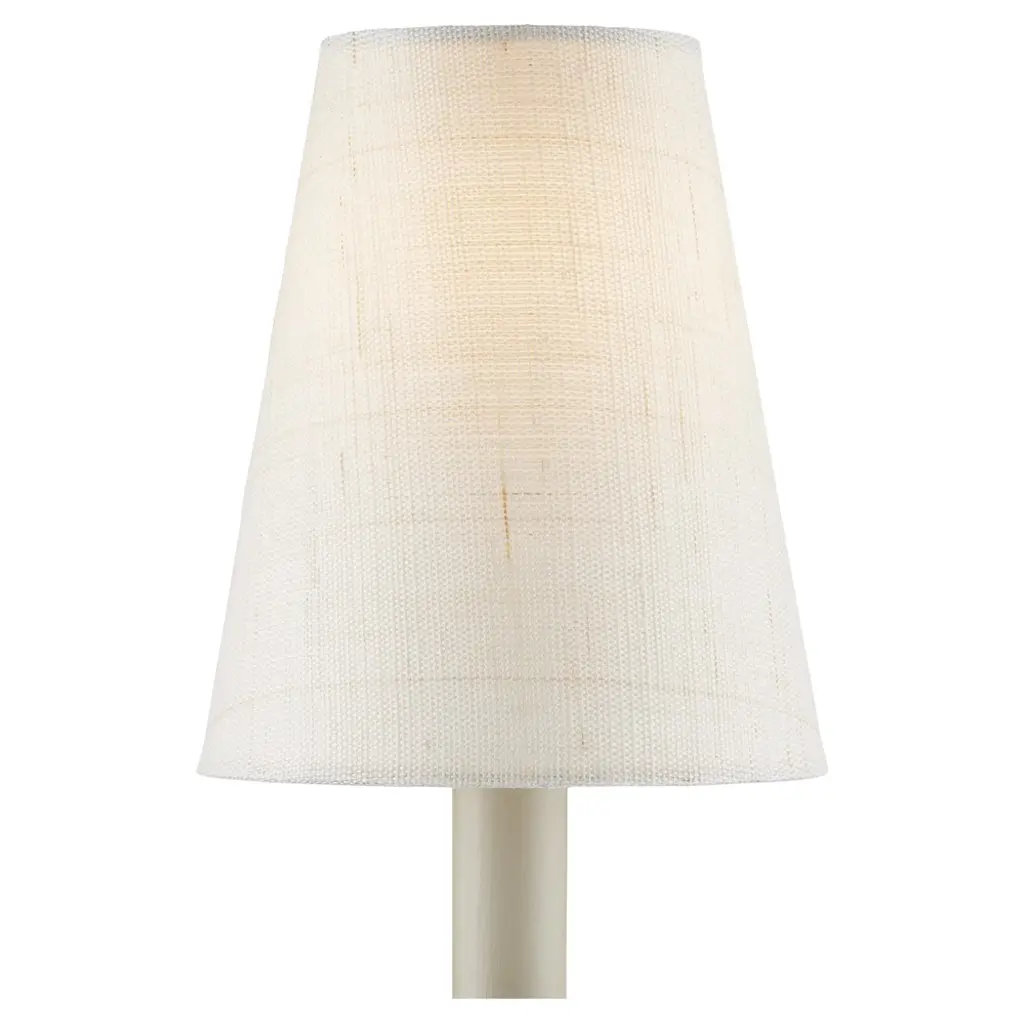 Petite shades made of a finely woven grasscloth bring added warmth to a space. Due to the natural material's inherent texture, there is a knotty richness to their surfaces, though the lighter hues are so delicate they read like linen. In fact, the shades for chandeliers and wall sconces in this collection are of the finest weaves made by hand, evidenced by the tiny telltale knots along the surface that prove they are the ultimate definition of artisanal. The shades come in three different weaves, the one with the most texture trimmed in thin bands of cloth and the finer ones culminating with a rolled edge. Both designs exhibit a tailored feel, as you can see from this natural version of the tapered shade. Top Diameter: 3" Bottom Diameter: 5" Height: 6"