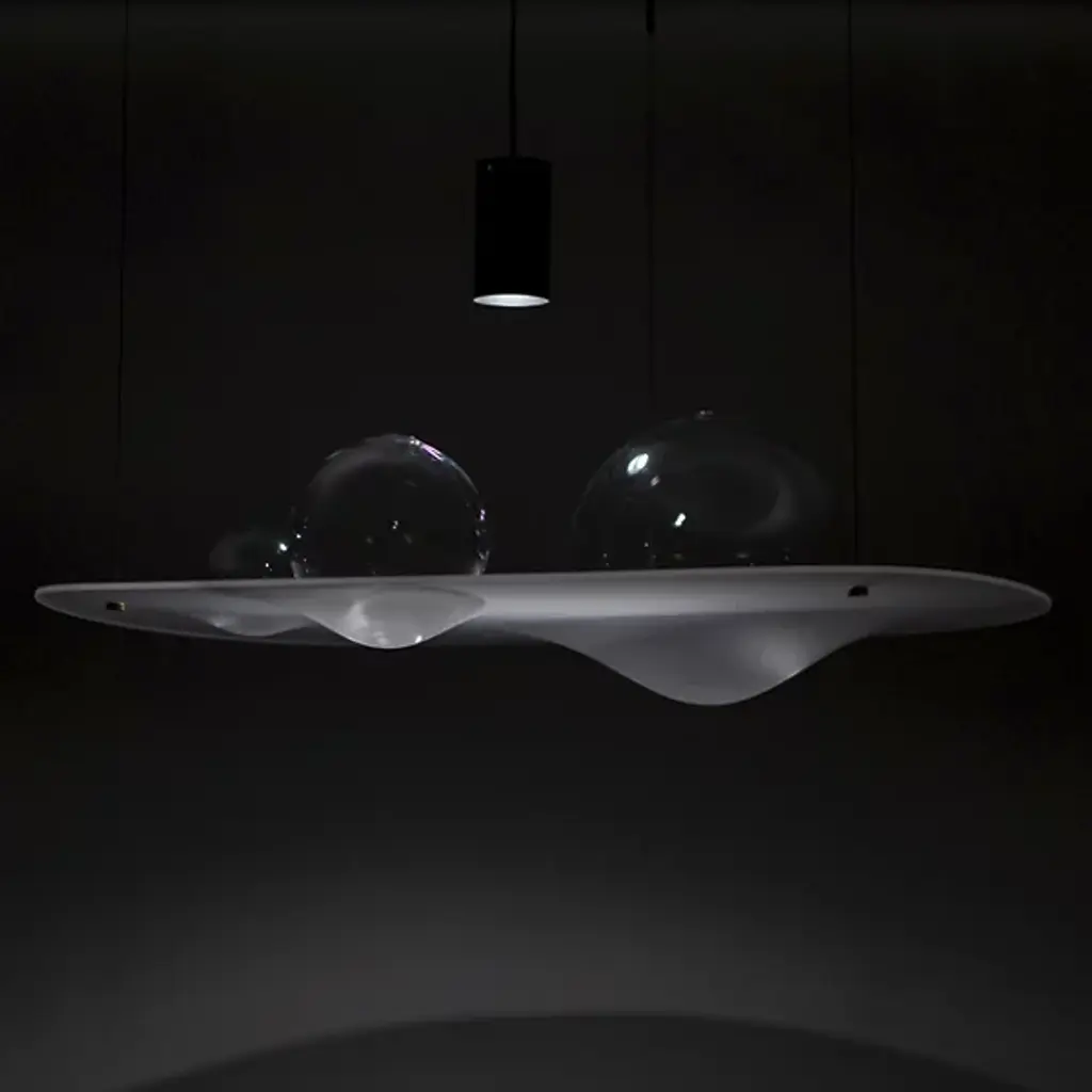 Richard Clarkson Studio presents the limited edition Gravity Well Chandelier. It features hand-blown glass and a formed acrylic chandelier bodice that has been inspired by the graphs and models of gravity and its effects as seen by celestial bodies in outer space. Clarkson’s studio is a New York/New Zealand-based art and design laboratory that draws direct inspiration from the universe itself and all the things we admire in the sky.