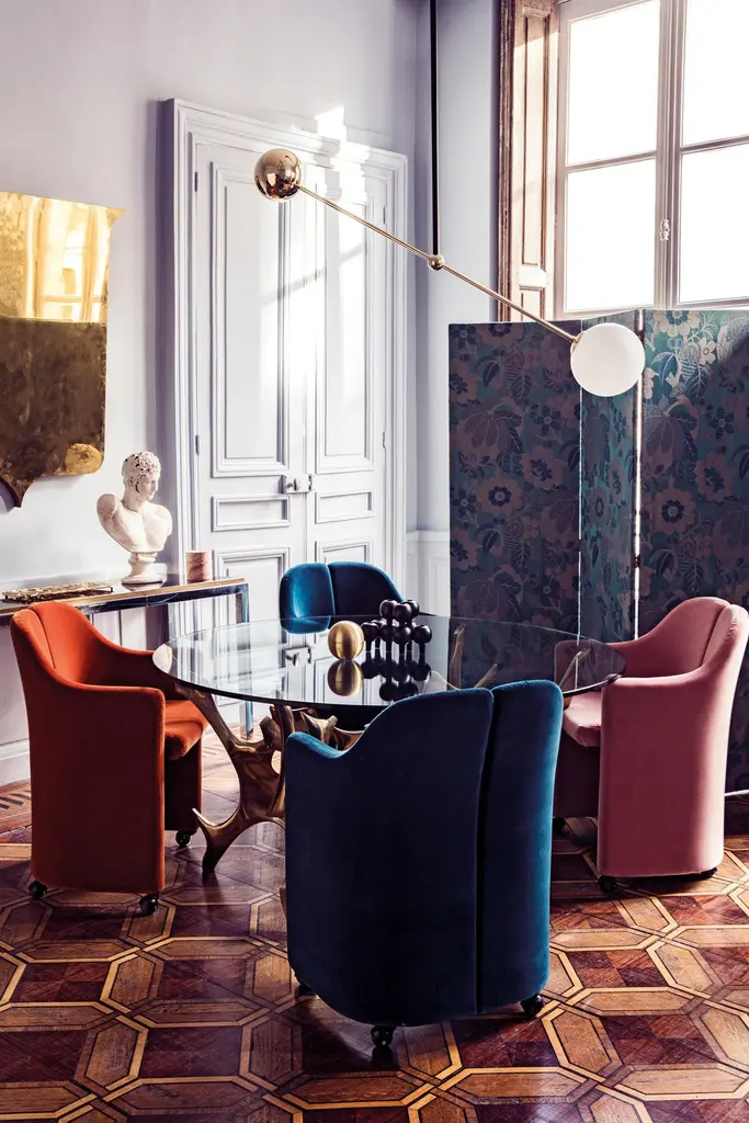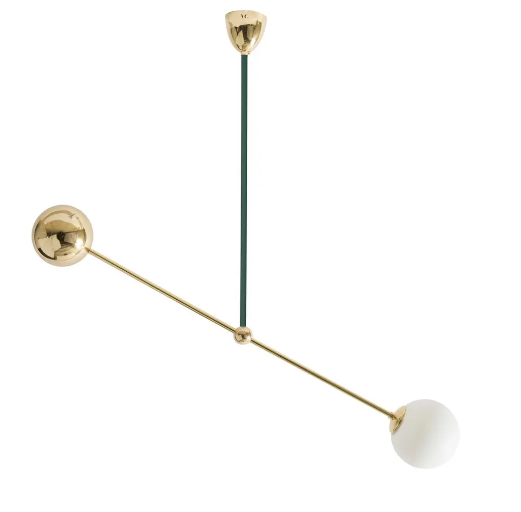 Green chandelier 03 by Magic Circus EditionsDimensions: W 111 x H 120 cm, also available in H 170, 220Materials: Brass, mouth blown glassAll our lamps can be wired according to each country. If sold to the USA it will be wired for the USA for instance.Rethinking, reimagining, redesigning familiar objects that we look at every day without ever really seeing them and using light to tell stories, this how Marie-Lise Féry sees her work. Offering a new take on our urban heritage, changing our perspective through her work on scale and usage. Since 2015, Magic Circus Éditions has been setting the world of lighting ablaze, creating airy, playful and magical designs that merge retro with sleek and contemporary. A free-spirited antiquarian, founder Marie-Lise Féry draws inspiration from the world of cabarets and the magic of the circus to give shape to imaginative, fun and playful collections. The air of magic she breathes into her work reveals a wealth of interpretations and widens possibilities for creative interiors. The combination of traditional know-how — outstanding craftsmanship — and her imaginative take on historical, everyday objects lends an unexpected and charming quality to her creations.Féry’s lights are designed just like magic lanterns — precursor to modern-day cinema —, inspiring wonder through oversized, seemingly weightless compositions and understated references. Each collection has its own inspiration: the first models of street lighting for Collection 01; the happy memories of funfairs, sweets and balloons for her latest collection Balloon; the Far East for Collection 02; and the colourful, carefree spirit of the 1970s for Pop-Up, released in 2019. Magic Circus Éditions draws on airy designs, dream-like inspirations, colours and fun to create a sense of enchantment.Magic Circus Éditions founder Marie-Lise Féry was born in Paris. After studyingart business, she moved to New York to start her career. Fascinated by the city’s architecture, she found an endless source of inspiration in the Big Apple’s monumental decors. Returning to France to settle down in Lyon, she opened an antiques gallery named Un Château en Espagne, and started telling her own stories through objects she gleaned on markets all around the country. A way for her to perpetuate her mother’s motto: “Objects with a soul will always belong”. Since 2015, the year she established Magic Circus Éditions, she has moved on to lighting as a new medium for telling her stories, bringing the magic of the show into home interiors. With her love for the circus, turn-of-the-century cabarets and music halls, Marie-Lise Féry’s love of unusual objects has remained strong, but now prefers to focus her attention on pieces she has imagined herself. With a fun and light-spirited approach, she creates a bold visual effect that elicits instant attraction. She collaborates with some of Europe’s greatest artisans, from Prague and Murano to Clermont-Ferrand, working for instance with a Czech company specialising in sculpting glass using a diamond-blade saw, or an auto body shop renowned for their work with lacquers. The refinement of shapes and finishes, bespoke designs and technical excellence all contribute to creating pieces that inspire surprise and wonderment. In the manner of Wes Anderson in Grand Budapest Hotel, blending together elegance, humour and unexpected details, her designs never fail to surprise. Attentive to the effect of her designs both in daylight and at night, Marie-Lise Féry takes us on a journey through space (from outside to inside) and time (from yesterday to today).