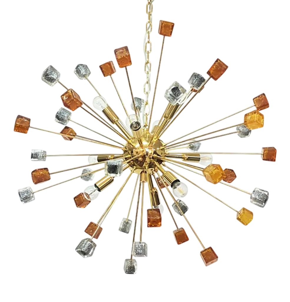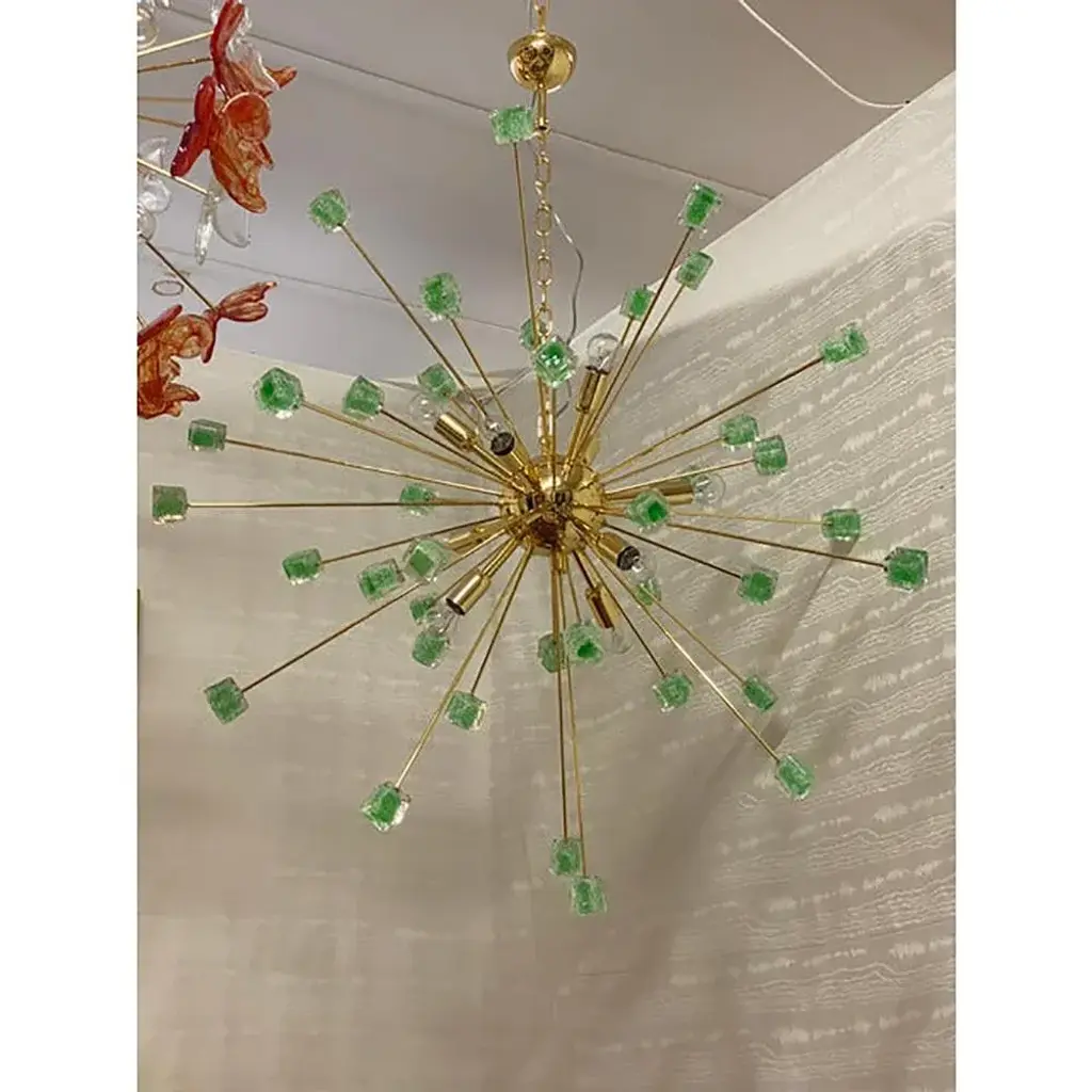 Green Cubes Murano Glass Gold Sputnik Chandelier By Simoeng