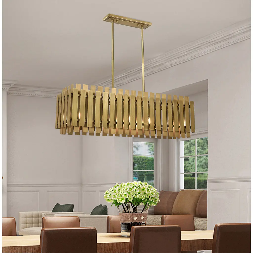 Greenwich 5 Light 42 Inch Natural Brass Linear Chandelier Ceiling Light