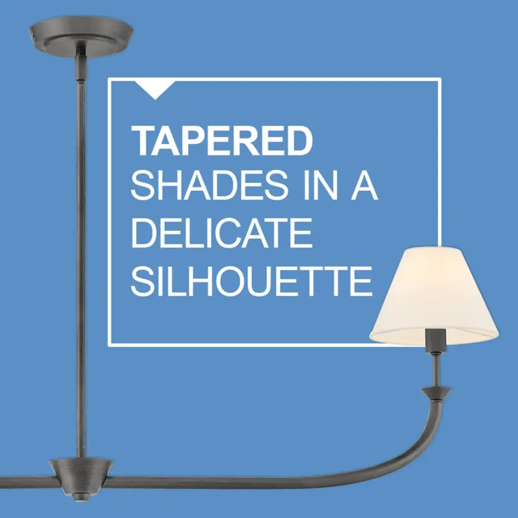 Inspired by traditional lighting styles, Greta complements its slim, contemporary silhouette with timeless details and classic finishes. Tapered, off-white linen shades softly diffuse light, filling your space with a warm ambiance.