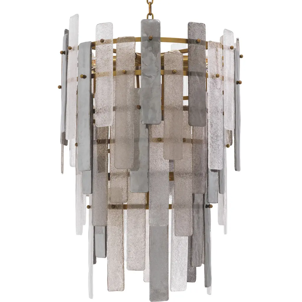 Effortlessly classy with a touch of modern appeal, the Greyson Chandelier has a tapered frame with a gorgeous antique brass finish. Trimmed with strips of handmade glass in different colours and lengths, this contemporary chandelier creates a luxurious vintage vibe. It will bring an ambient, cosy illumination into your interior.