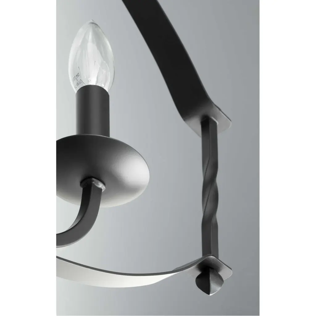 A black iron frame with twist elements takes center stage in the Greyson Collection. The six-light cluster nestles inside this rustic piece for a strong, bold, yet casual feel.