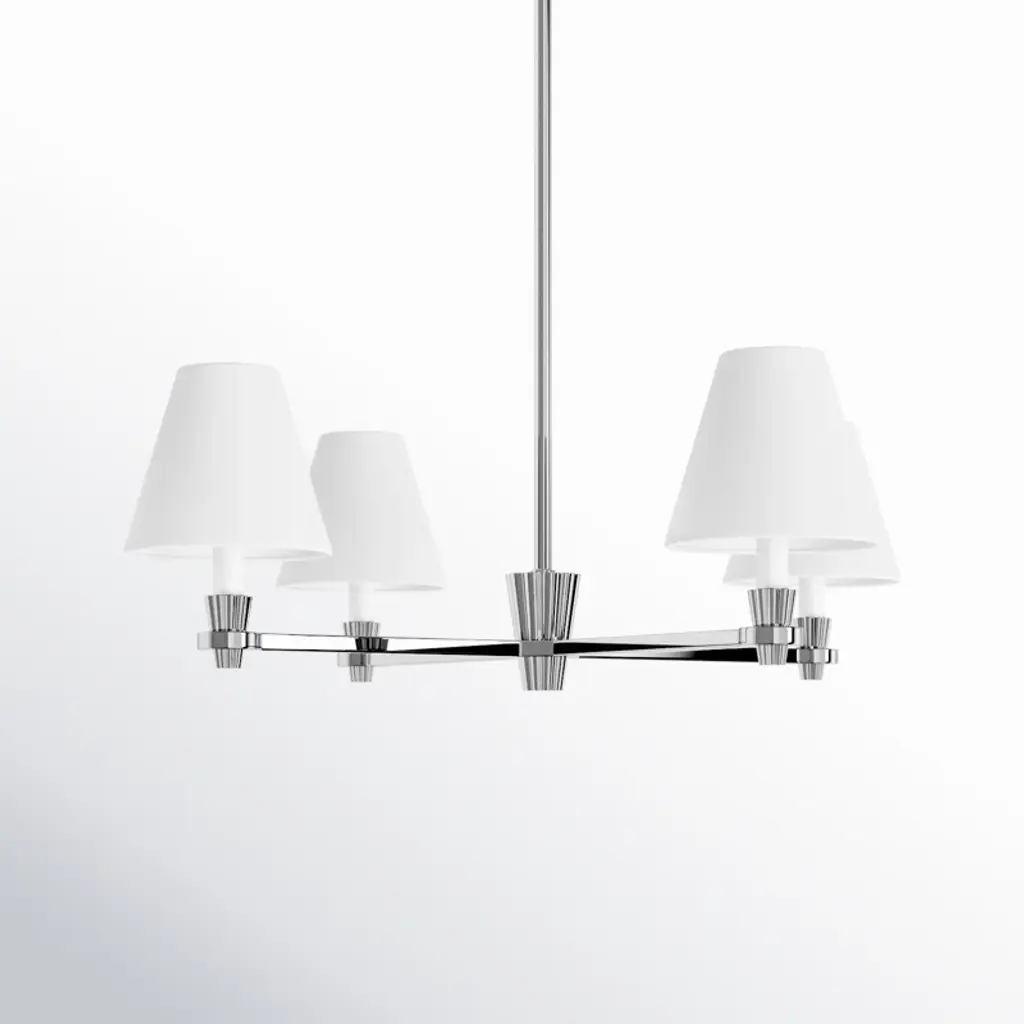 The perfect balance of minimalist and lustrous. The pop of metallic in the Grove Isle’s light shades is the perfect complement to the linear chandelier’s classic finishes. This modern minimalist chandelier's mid-century inspired light shades are connected by slender arms for a look that’s playful and beautiful.