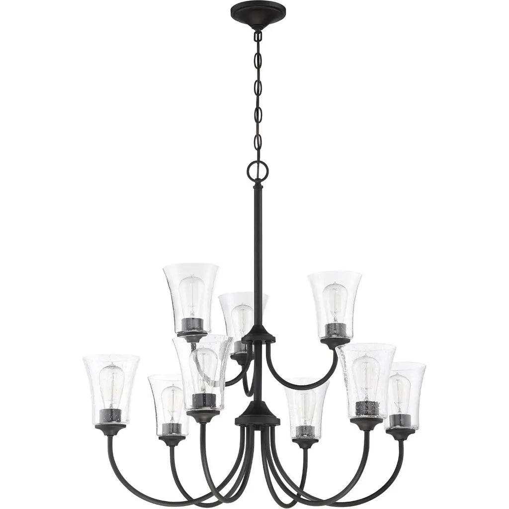 Gwyneth 9 Light 32 Inch Flat Black Chandelier Ceiling Light In Clear Seeded, Neighborhood Collection