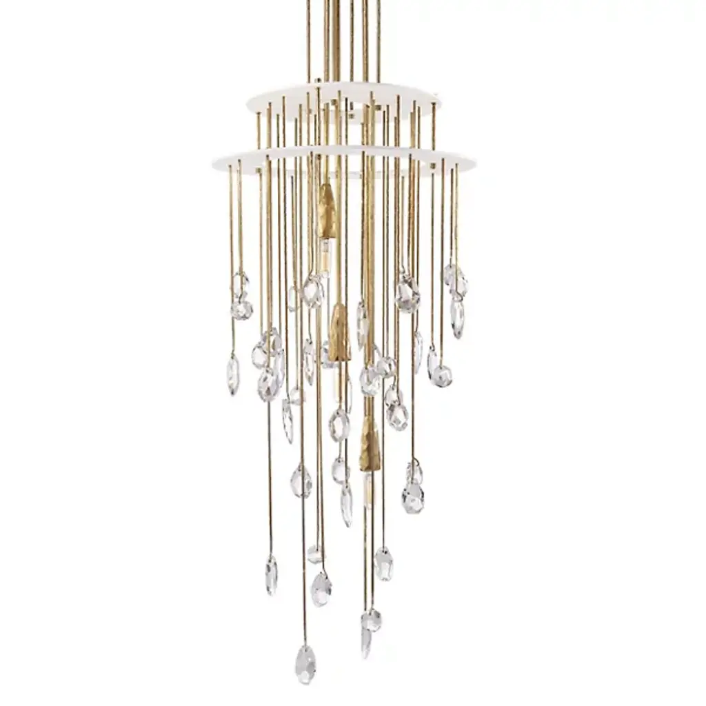 Bring beauty and brilliance to your home with the Hailee Chandelier by Visual Comfort Signature, formerly known as Visual Comfort, A stunning design from Ralph Lauren, this fixture features tiers of slender metal stems dropping gleaming clear crystal beads at their end. A circular disc canopy anchors the piece to the ceiling and provides a clean contrast for the array of faceted crystals below. Hammered metal sockets impart glowing incandescent bulbs throughout the piece, emitting a radiant light that blankets the room.
