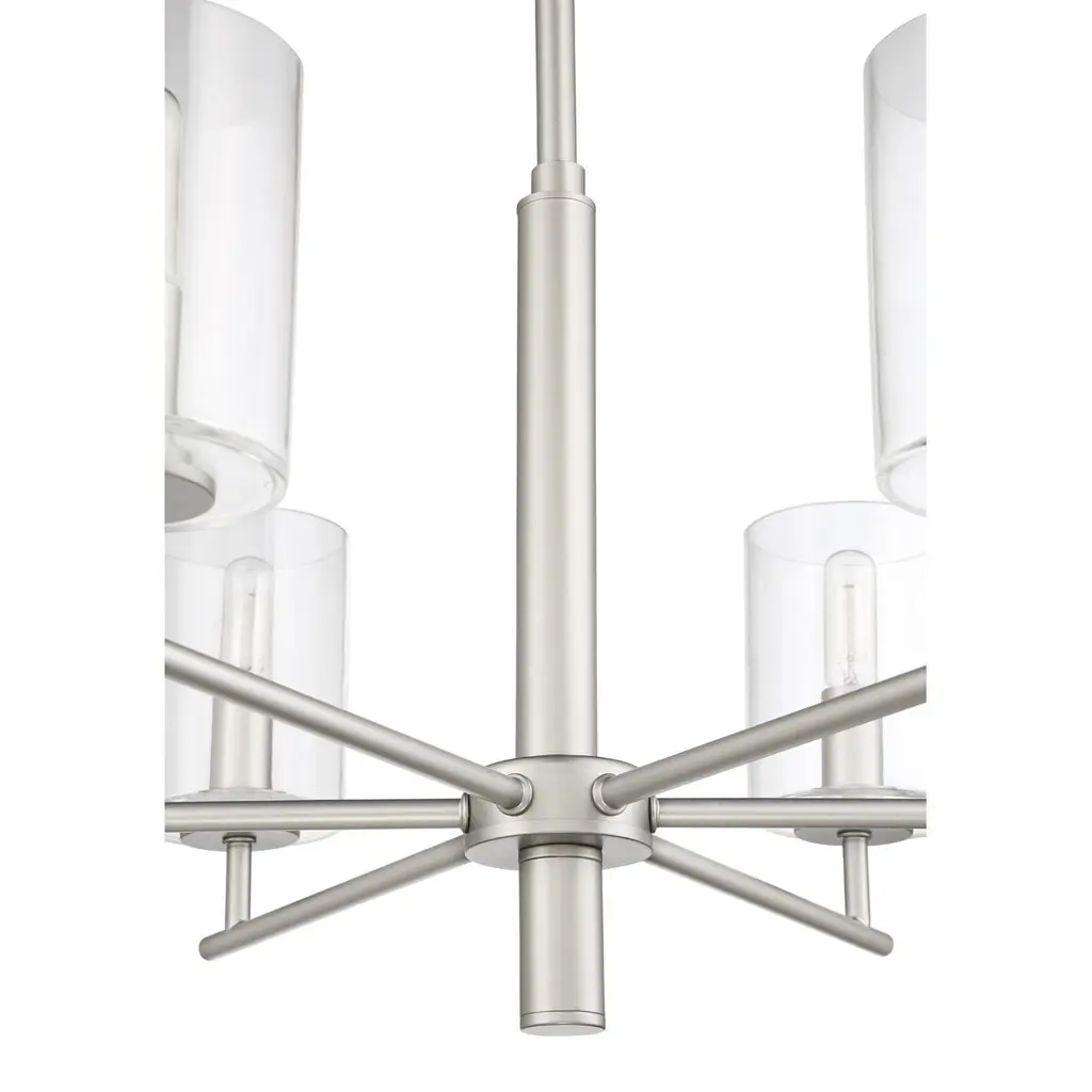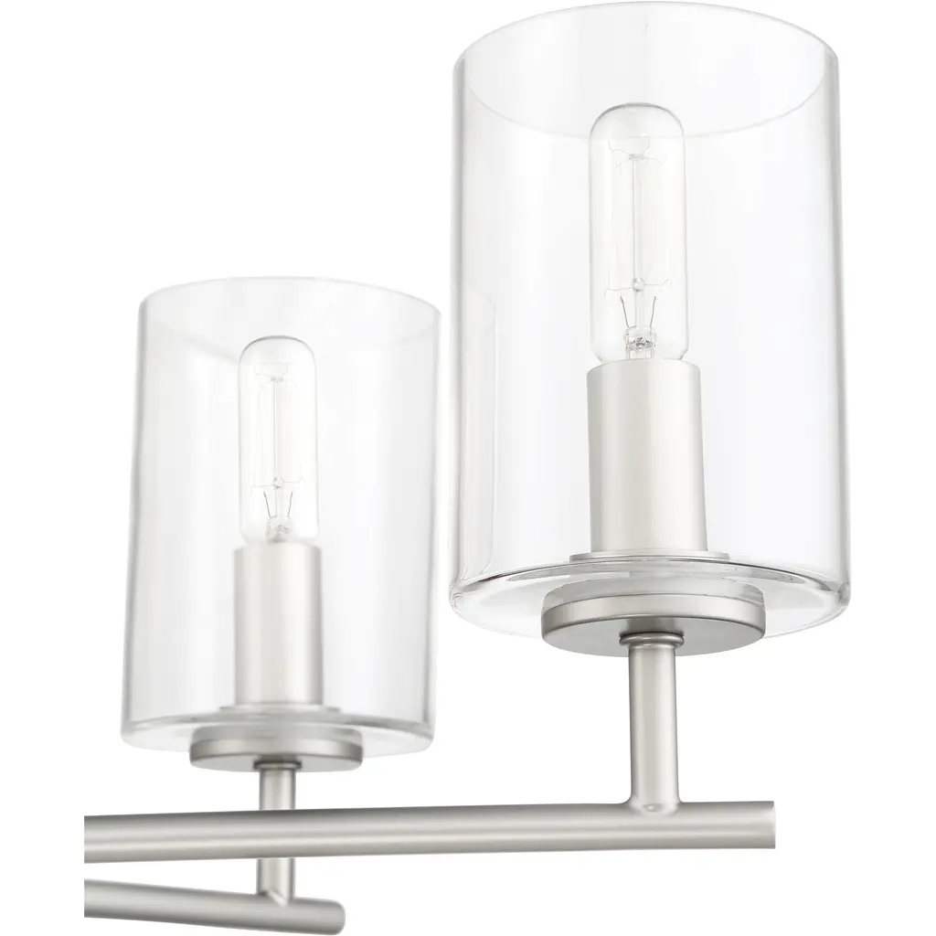 The elevated clear glass cylinder globes and slender arms enhance the simplistic beauty of the Hailie interior lighting collection by Craftmade. The Hailie collection includes a full array of chandeliers, semi and flushmounts, pendant and several sizes of vanity bath bars.