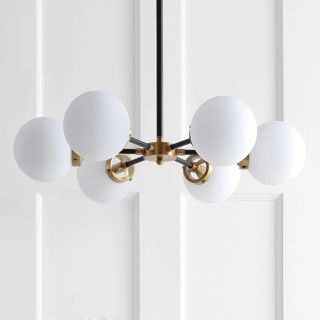 Haldrin 6-light Frosted Glass Globe Chandelier, Gold/black
