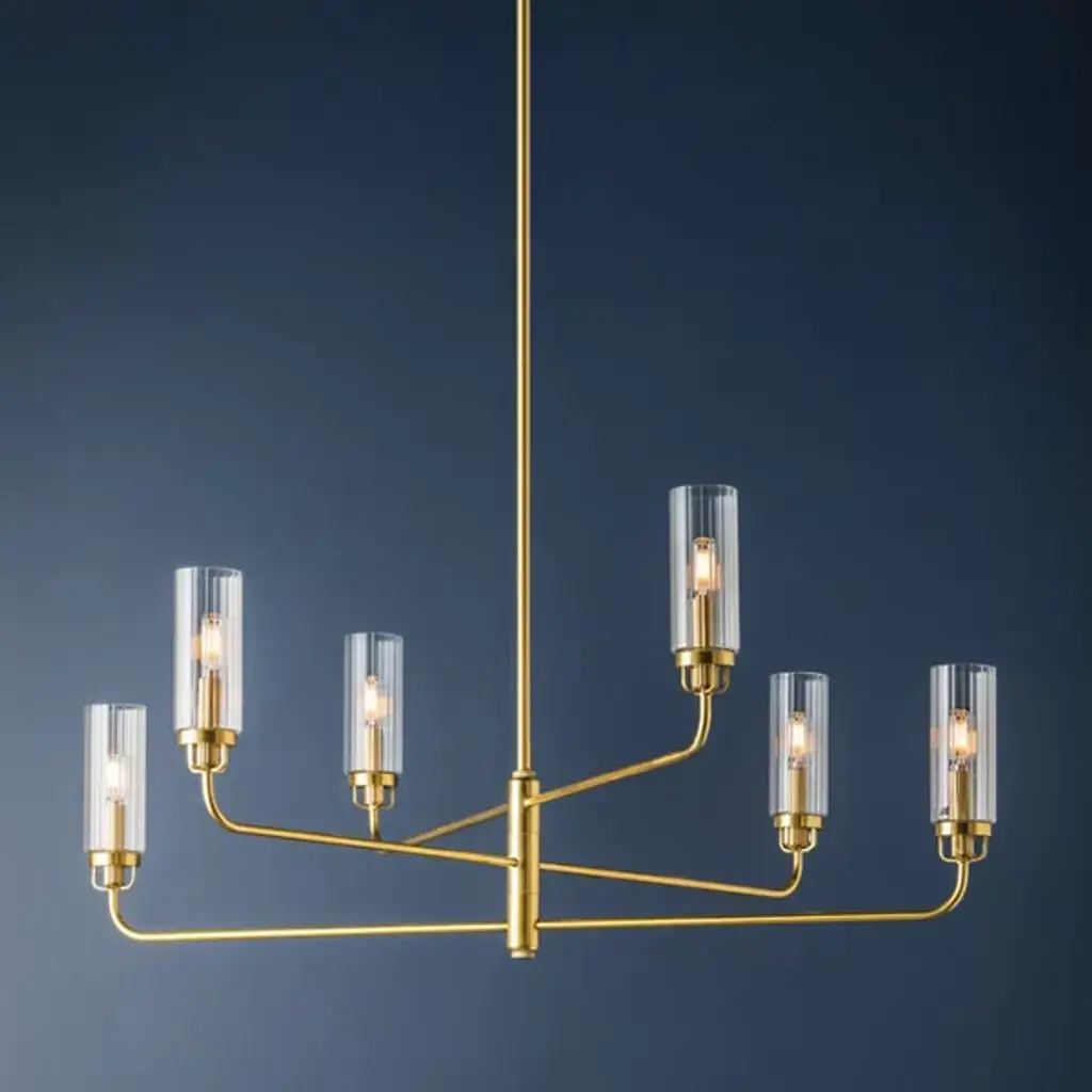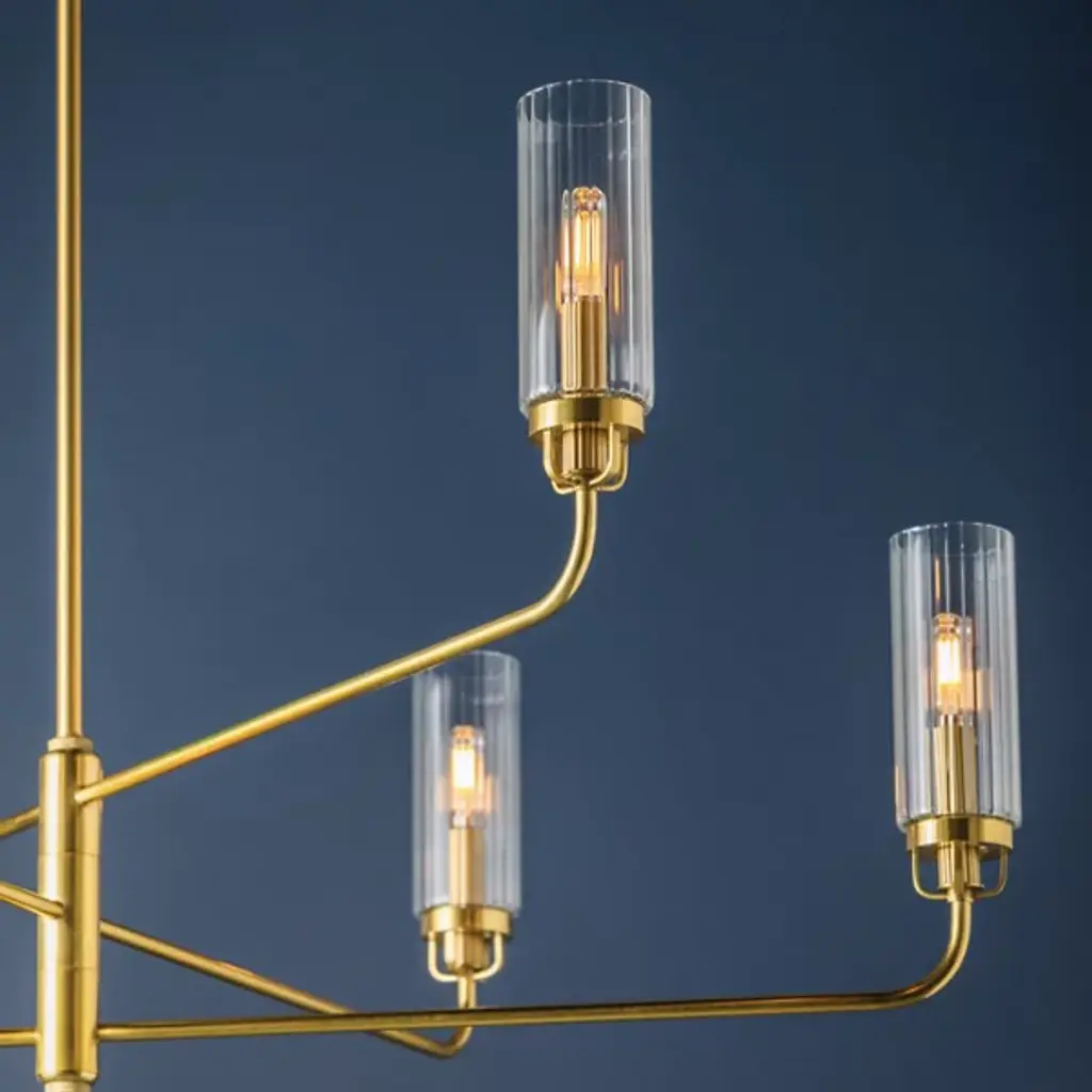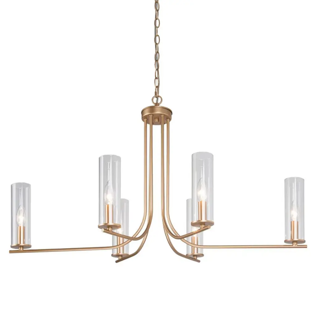 The Halifax Chandelier from Hudson Valley Lighting is a luminary that takes design cues from the Art Deco movement. The arms of Halifax curve upwardly at the ends, bolstering clear ribbed glass hurricane lampshades. The steel framework, with its refined aesthetic, evokes the glamor of the era, while the slender profiles form a distinctive, transitional look. Crafted with intention, your chandelier blends functionality and durability. Illuminated by LEDs, this lighting solution casts a brilliant glow that’s adjustable using a separately sold ELV dimmer.