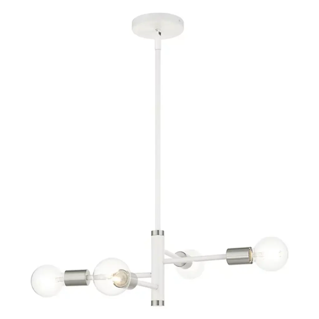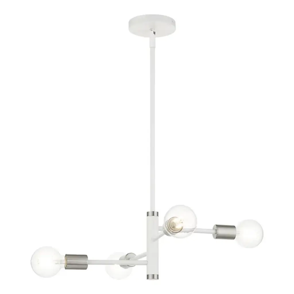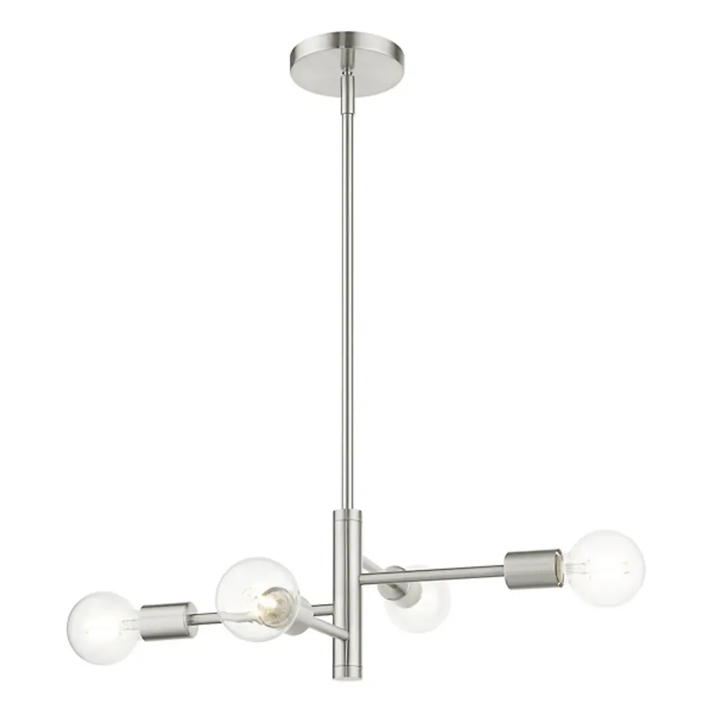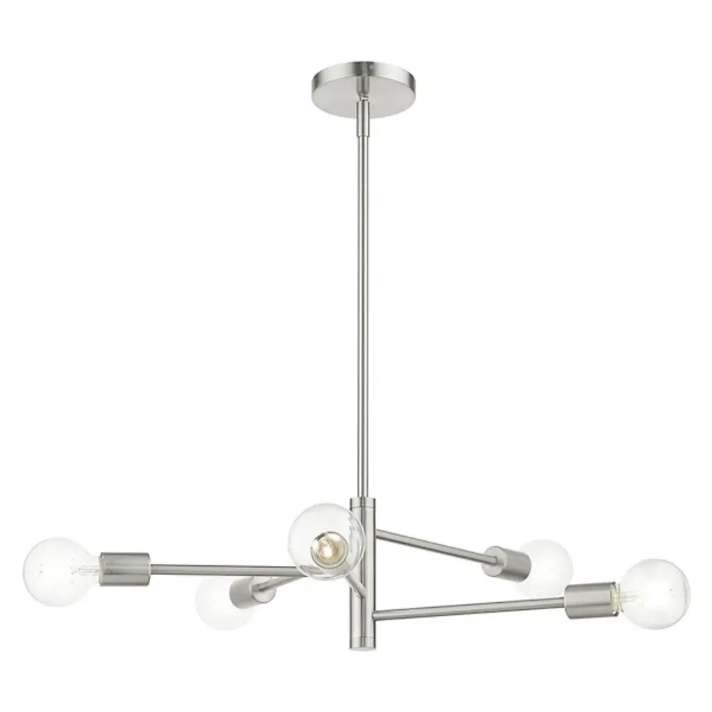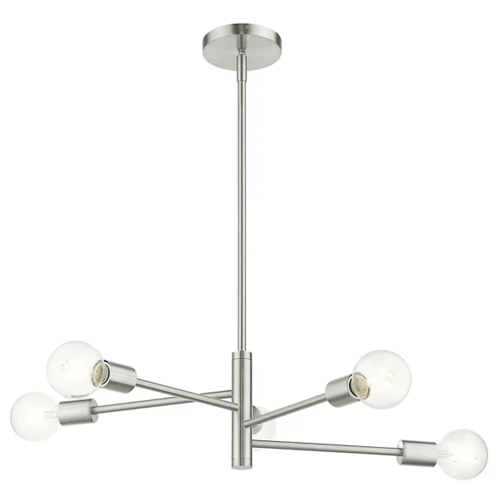 A simple piece that brings a clean and even glow to the rooms of your modern home. The Hampton Chandelier from Alder & Ore is made of smooth metal throughout and features a long and thin downrod that lowers it from the ceiling. The downrod thickens at the end and mounts a set of matching horizontal arms that lead to crisp bulbs. The light from the bulbs is bright and even, filling the room around it with ease.