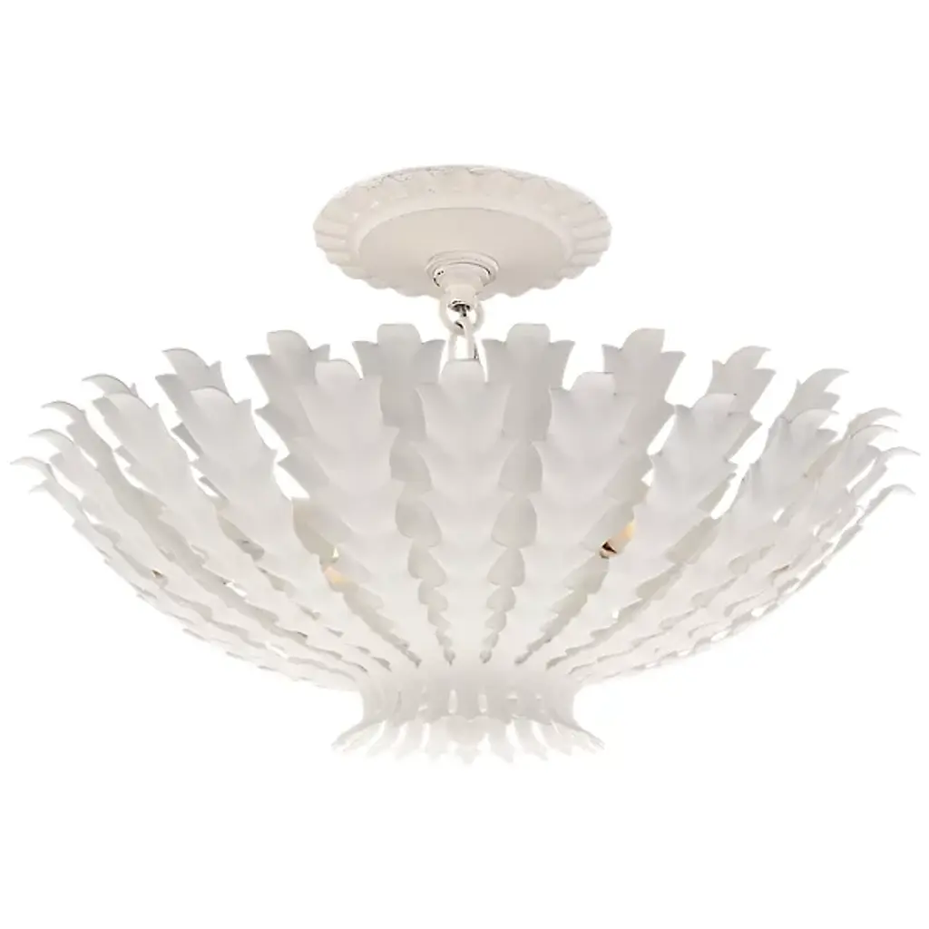 An ascending display of regal warmth. Classic decoration and modern sculpture find a beautiful meeting point in the Hampton Chandelier from Visual Comfort Signature, formerly known as Visual Comfort, It brings the energy with the lights off. Made from aluminum, organically shaped motifs layer front to back and descend to create a dome shade. The leaf-like accents of these motifs create an arresting pattern of texture that delights in silhouette. These motifs hide the lamp’s bright glare. Light scatters outward, glazes the ceiling, and funnels out the bottom for a dimensional glow.