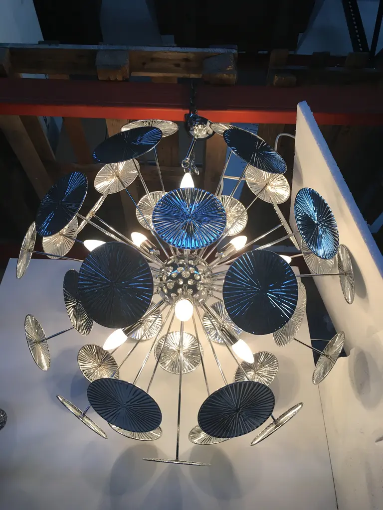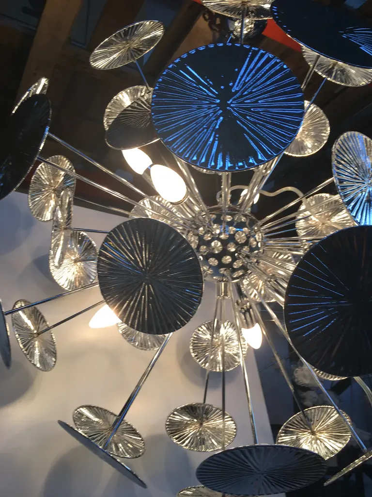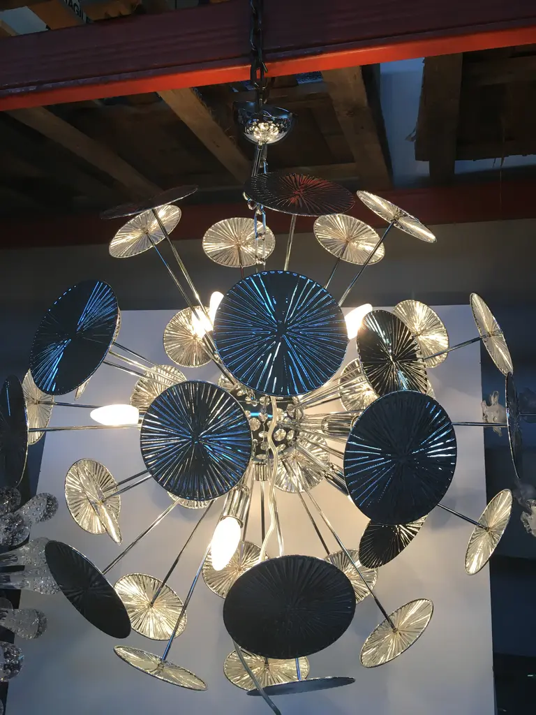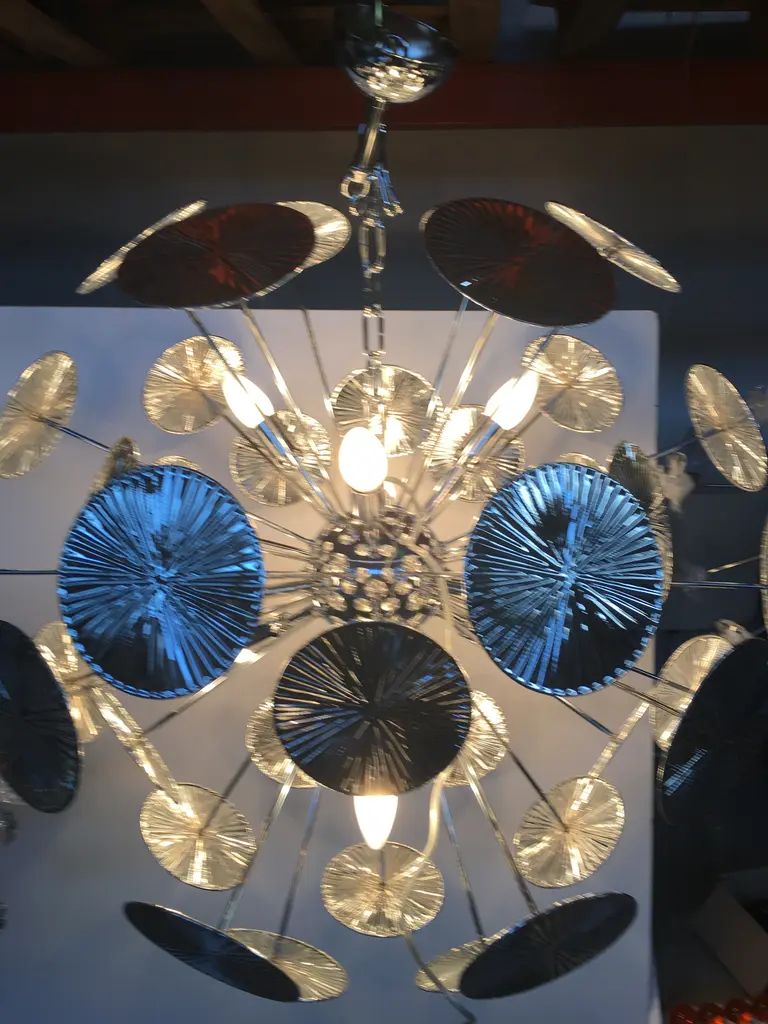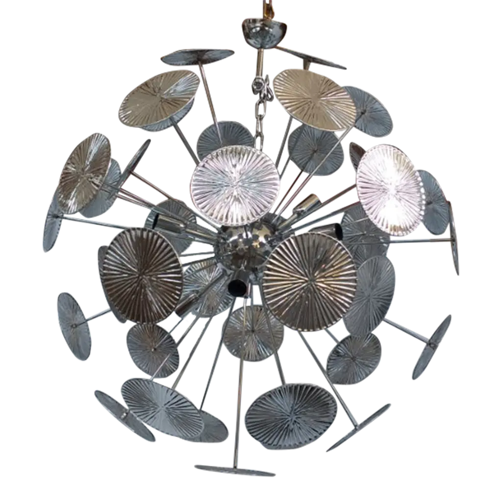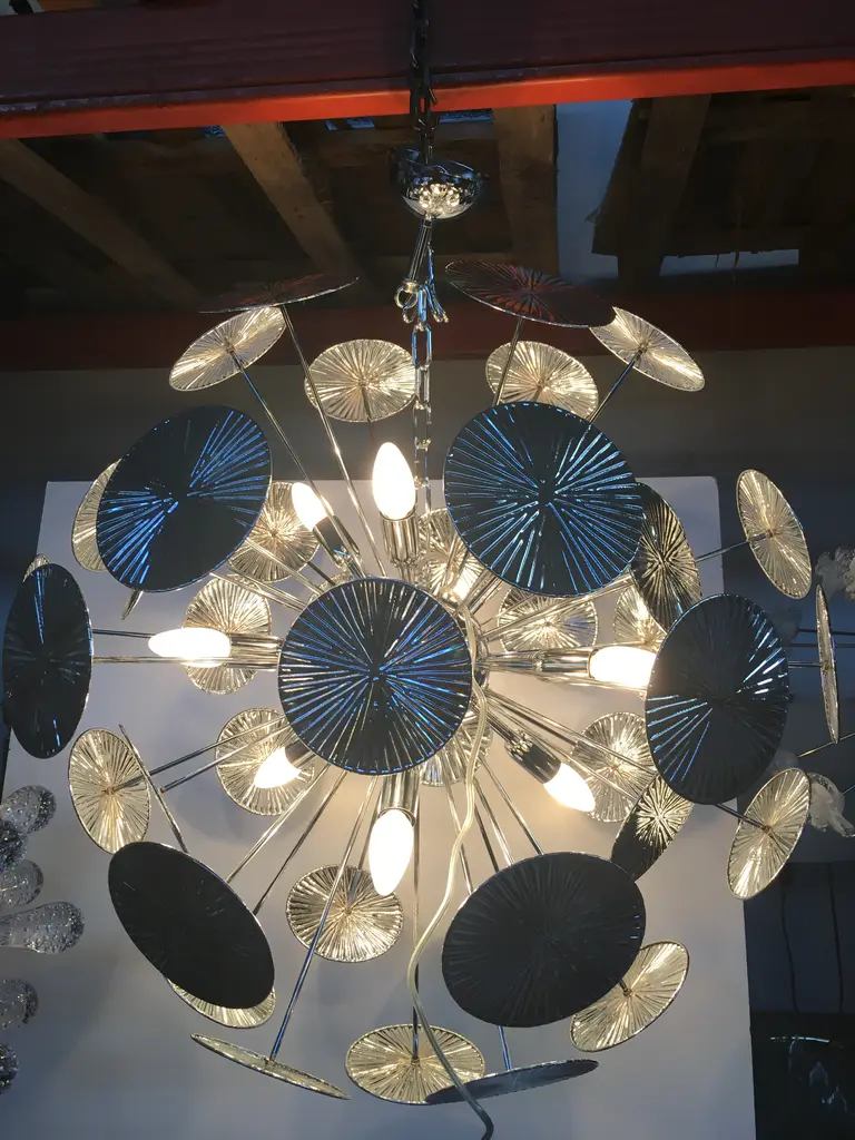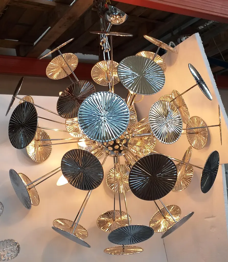 Handmade Hammered Sputnik Chandelier In Kromo Discs Italian Made