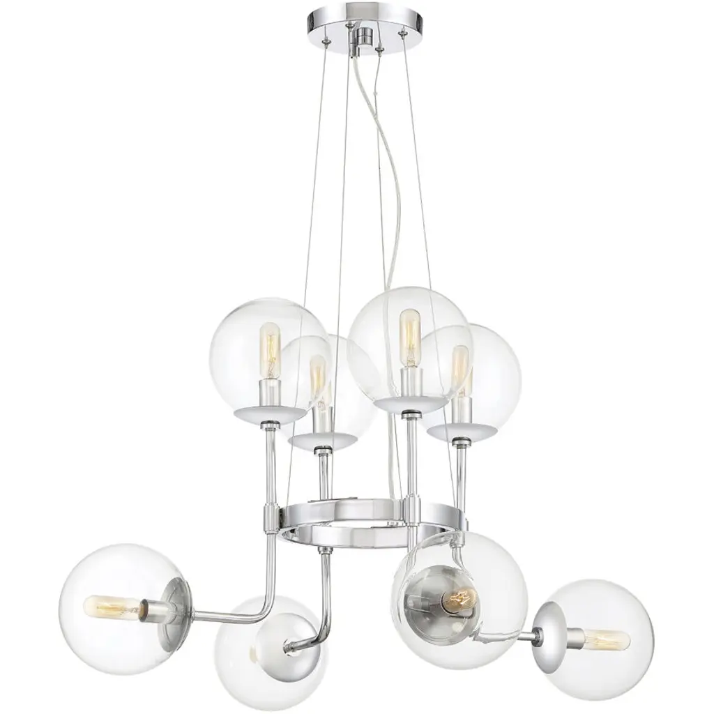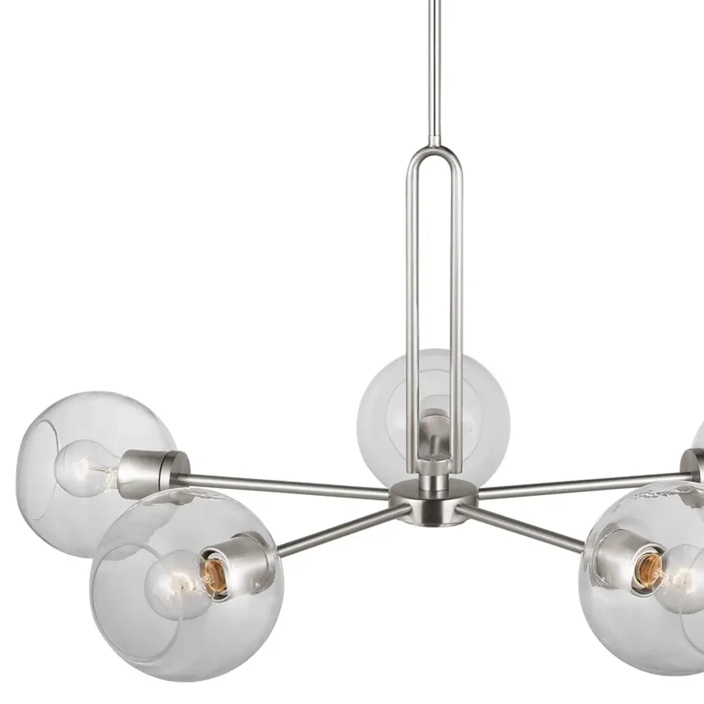 The Hanford nine light multi-tier chandelier in Brushed Nickel is sleek, contemporary, and uber minimalistic. Visual interest is created using a mix of rectangular and round frames, a subtle design detail. Although this collection is contemporary, it can be mixed in with a variety of collections with ease.