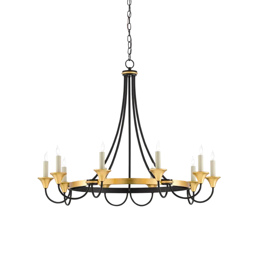 Bold and beautiful, this stunning 10-light chandelier elevates any dining room or living room with dramatic modern luxury. A designer favorite, its classic geometric metal curves and lines feature a finish that complements any style.