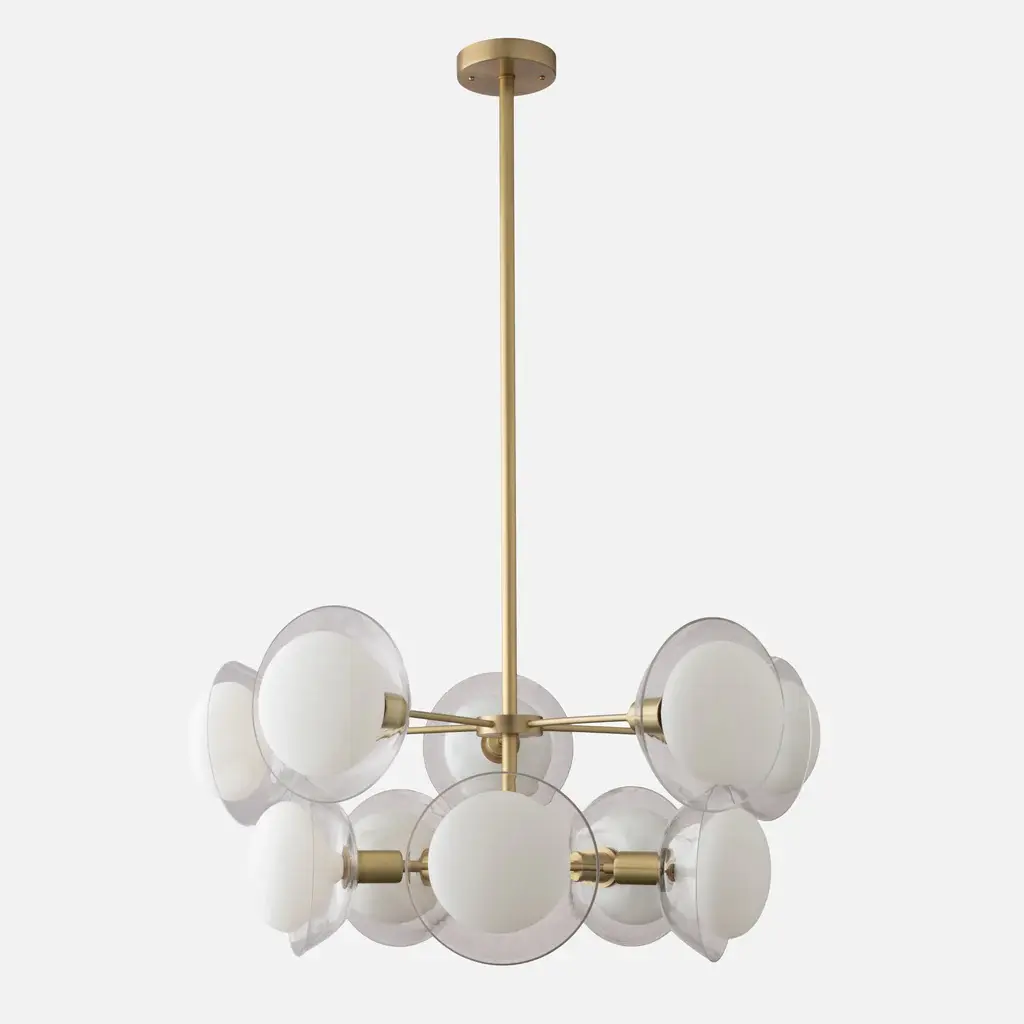 An iconic, sculptural fixture with a uniquely mid-century feel, the Hargrove 10 evokes a modern style while casting an elegant, soft glow. The perfect statement piece for any living room, kitchen, or dining area, this sleek light source features a bold cylindrical rotating hub, allowing for seamless transitions in form while set screws work to lock the light fixture in place. Available with a clear or bronze glass shade. A Schoolhouse Original. Sale items and promotional purchases with a discount over 50% are final sale