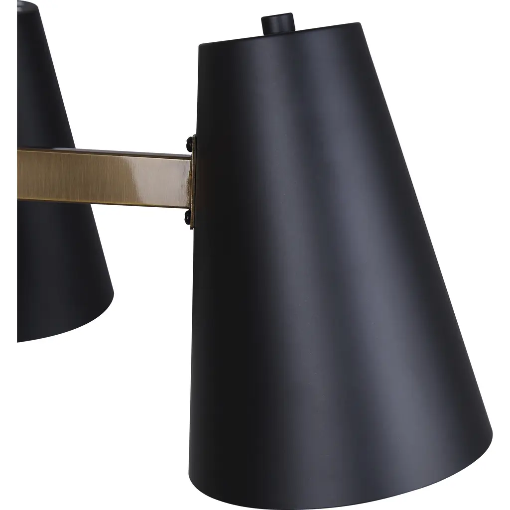 The HARKEN 5-Light Rod Chandelier is a striking blend of mid-century modern and contemporary design. Featuring a matte black finish with gold accents, this chandelier brings bold sophistication and timeless style to dining rooms and living spaces. Its clean, geometric lines and elegant simplicity make it a focal point that complements a range of interior aesthetics. Designed to house three 60W Type A bulbs (not included), it provides ample illumination while maintaining an inviting atmosphere. Adjustable from 15.5 inches to 57.5 inches in height, this versatile fixture adapts to your space, delivering both function and style with ease.