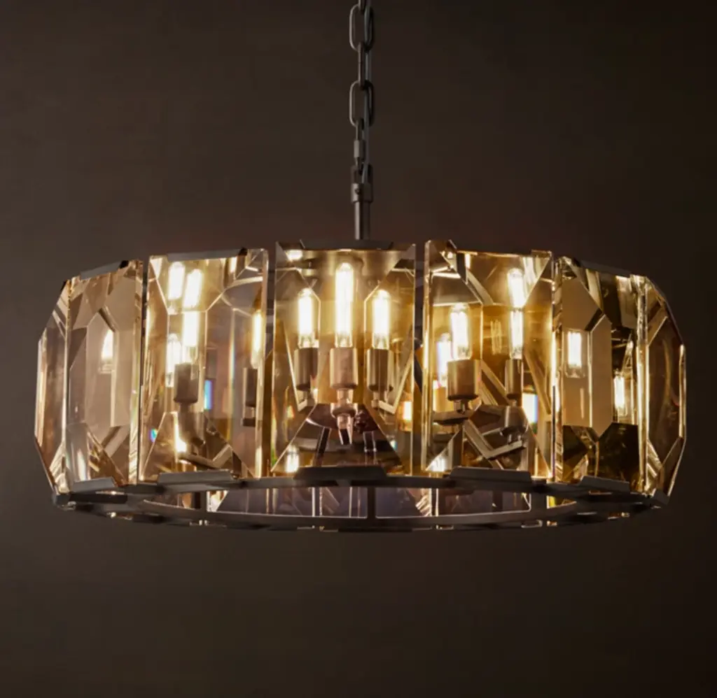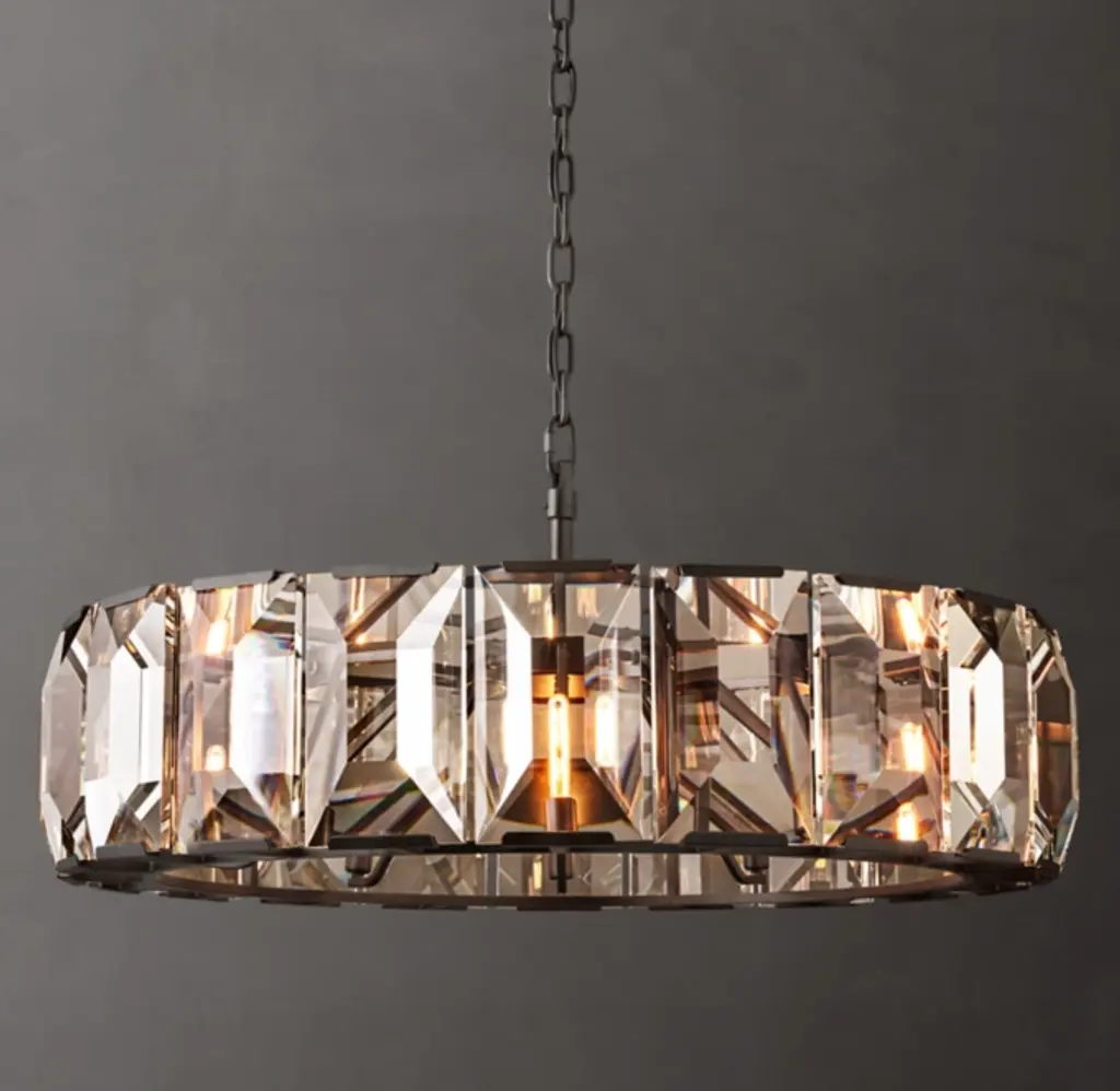 Inspired by a German chandelier from the 1970s, our fixture evokes the boldness and glamour of the era. Designed by Timothy Oulton, a band of faceted crystal glass prisms reflects and refracts the light, capturing the essence of emerald-cut diamonds. SHOP THE ENTIRE COLLECTION
