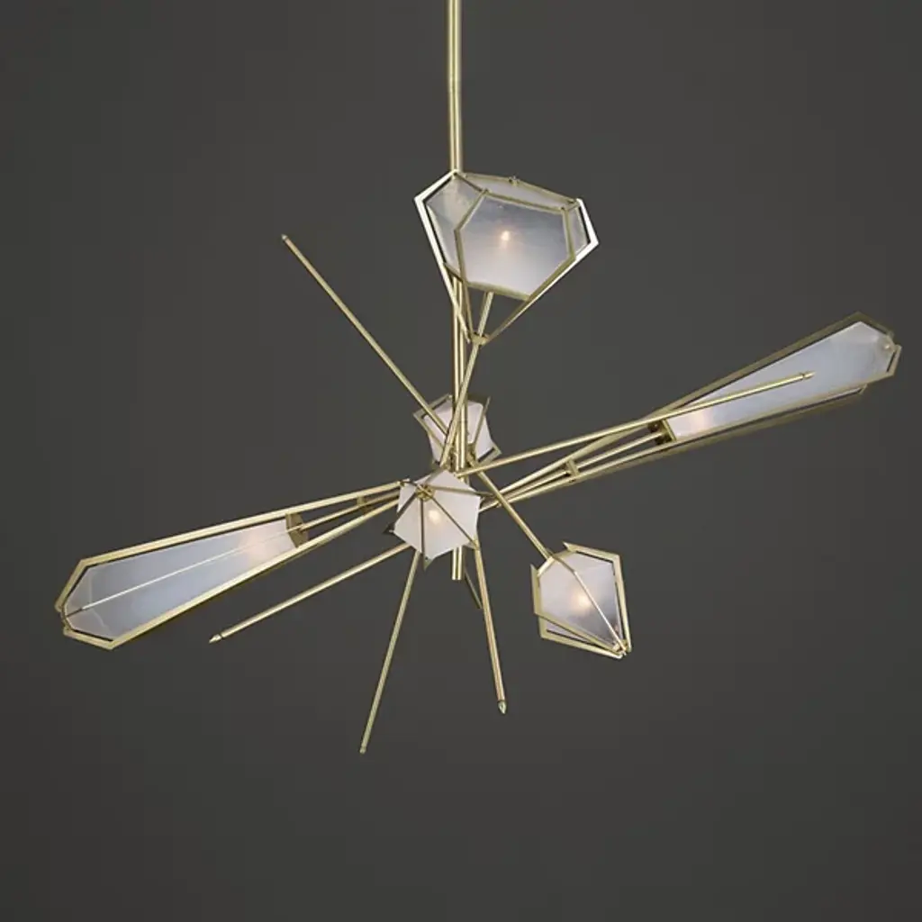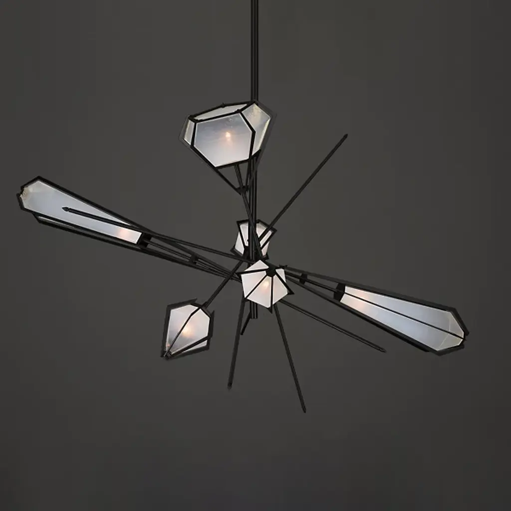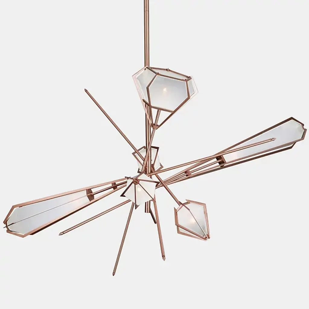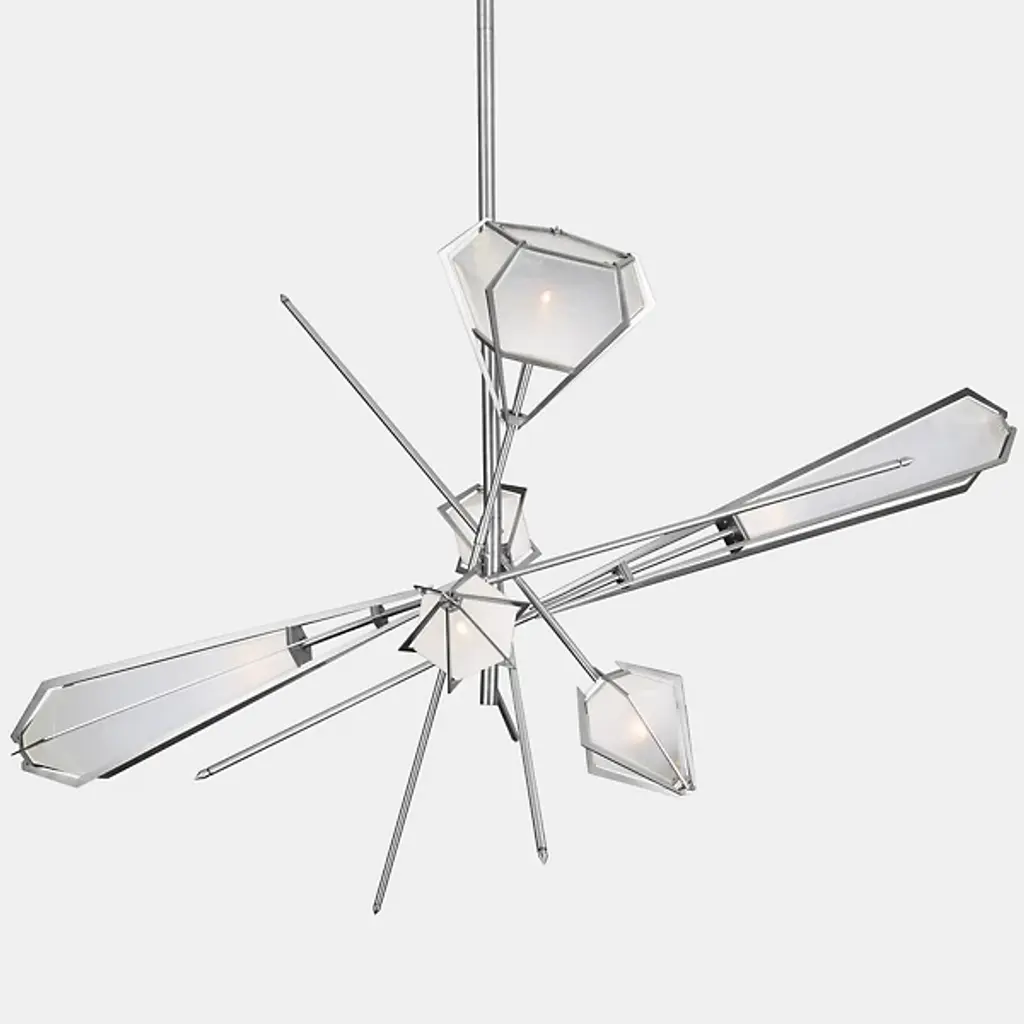 Modern and eletant. The Harlow Large Chandelier from Gabriel Scott features a striking look that will prove to be a veritable showstopper in whatever space it’s in. The metallic frame houses mold-blown glass, giving this product a look that was directly inspired the world of jewelry. The glass reflects and refracts light around the room to create a dazzling, prism-like display, making it a luxurious addition to any setting in which it’s installed.