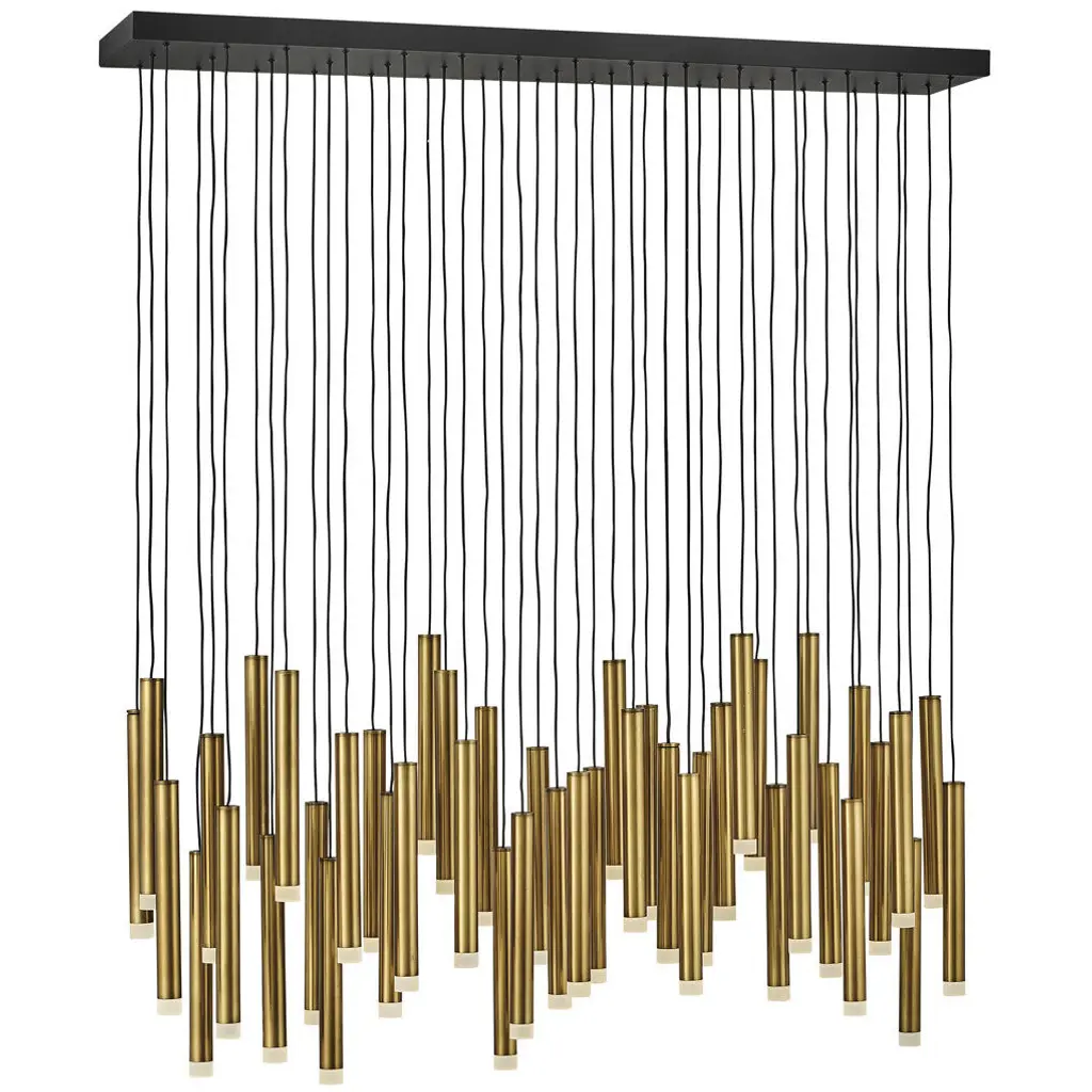 Harmony orchestrates the perfect blend of style and technology. Drawing inspiration from the enduring formation of wind chimes, the sleek Black or Heritage Brass tubes gleam with a glow that emanates from the lowest point of each column. Harmony is easily adjustable with many customizable configurations and is integrated with fully dimmable LEDs.