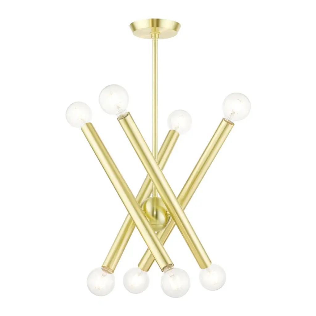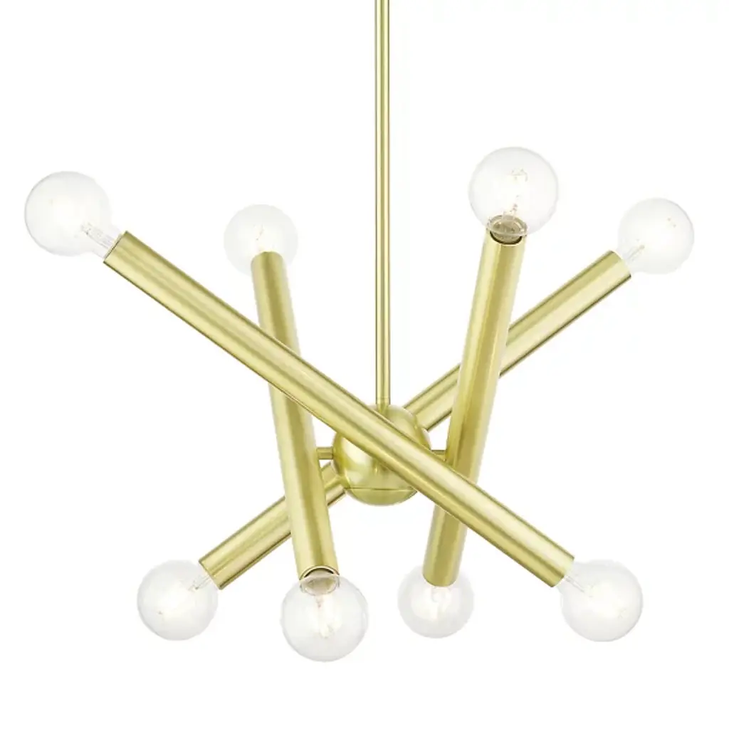 Sculptural lighting with a sense of play. The Hartford Chandelier from Alder & Ore gives everyone at the dinner table an equally eye-catching silhouette as a starburst design. This modern piece draws inspiration from the mid-century sputnik. It sets itself apart with a dynamic arrangement of metal arms. The dual bulb fitted arms help direct light towards every wall in the room. Globe style bulbs work best in this chandelier as they contrast in shape and produce a popping glow.