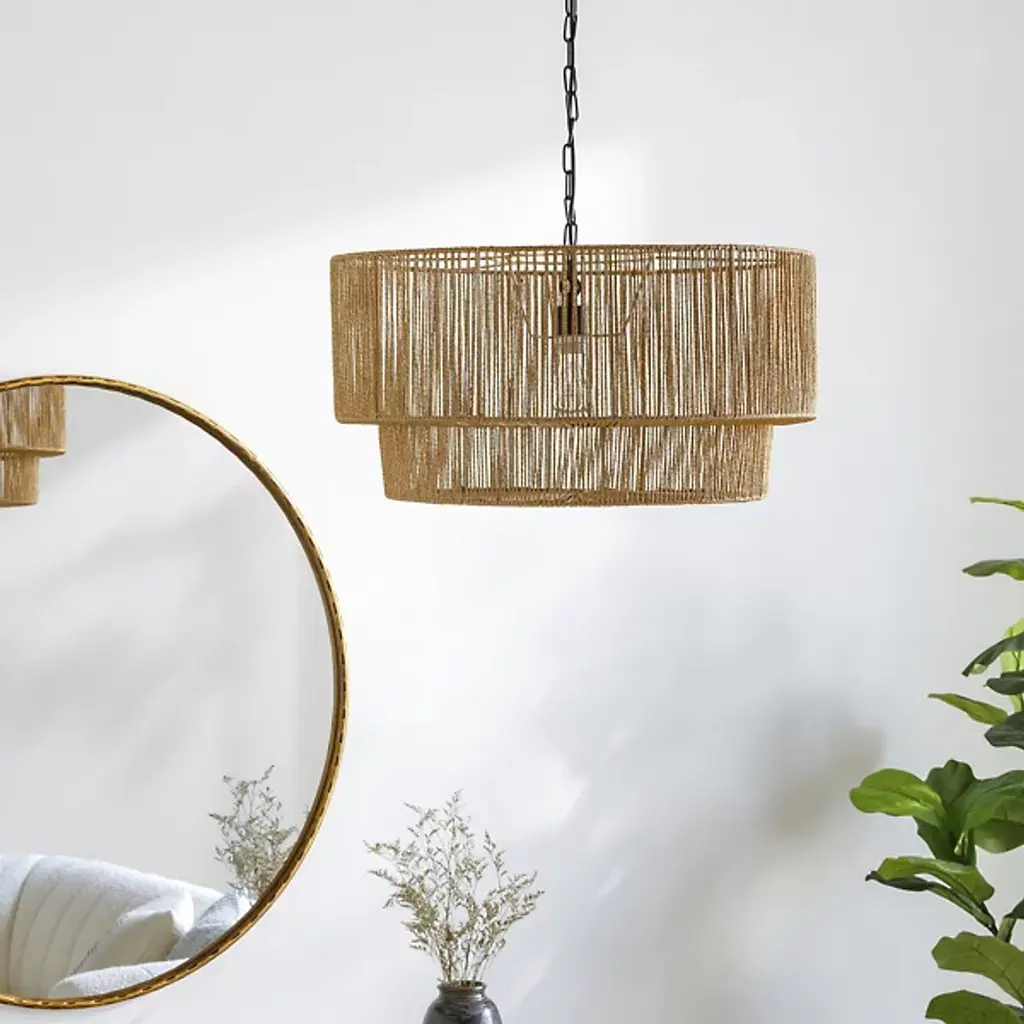 The Hascombe Chandelier from Surya illuminates your living space with unconventional material selection. Handcrafted paper forms the foundation of this overhead fixture, diffusing light through natural fibers to create a warm, atmospheric effect. The design merges unrefined textures with purposeful structure, resulting in a conversation-starting centerpiece. Its simple on/off functionality keeps operation uncomplicated, allowing the distinctive material qualities to remain front and center. This lighting solution adds depth and interest to spaces where standard fixtures would feel predictable, bringing handmade character to residential or commercial environments where thoughtful lighting choices matter.