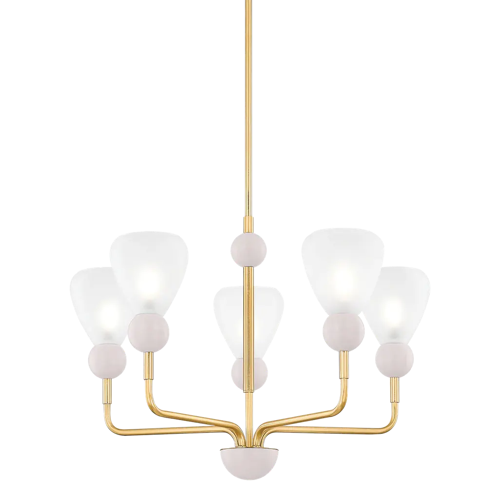 Art nouveau meets midcentury Italian, the Havana wall sconce and chandelier indulge in of-the-moment, whimsical design. Available in aged brass, old bronze, and polished nickel, Havana is engaged in shape play and features a wavy arm and glossy opal globe shade. Available in small and large chandelier.