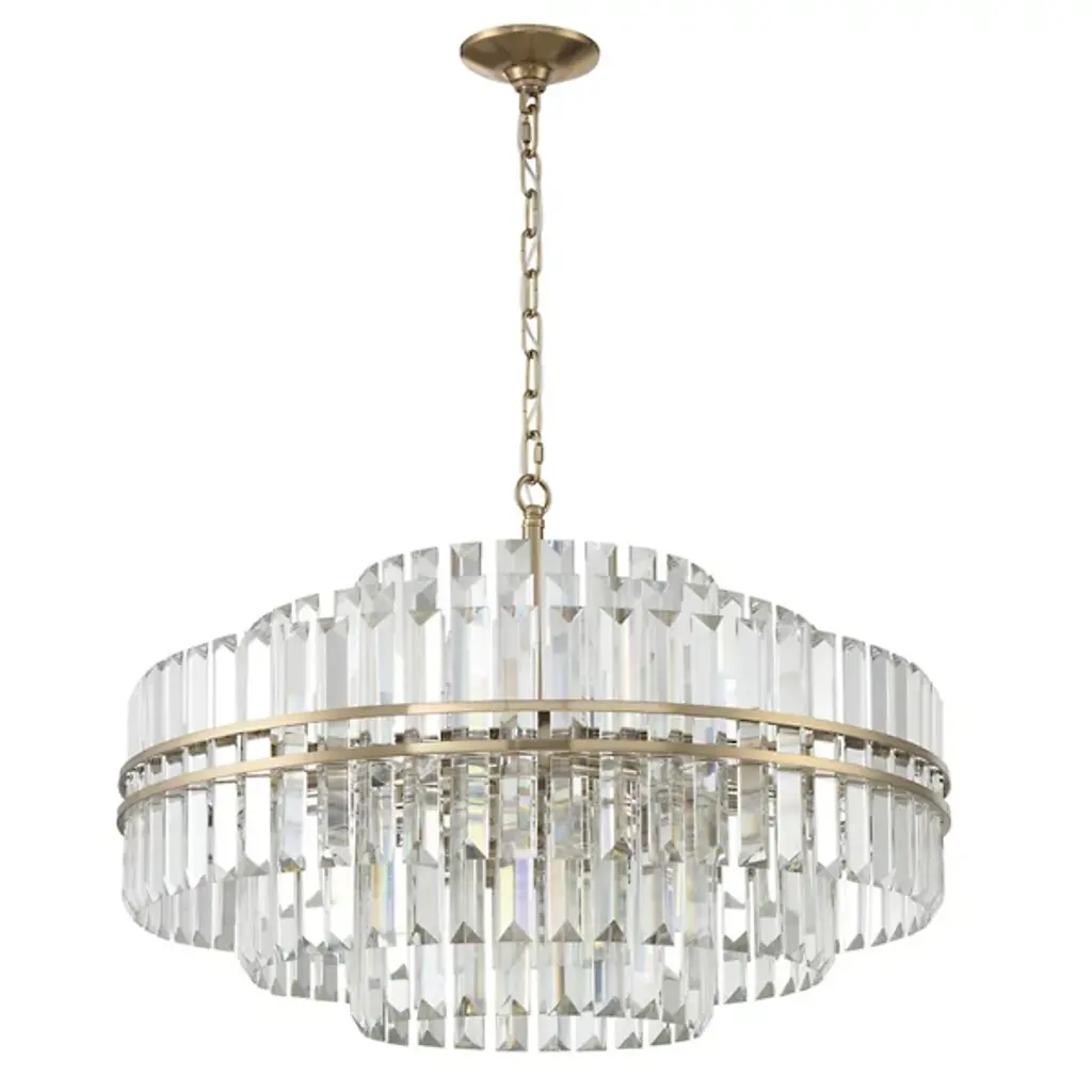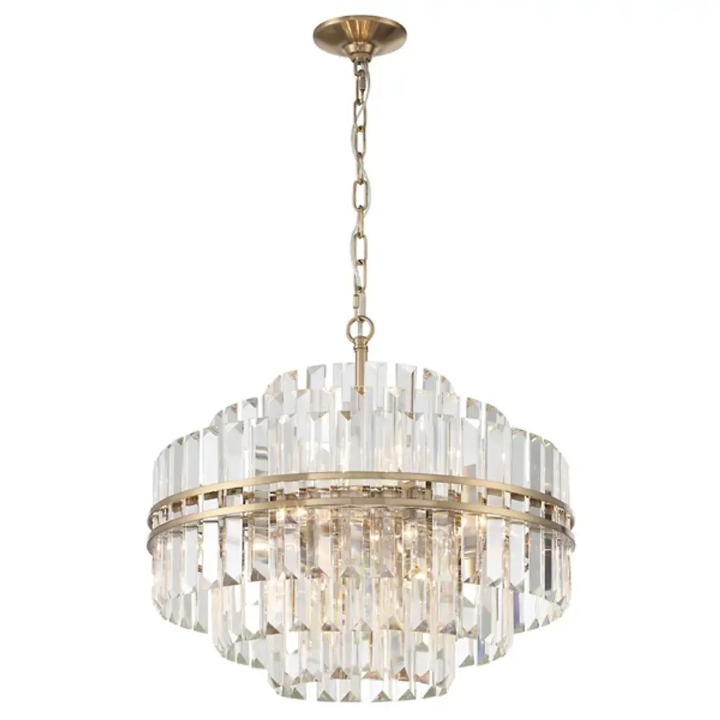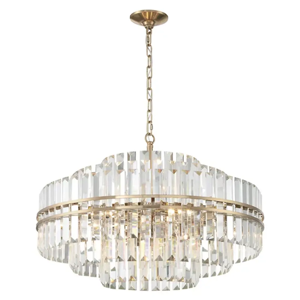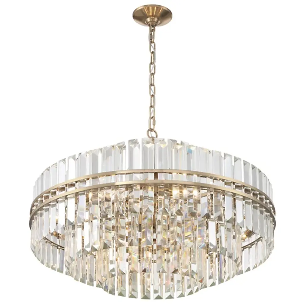 Create a lasting impression with the Hayes Chandelier by Crystorama. Doubling as a piece of art, the Hayes is comprised of tiered multi-faceted crystal secured by a polished nickel steel frame. A smooth polished finish modernizes its surroundings while creating a focal point among locales of choice. Display the Hayes as a solo piece or up the ante with multiples.