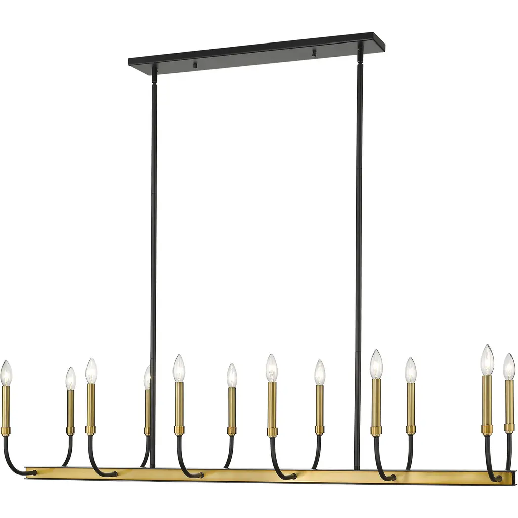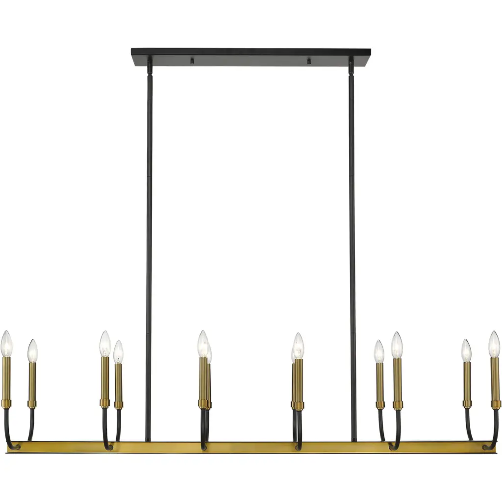Haylie 12 Light 56 Inch Matte Black And Olde Brass Linear Chandelier Ceiling Light