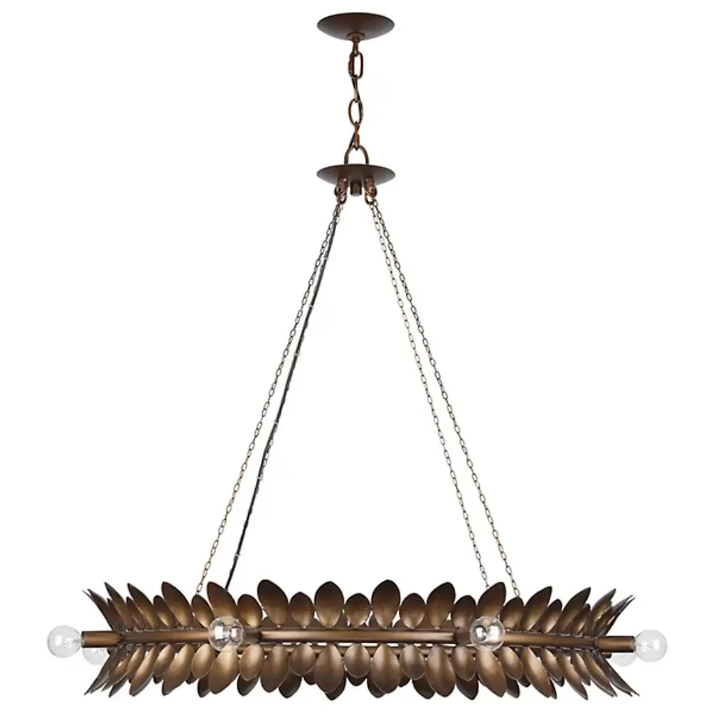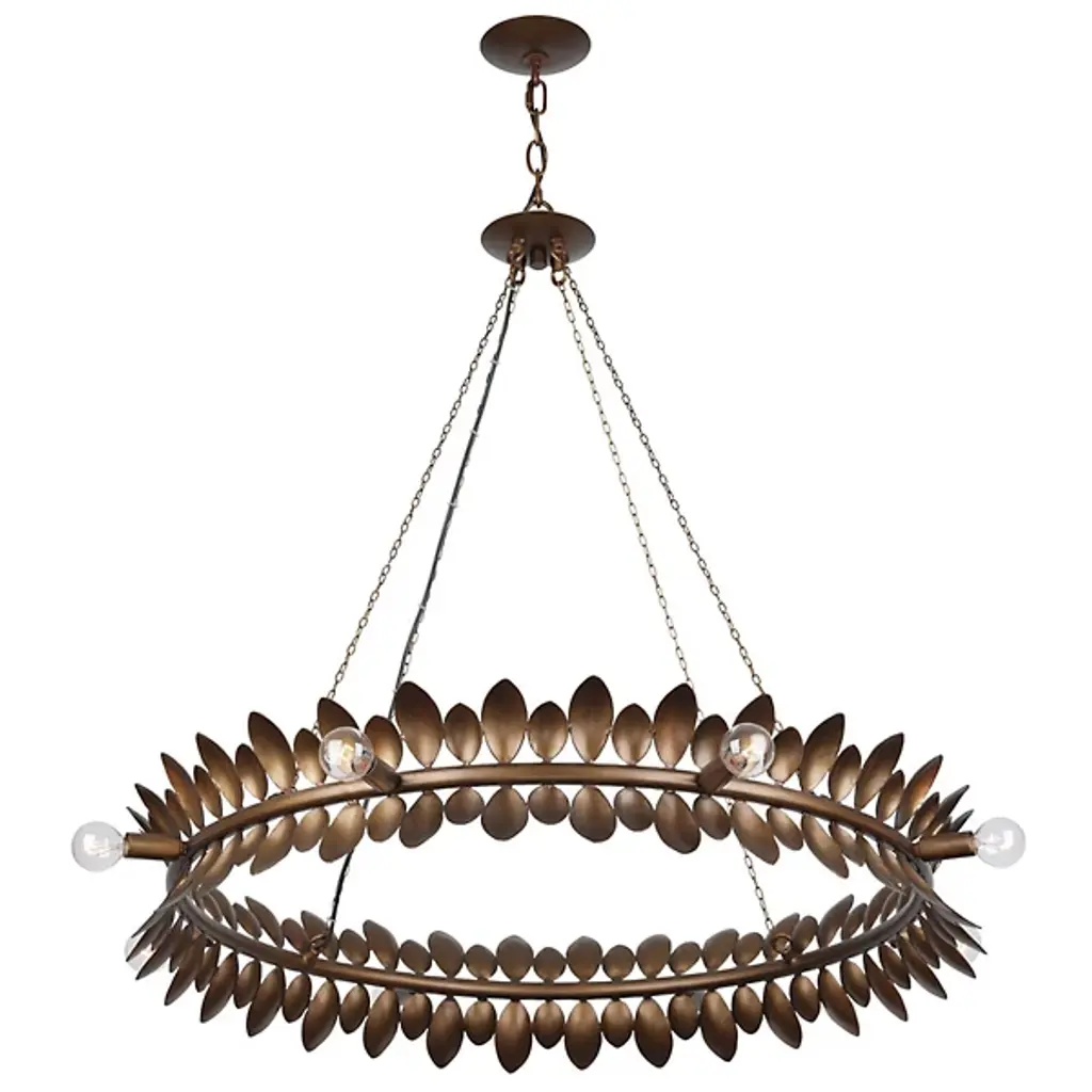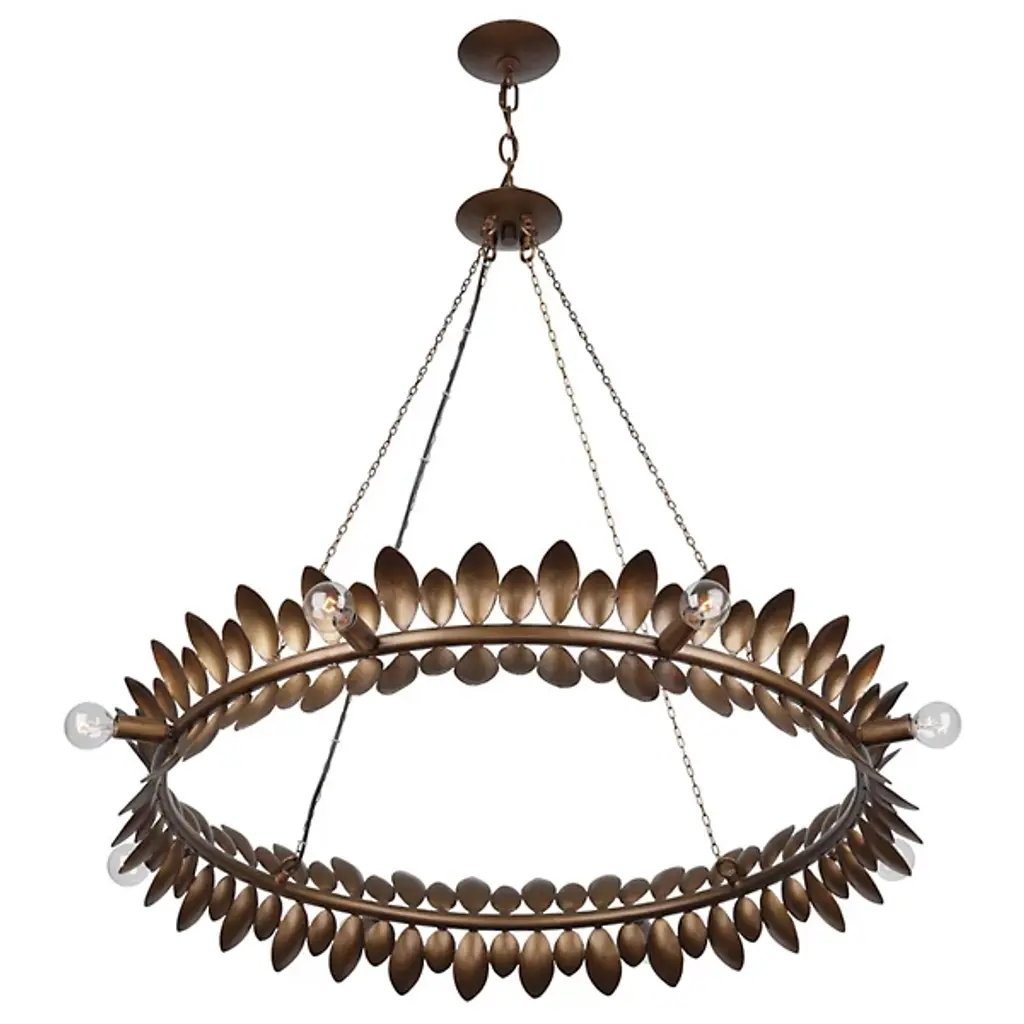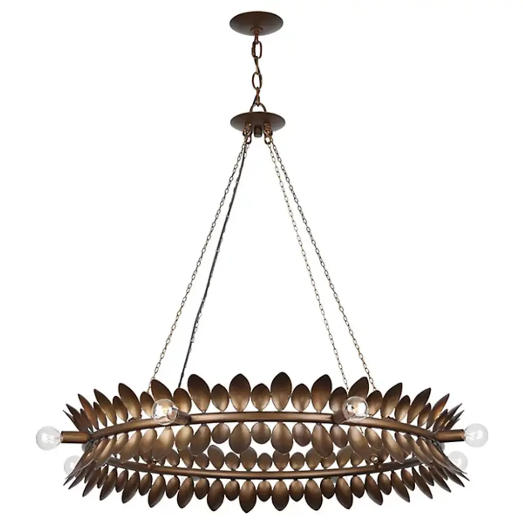 The Heiress Chandelier from Savoy House beautifully embodies transitional and nature-inspired styles with a playful, open construction. Designed by award-winning interior designer Breegan Jane, this chandelier features a simple yet elegant structure adorned with dramatically curving metal leaves. The hand-applied Bronze finish adds a welcome layer of patinated sophistication, reflecting Jane’s inspiration from the natural beauty and charm of the Mediterranean region, matching elegance and organic design.