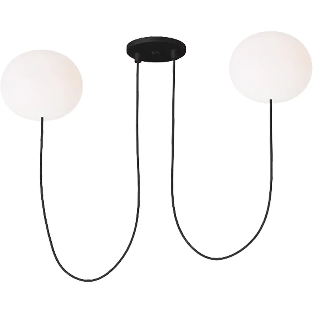 The Helium Array LED Chandelier from Visual Comfort Modern balances concept and clarity in an ultra-modern silhouette. Designed by Peter Bristol, the chandelier is damp-listed and made with steel and glass, bringing a lighthearted touch to contemporary interiors with its airy, sculptural form. A low-profile canopy and hidden hardware let the glowing etched glass globes take center stage, appearing to hover just below the ceiling, suspended by thoughtfully draped cables.