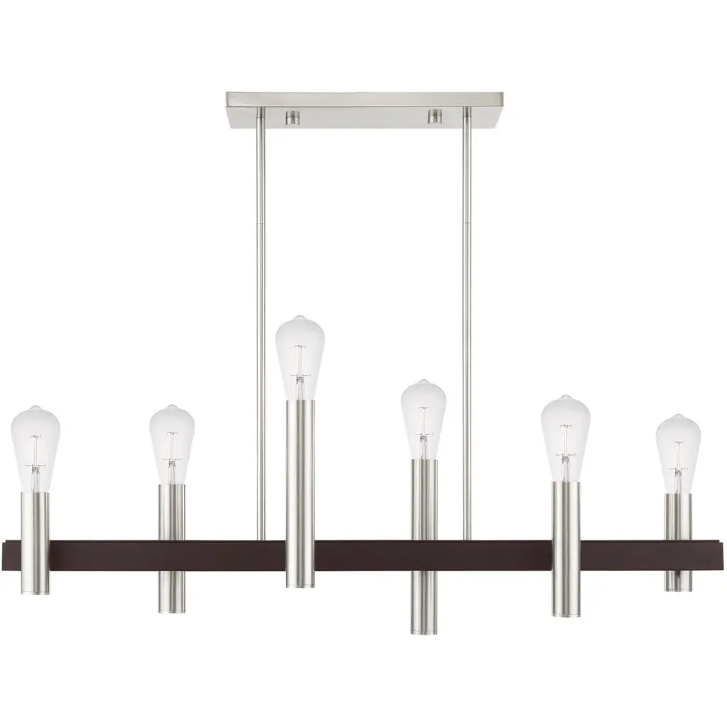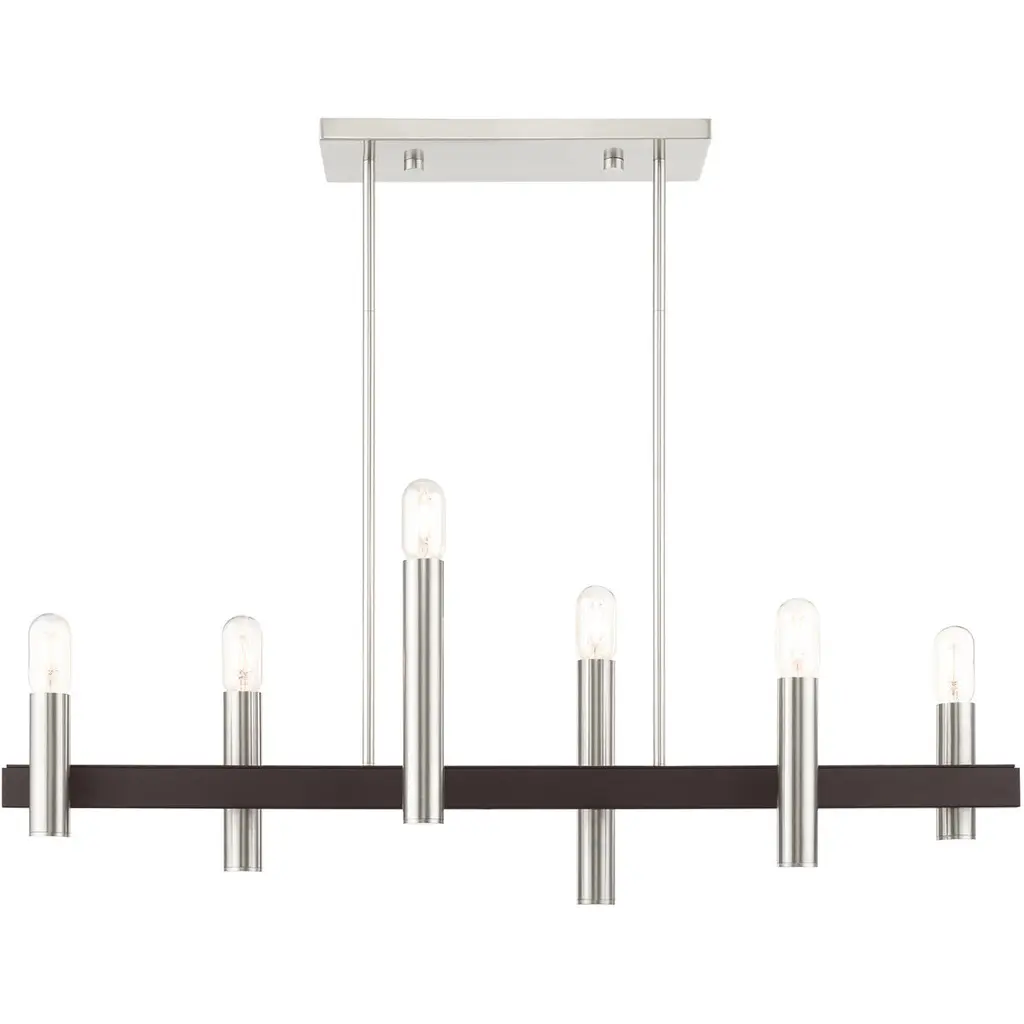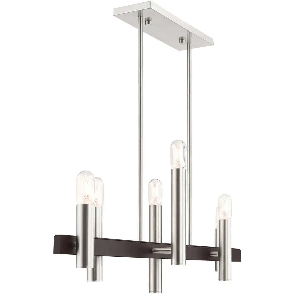 6 Lt Brushed Nickel & Bronze Linear Chandelier