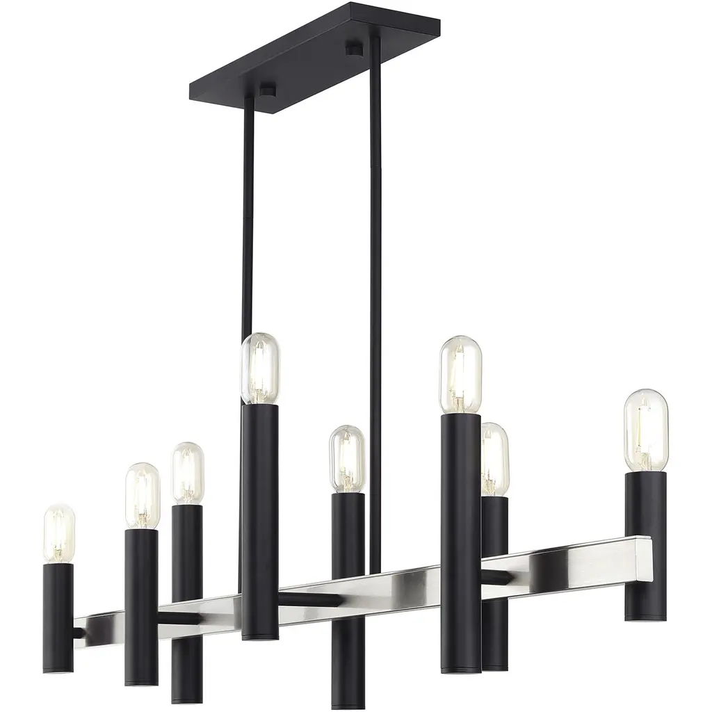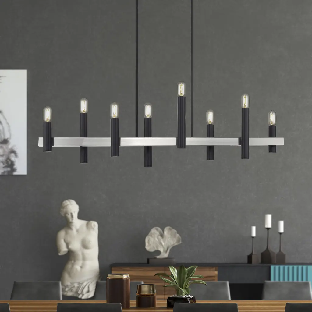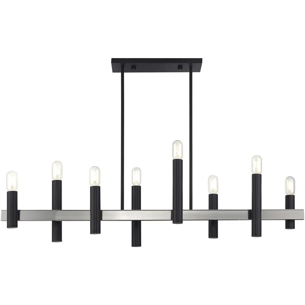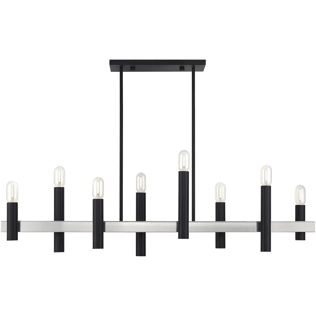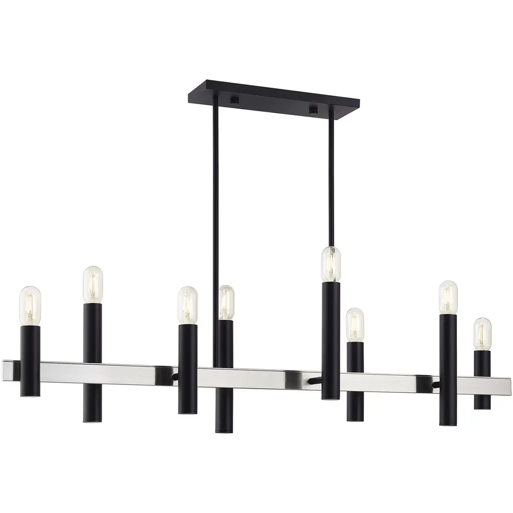 Helsinki 8 Light 48 Inch Black With Brushed Nickel Accents Linear Chandelier Ceiling Light