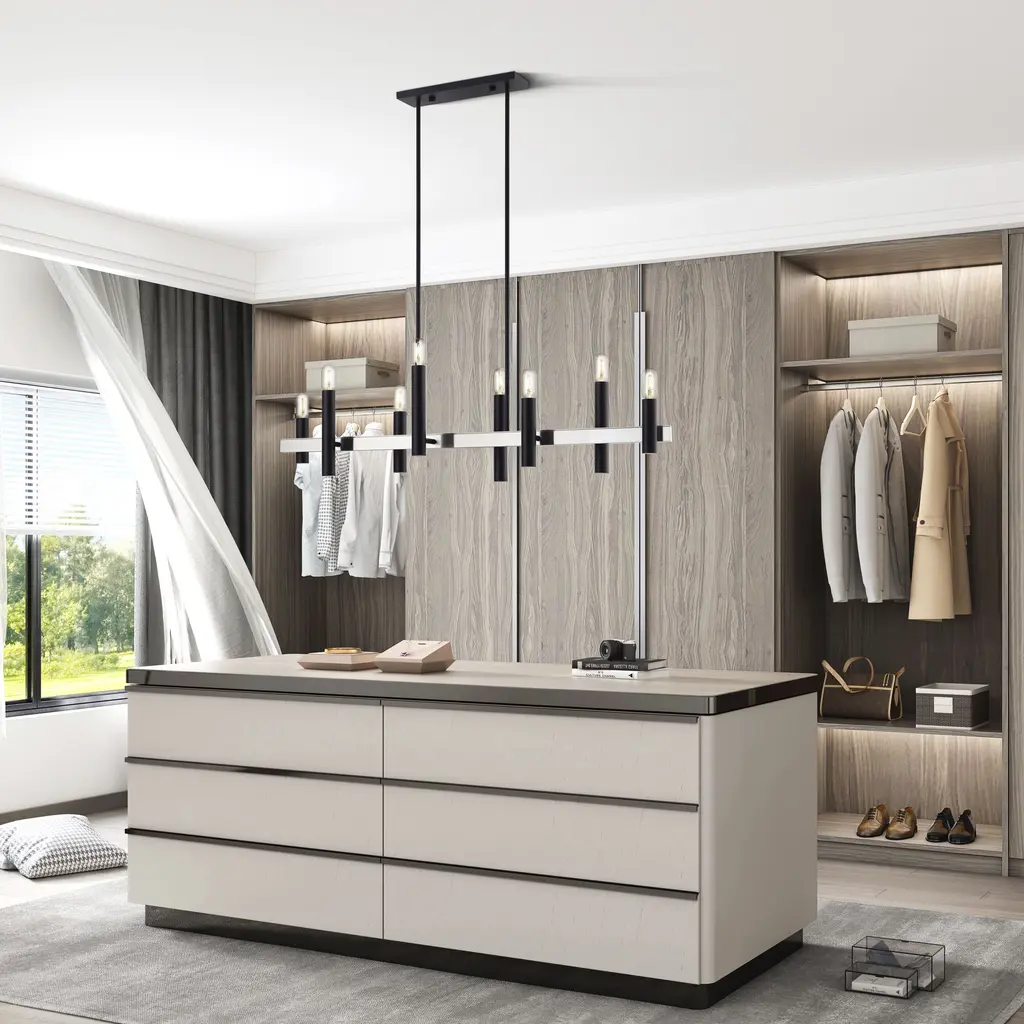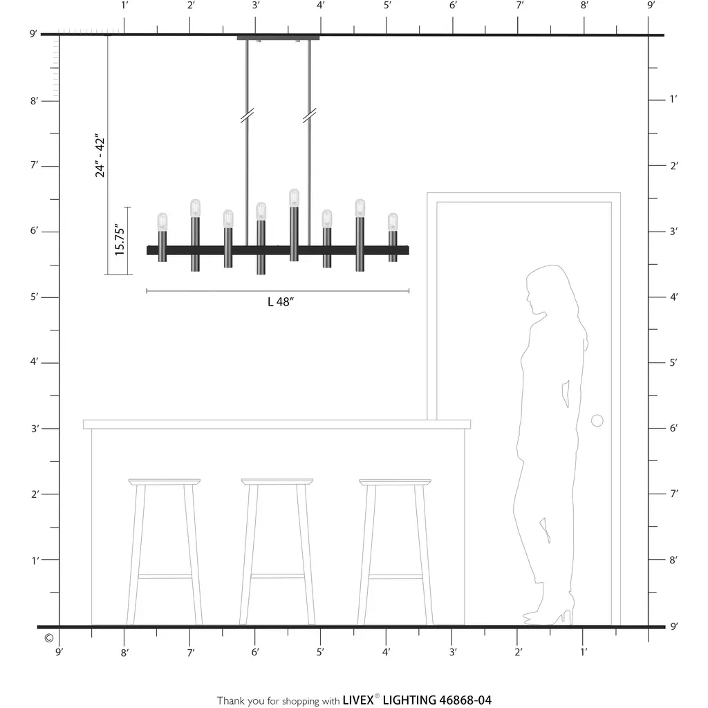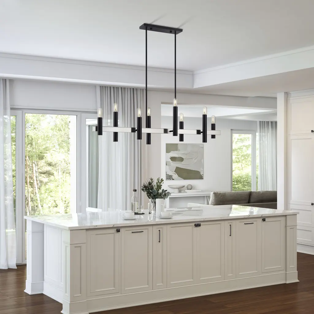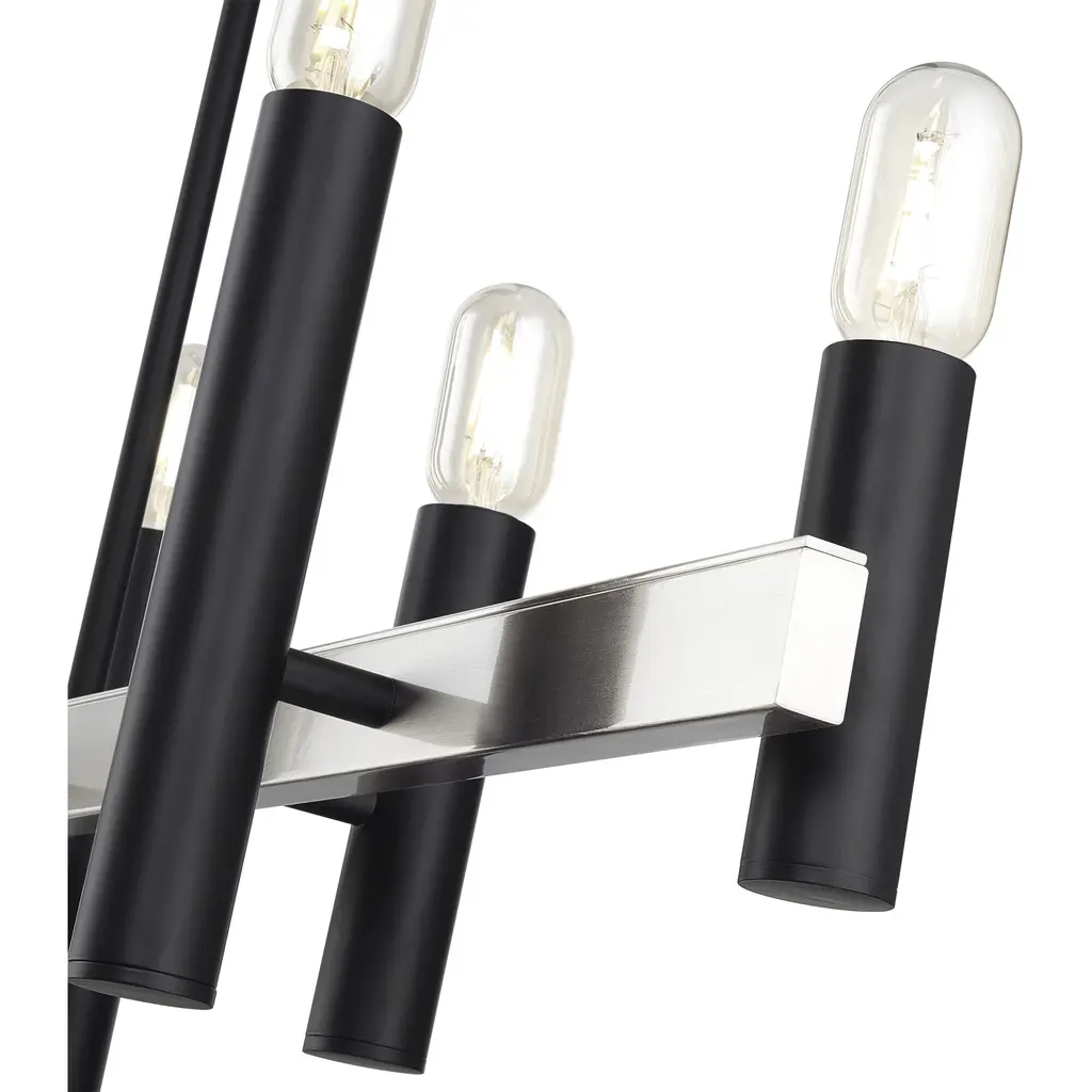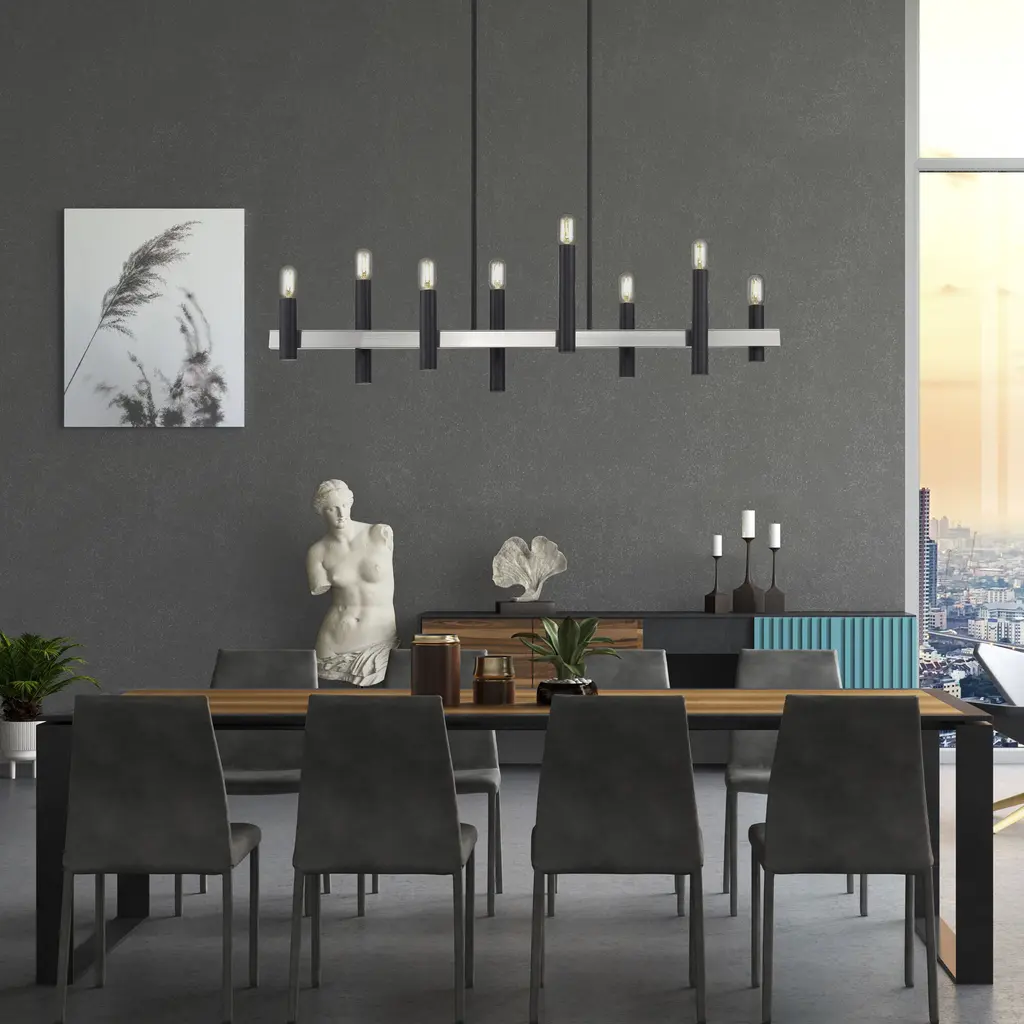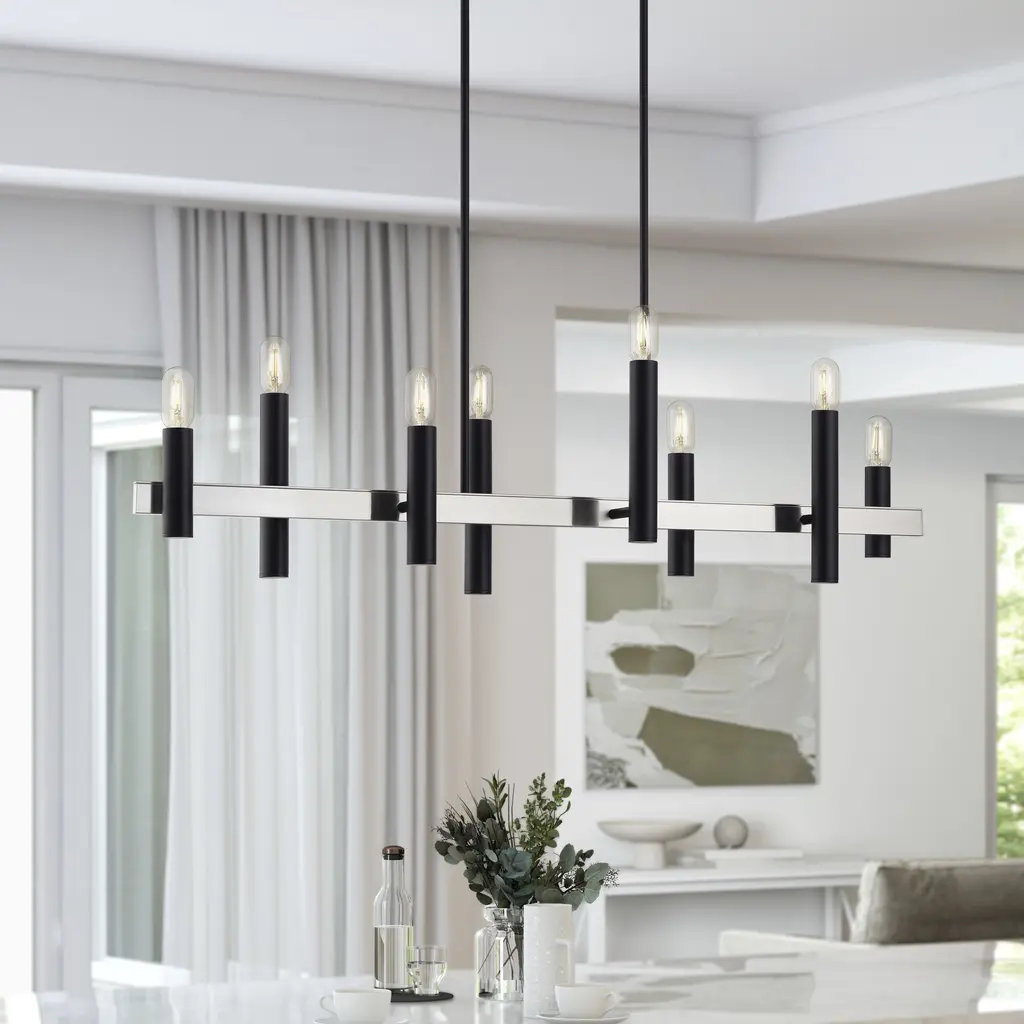 Helsinki 8 Light 48 Inch Black With Brushed Nickel Accents Linear Chandelier Ceiling Light
