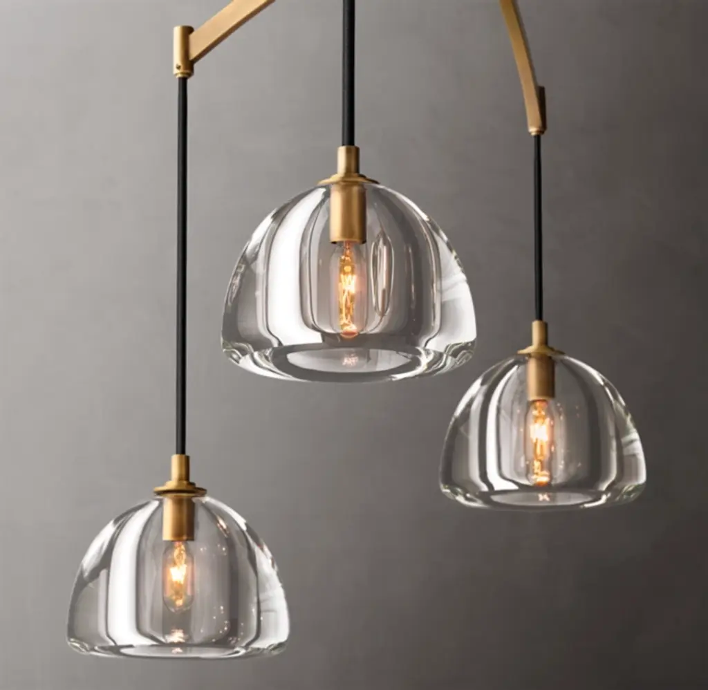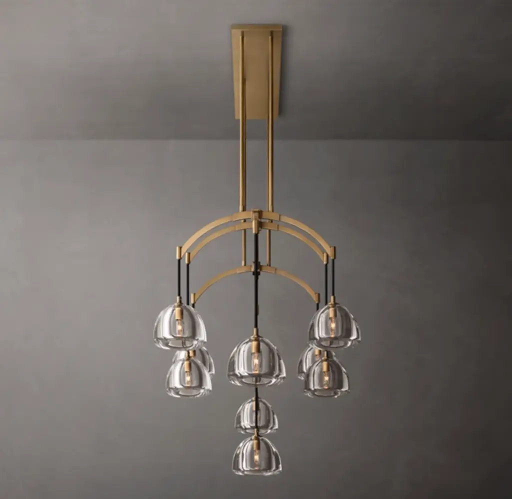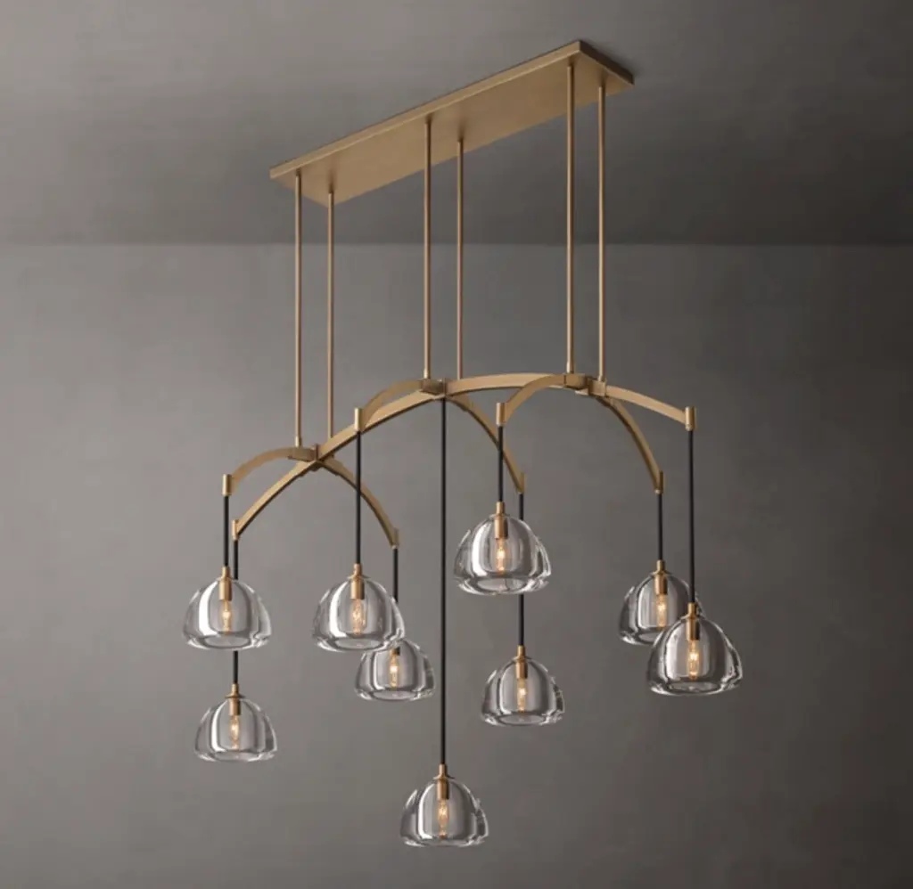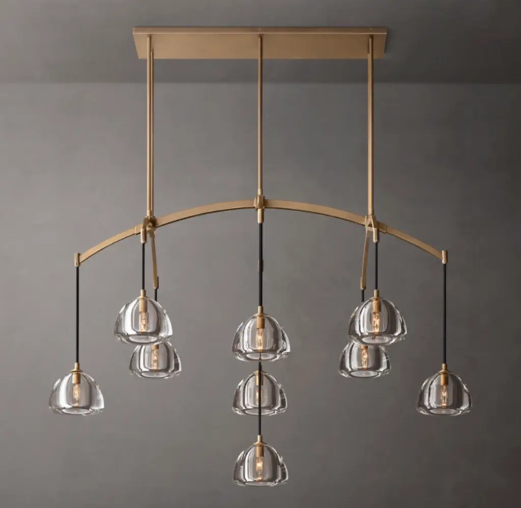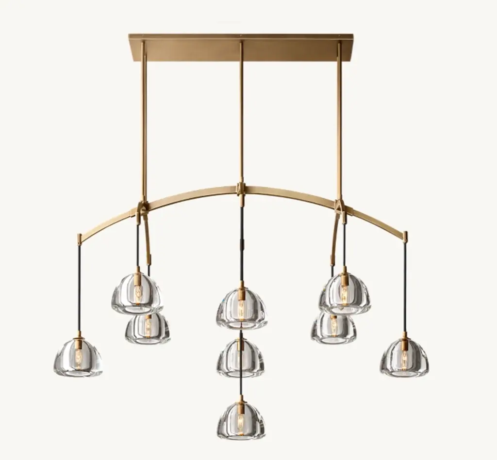 Created by master glass designer Alison Berger, Hemisphere's crystal is lathe-carved and hand polished over several days to achieve its stunning luster. Suspended from a brass frame, the heavy domes play counterpoint to the refined arc.SHOP THE ENTIRE COLLECTION