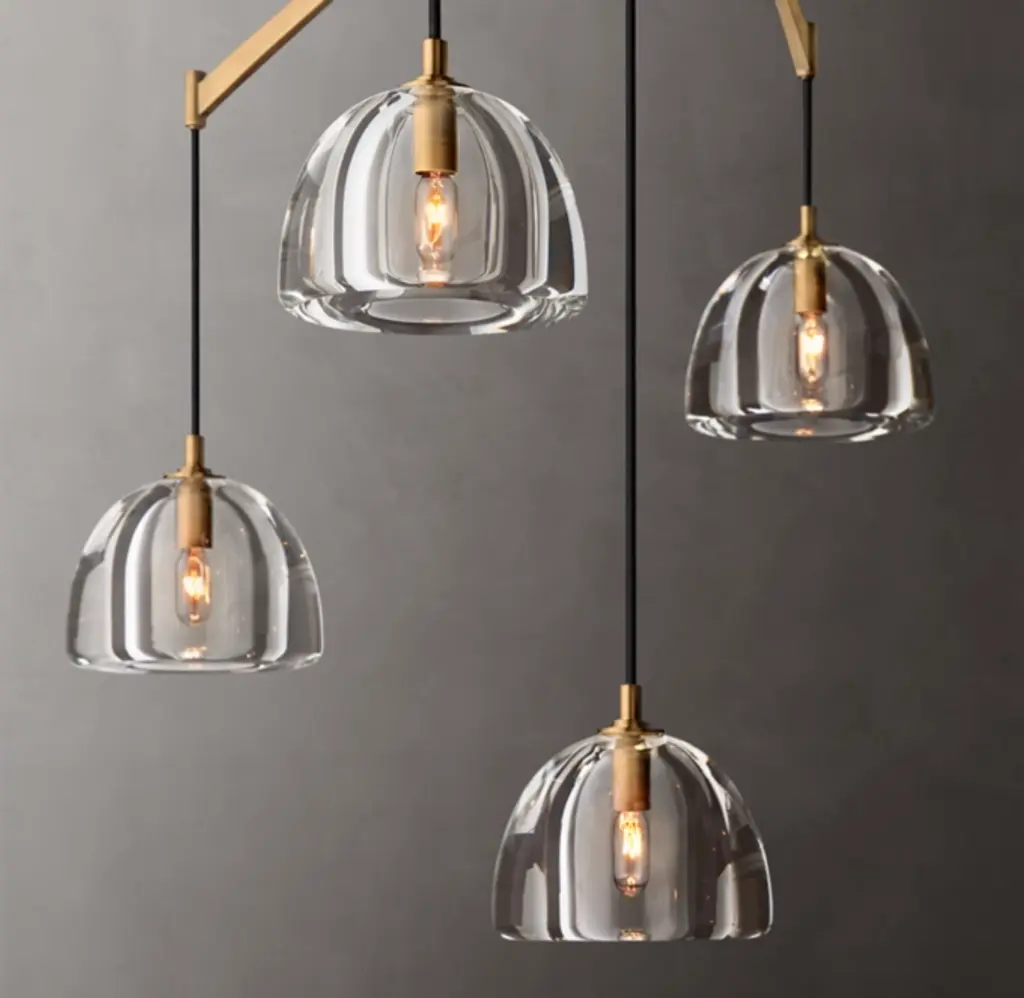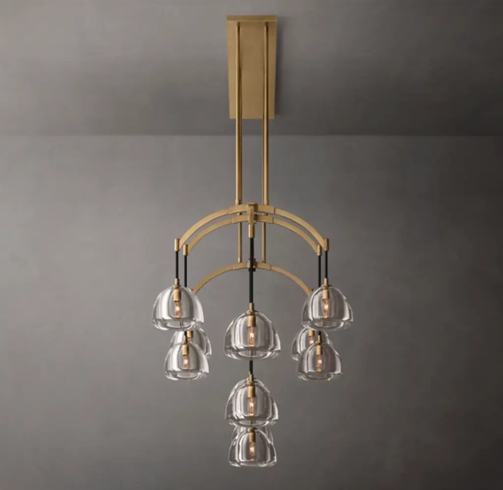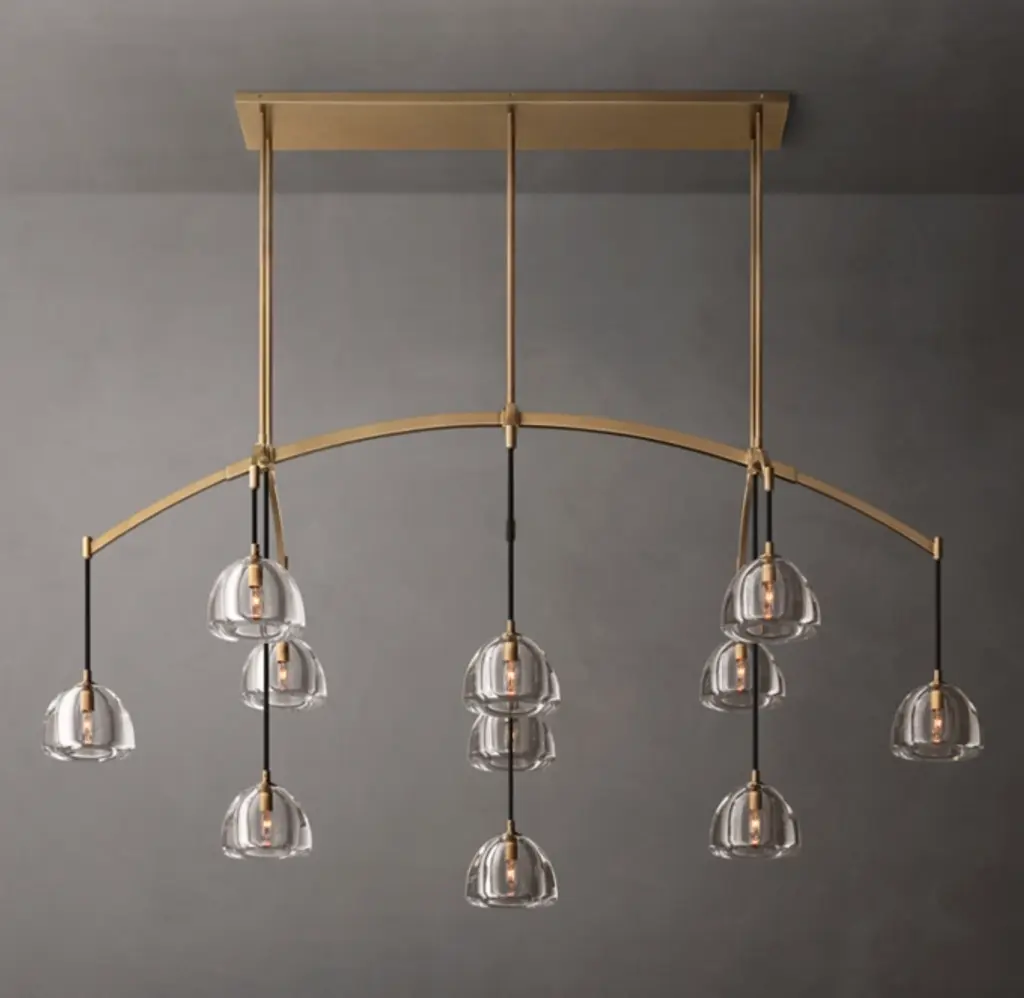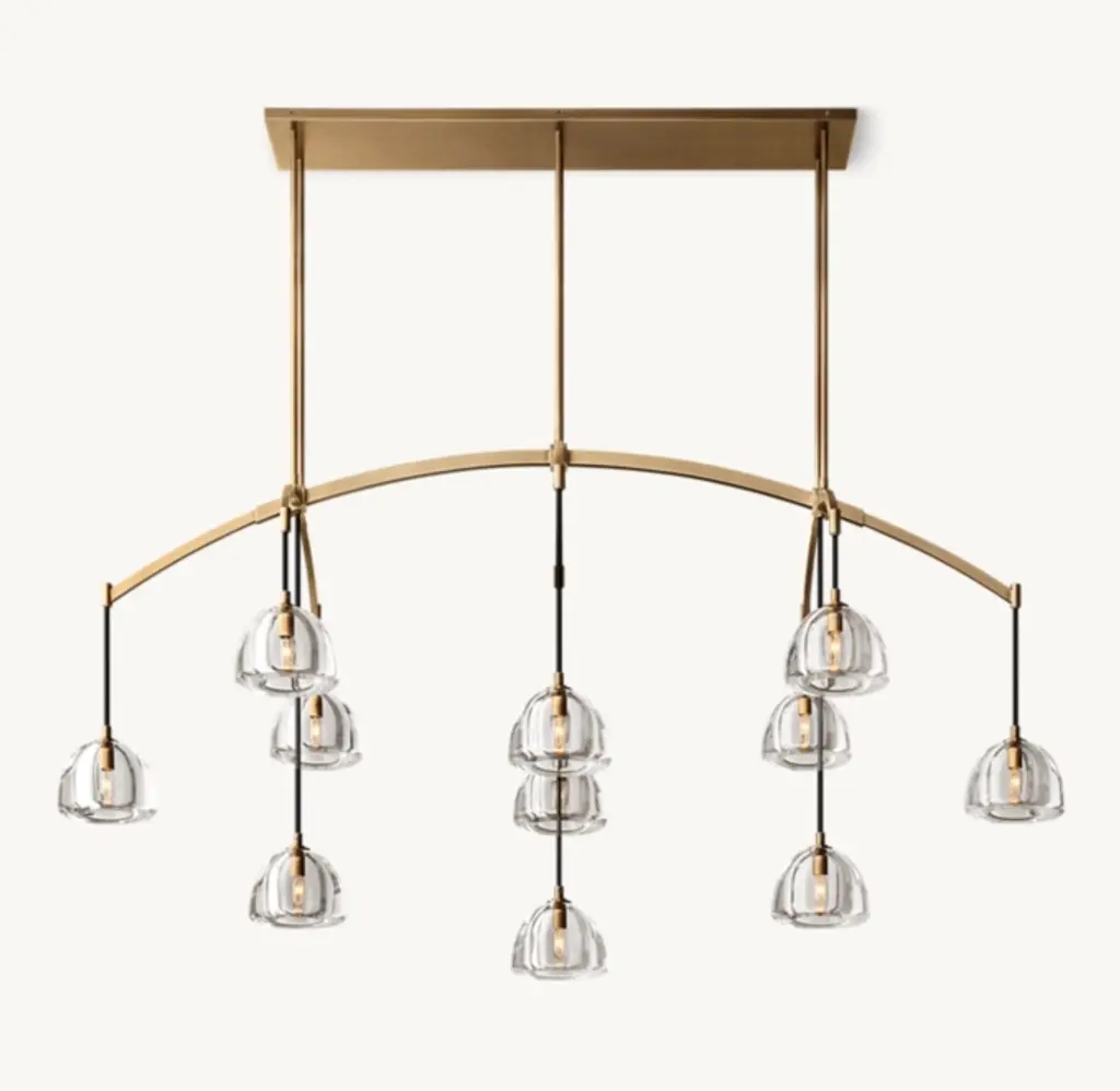 Created by master glass designer Alison Berger, Hemisphere's crystal is lathe-carved and hand polished over several days to achieve its stunning luster. Suspended from a brass frame, the heavy domes play counterpoint to the refined arc.SHOP THE ENTIRE COLLECTION