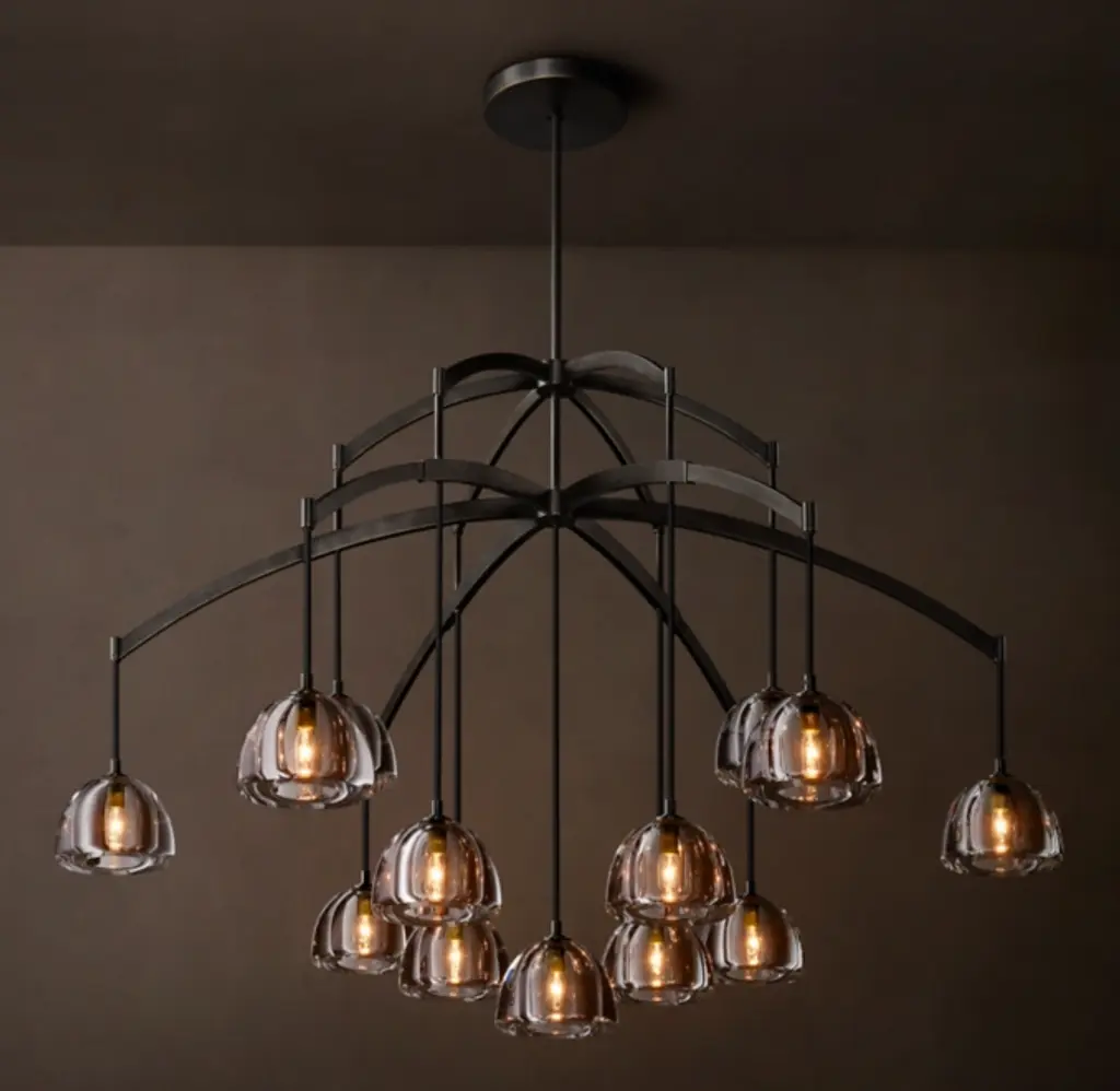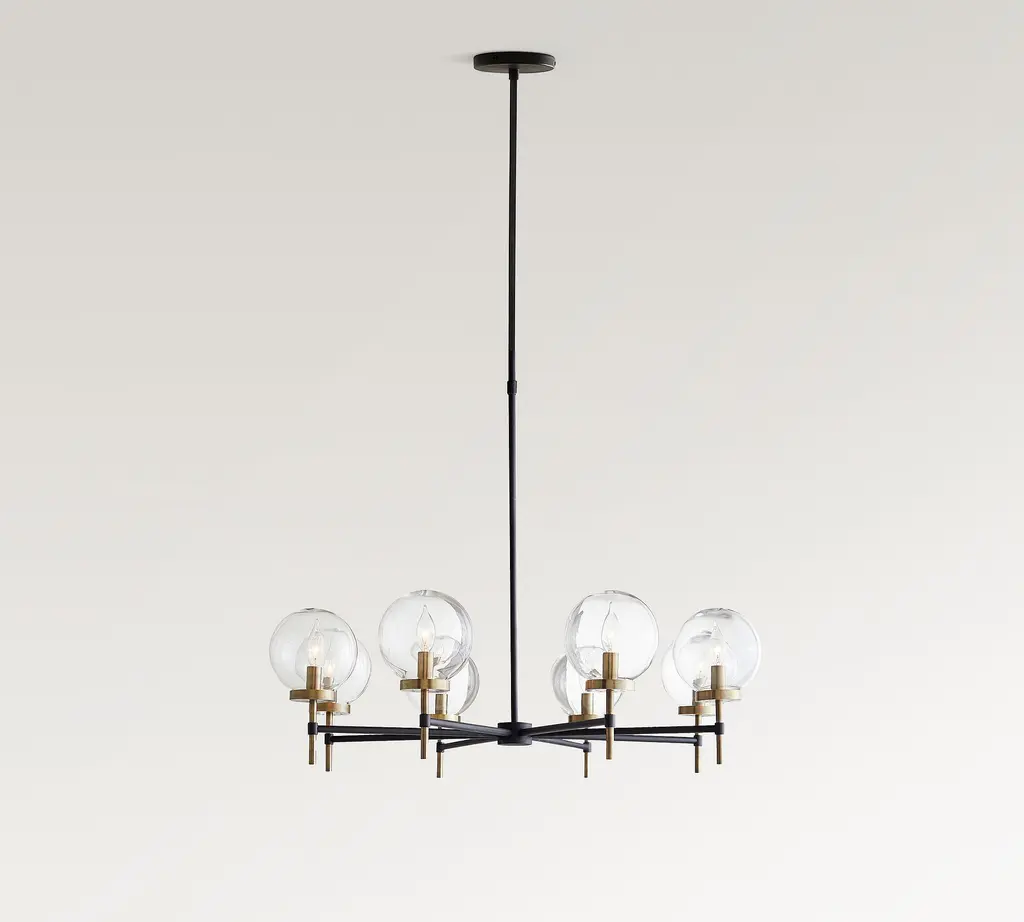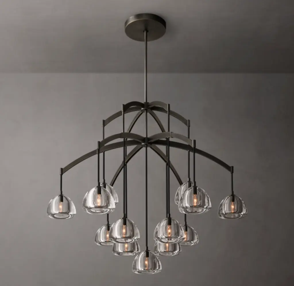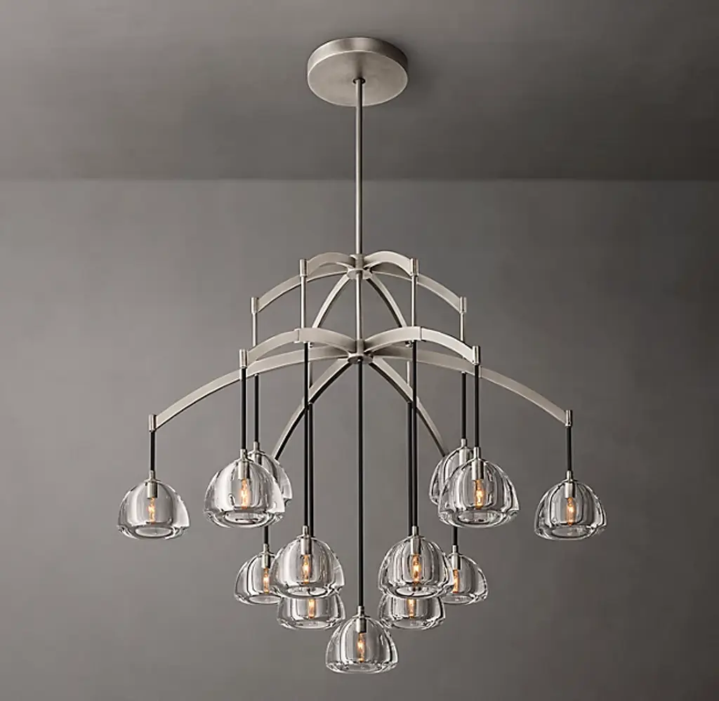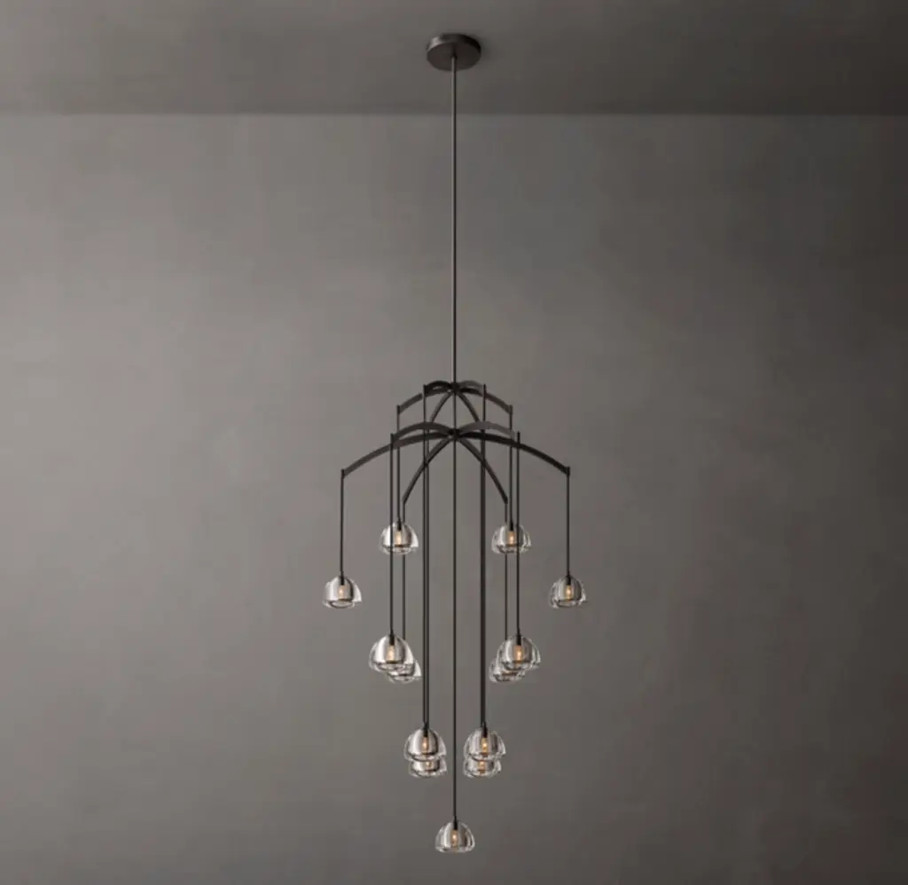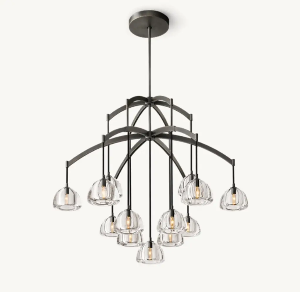 Created by master glass designer Alison Berger, Hemisphere's crystal is lathe-carved and hand polished over several days to achieve its stunning luster. Suspended from a brass frame, the heavy domes play counterpoint to the refined arc.SHOP THE ENTIRE COLLECTION