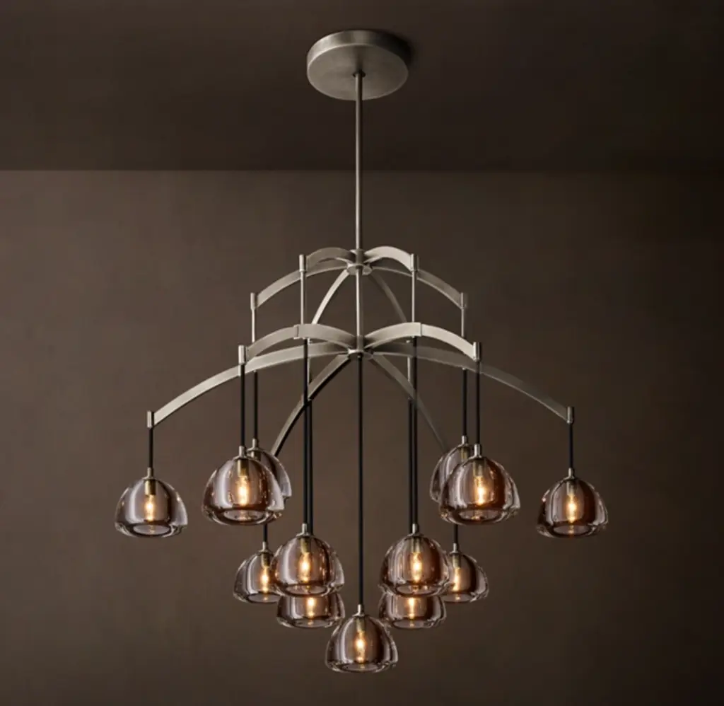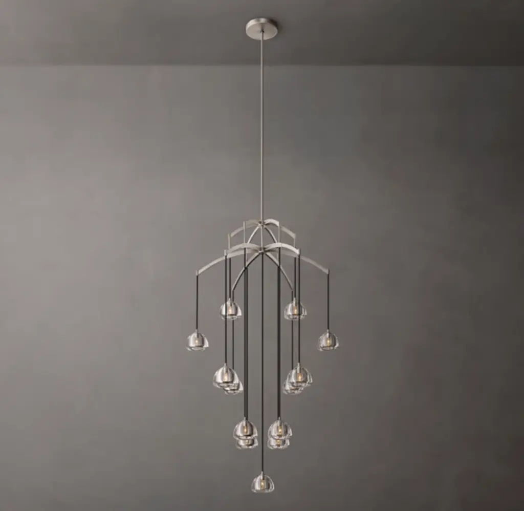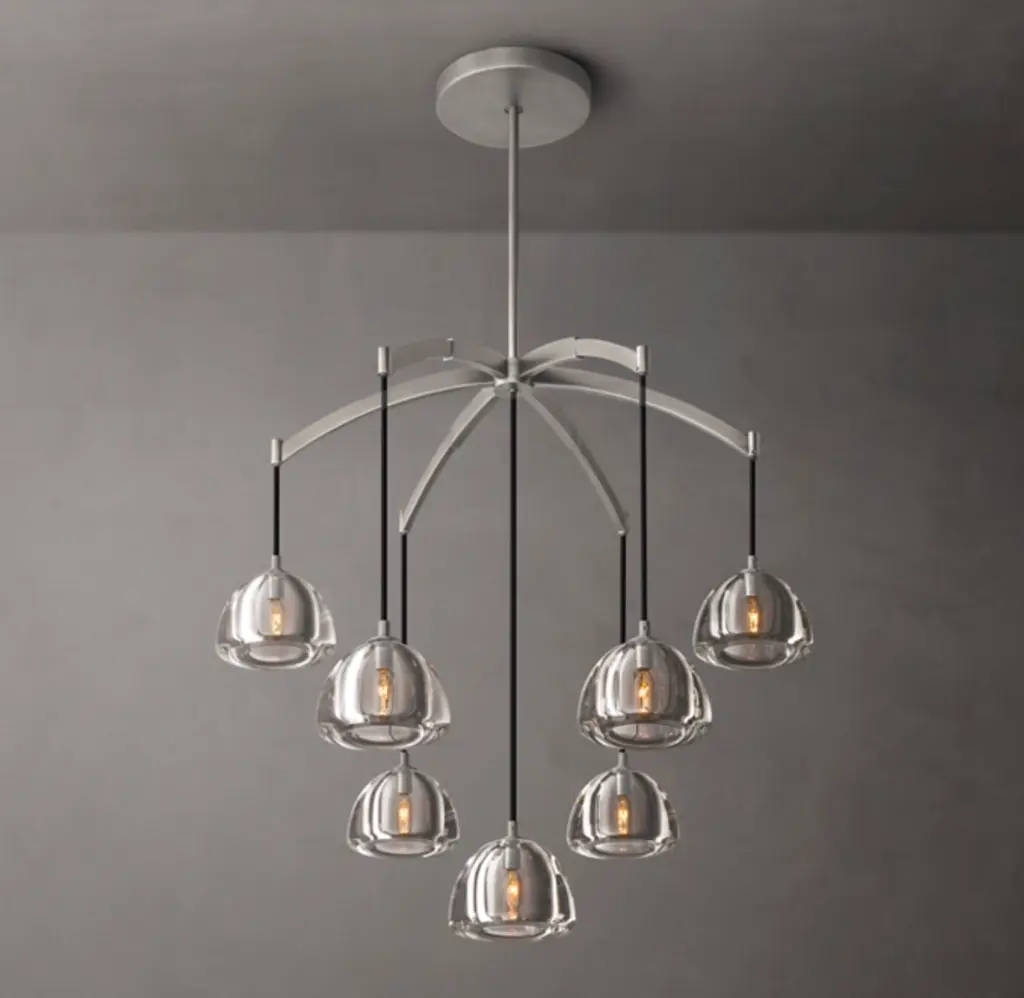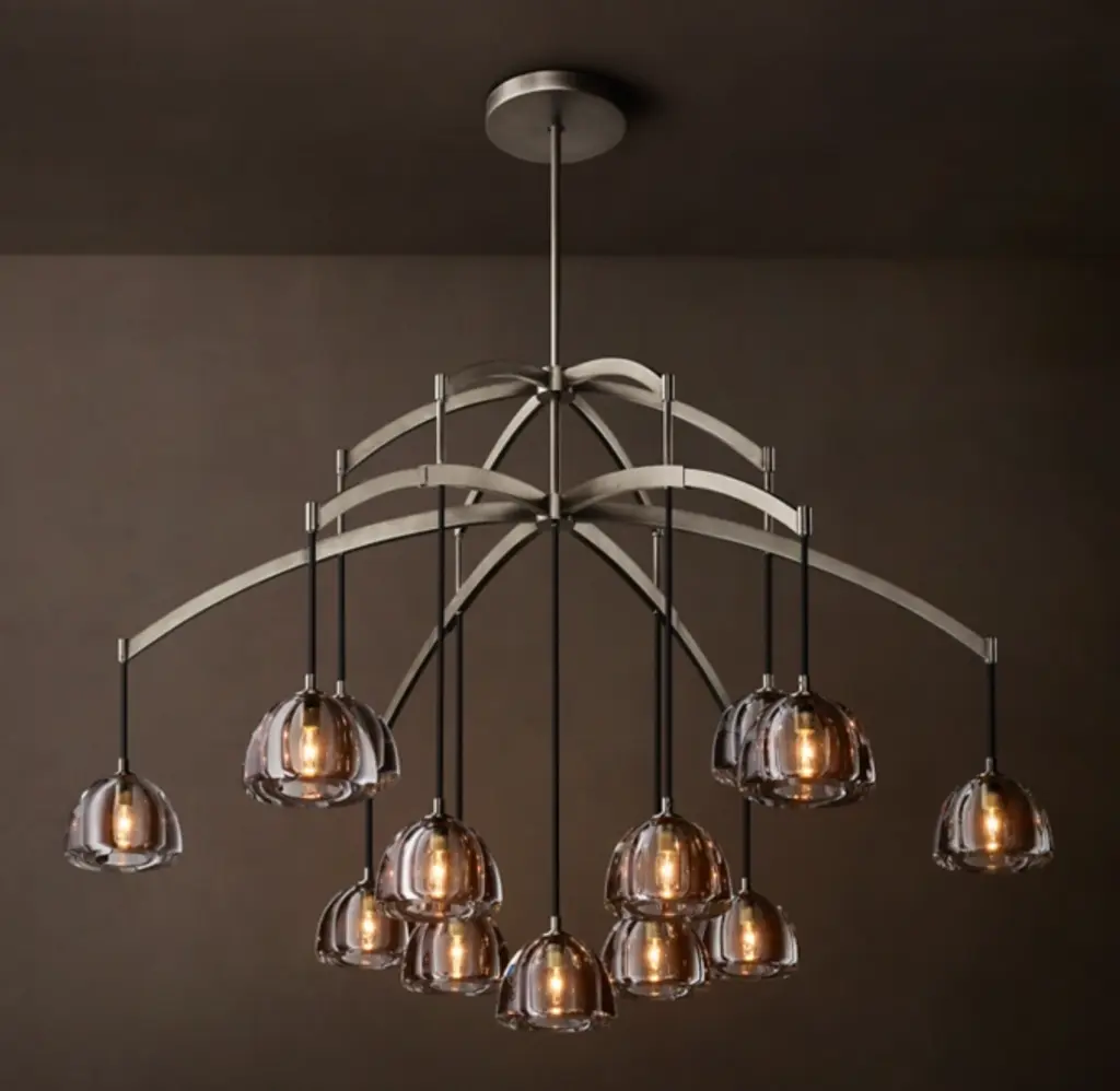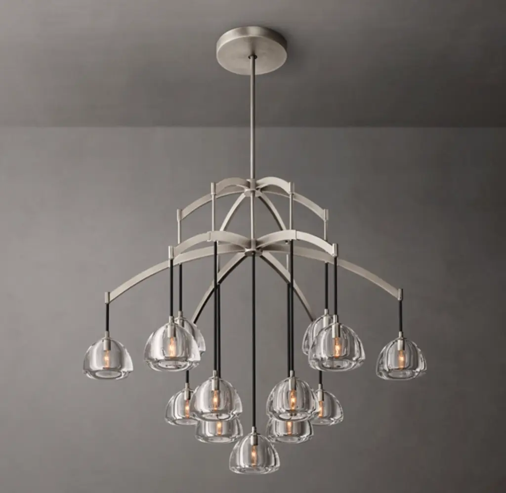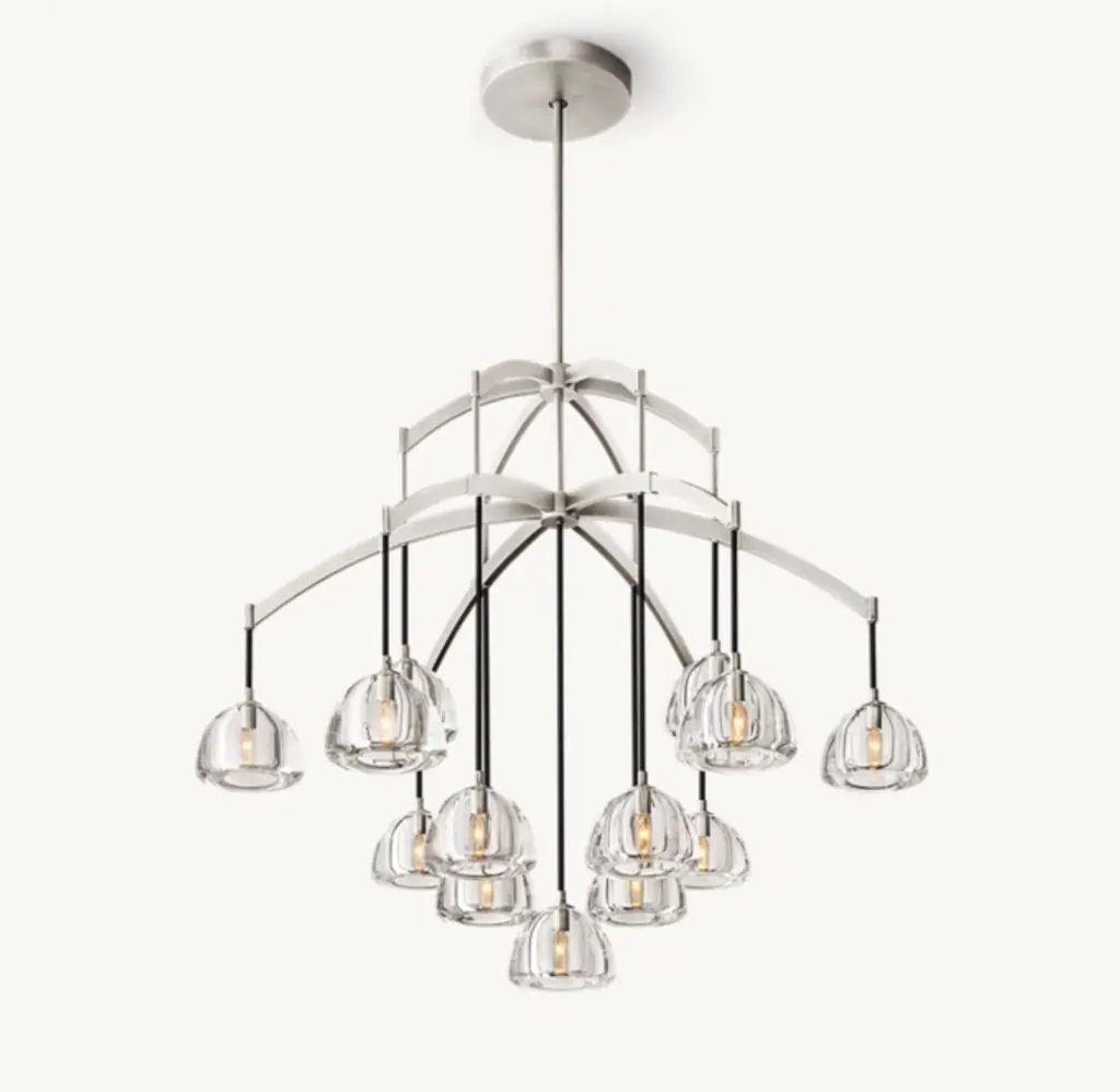 Created by master glass designer Alison Berger, Hemisphere's crystal is lathe-carved and hand polished over several days to achieve its stunning luster. Suspended from a brass frame, the heavy domes play counterpoint to the refined arc.SHOP THE ENTIRE COLLECTION
