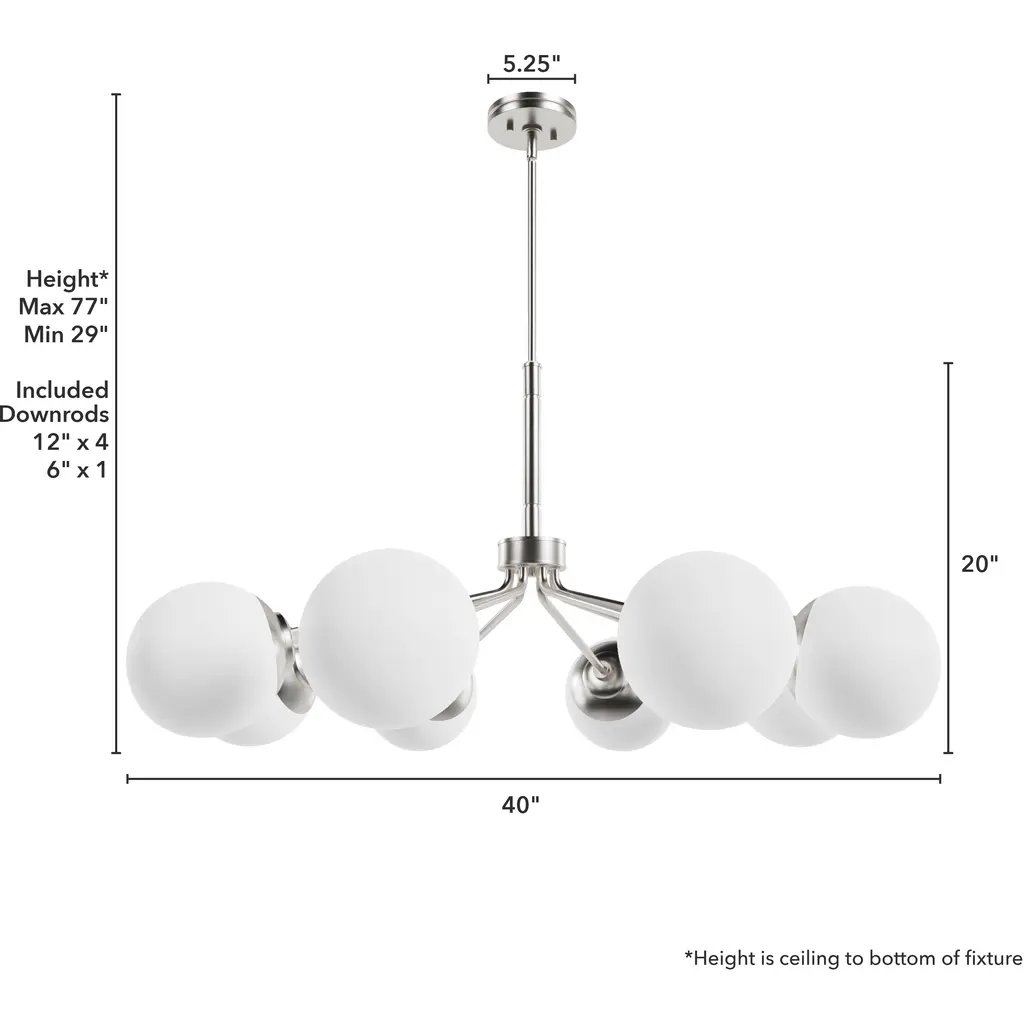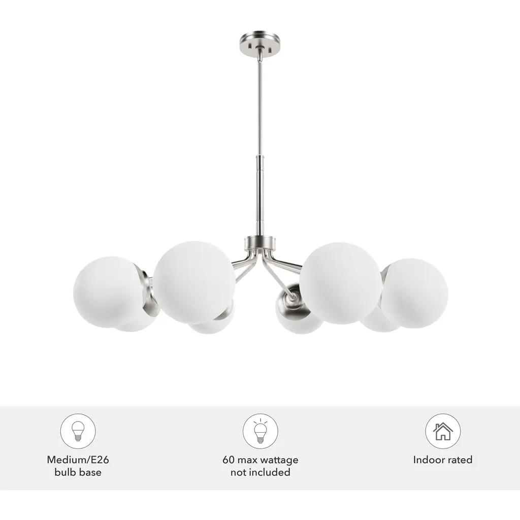 Hepburn 8 Light 40 Inch Brushed Nickel Chandelier Ceiling Light, Extra Large