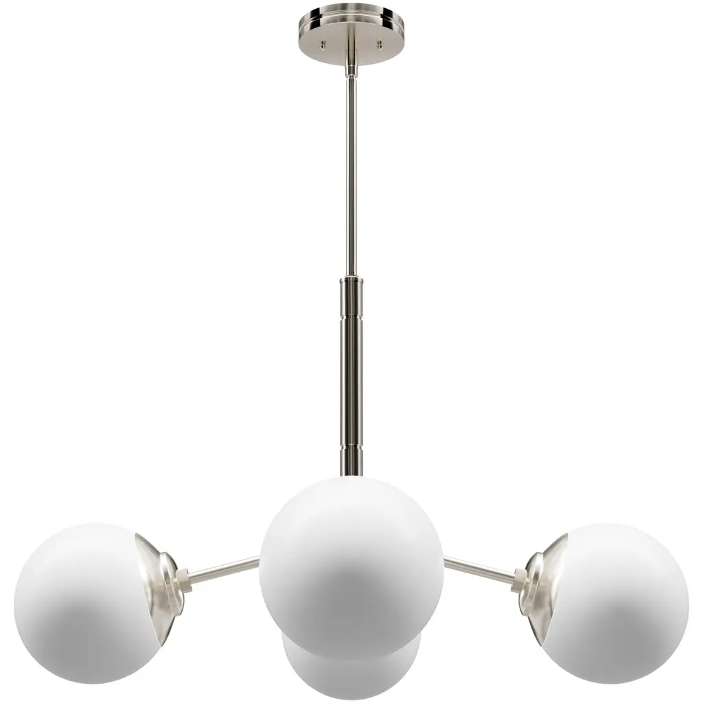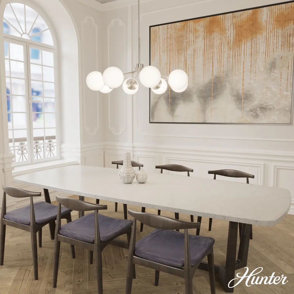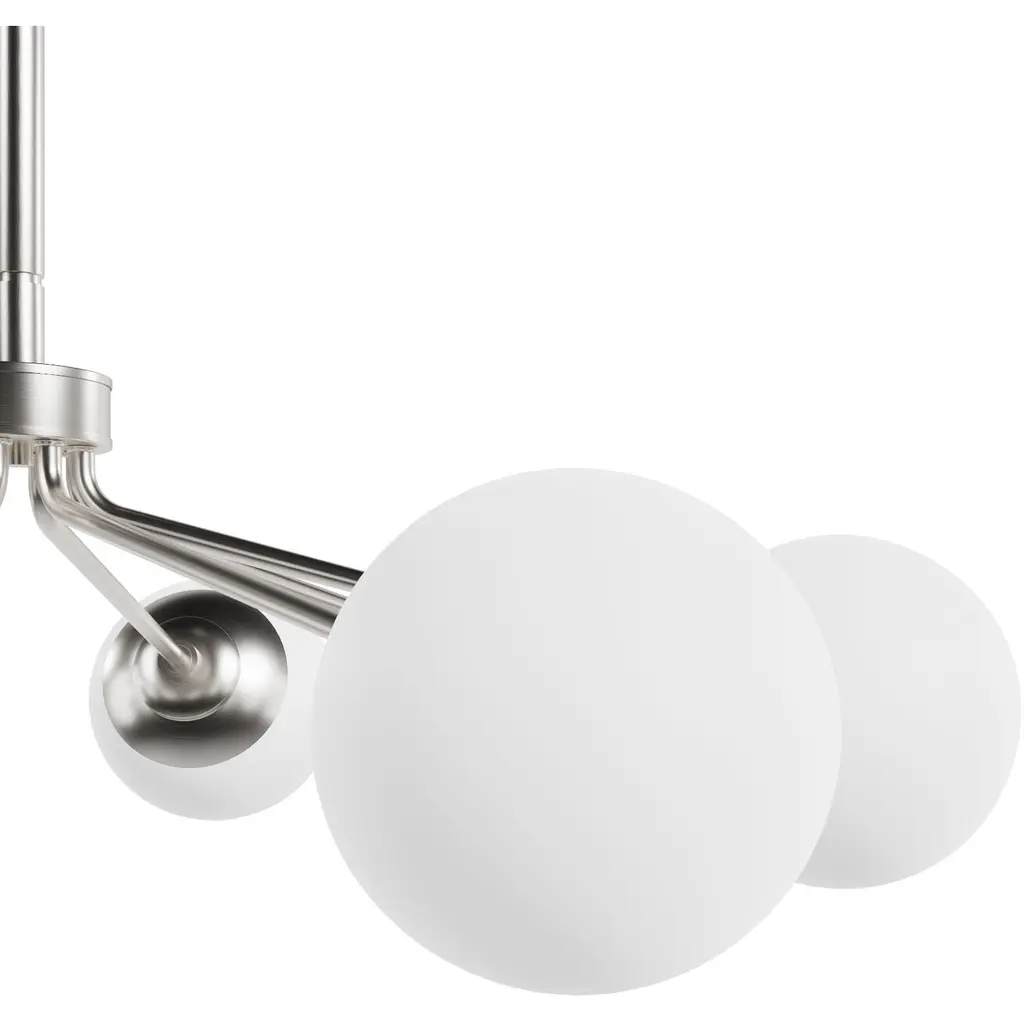 Your style is full-on glam, and you like pieces that reflect it. The Hepburn chandelier is the perfect light for you. This light is stunning with a design inspired by the glamour of old Hollywood! Eight orbs of cased-white glass will cast a flattering glow in your living room. This light offers brilliant illumination to every gathering. Add other lights from the collection for a glam look throughout.