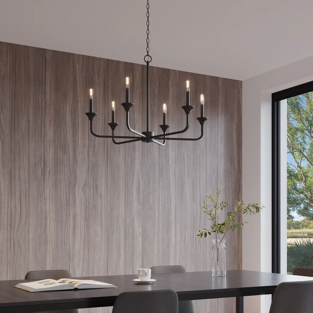 Herring 6 Light 32 Inch Matte Black Chandelier Ceiling Light