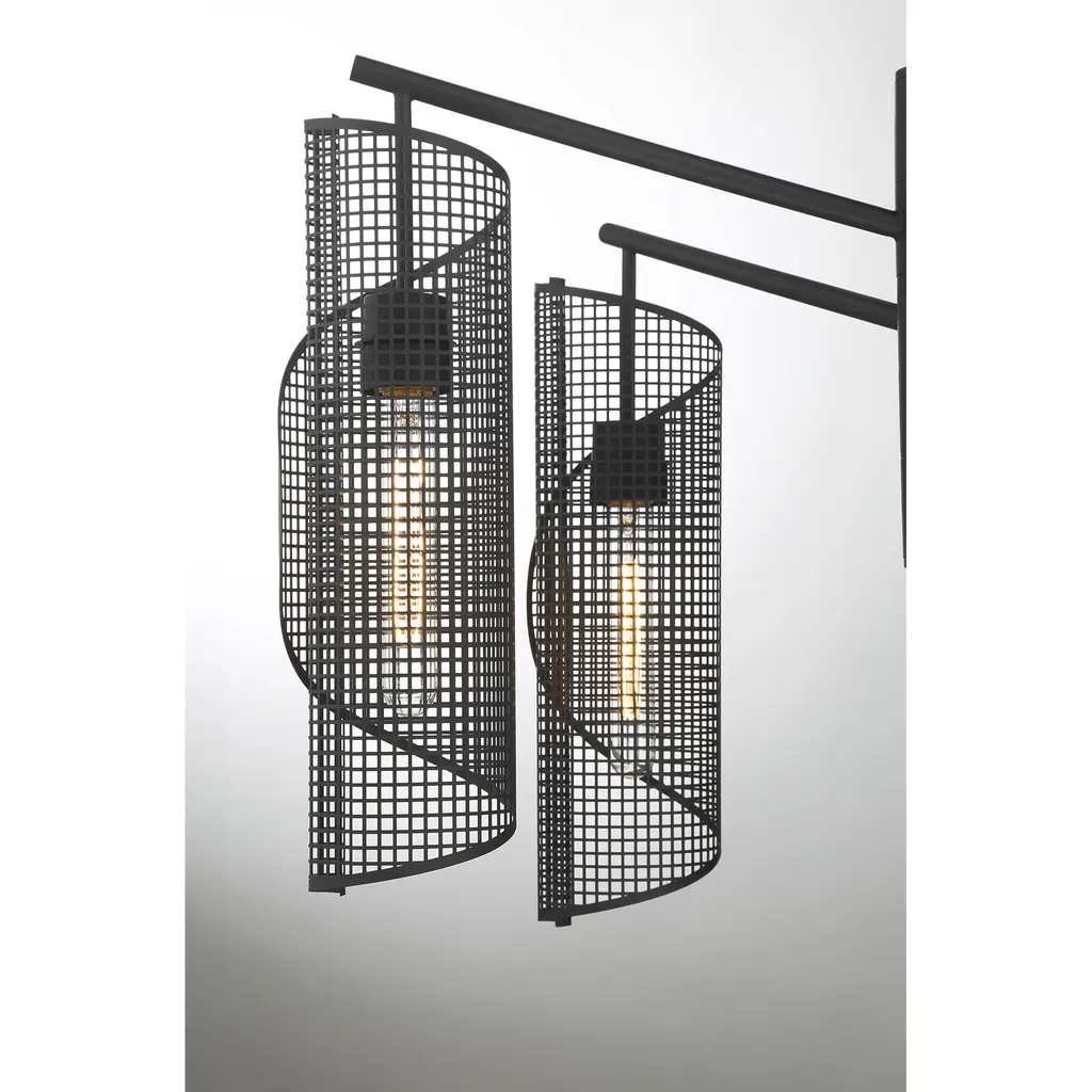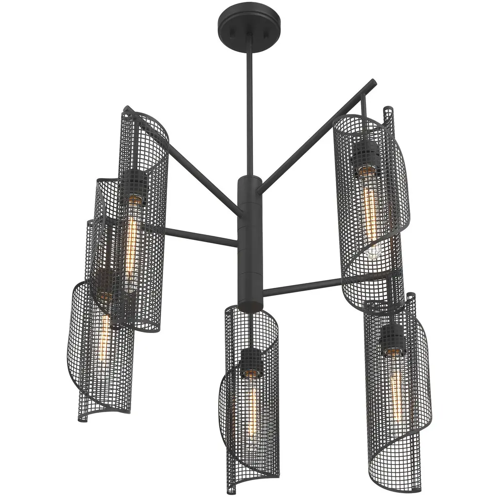 The Savoy House Hillbourne 5-light chandelier showcases ribbons of intriguing urban loft style. Its perforated metal shades, finished in Matte Black, appear to swirl and twirl beautifully. The lights hang down at different heights for added motion and intrigue. Hillbourne is 28 in width and has an adjustable height ranging from 25 to 79. Uses five standard size bulbs of up to 60 watts per bulb. Bulbs not included. Comes with four 12 downrods and one 6 downrod.