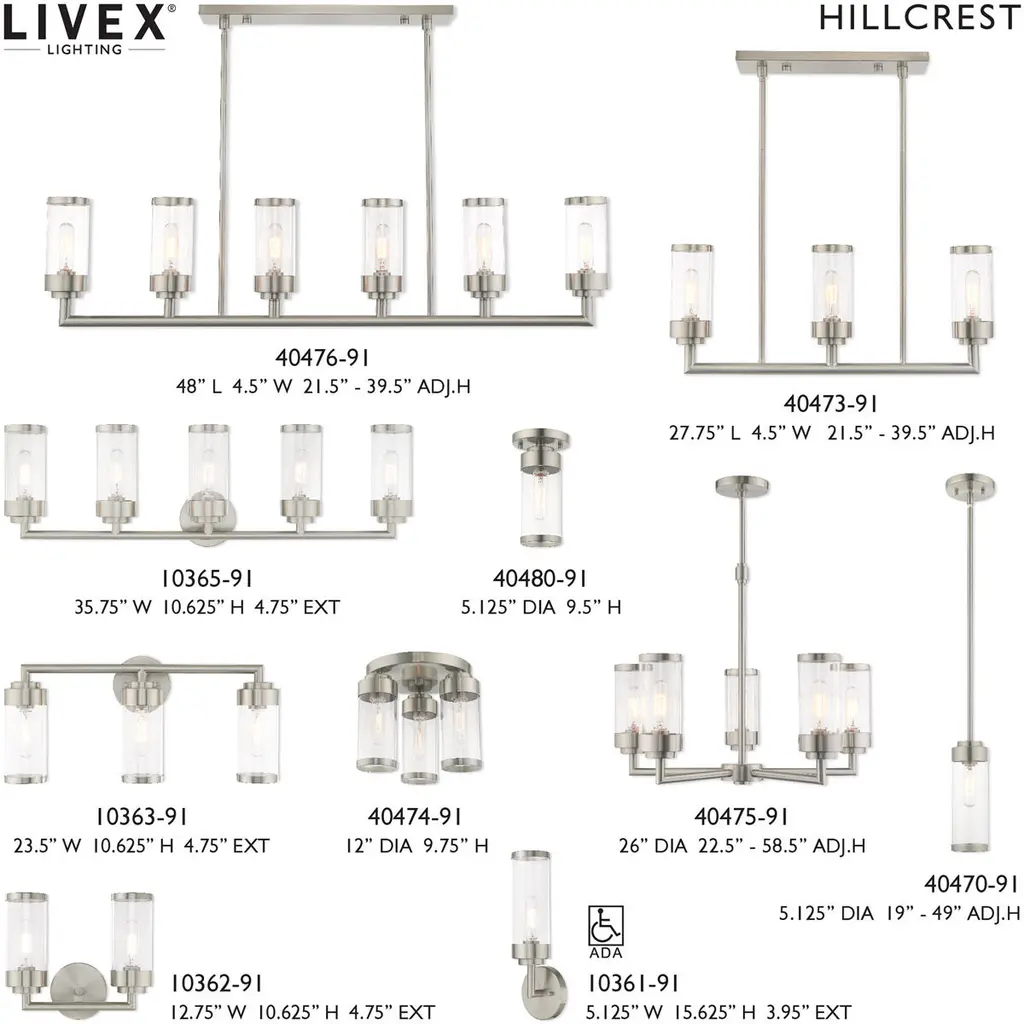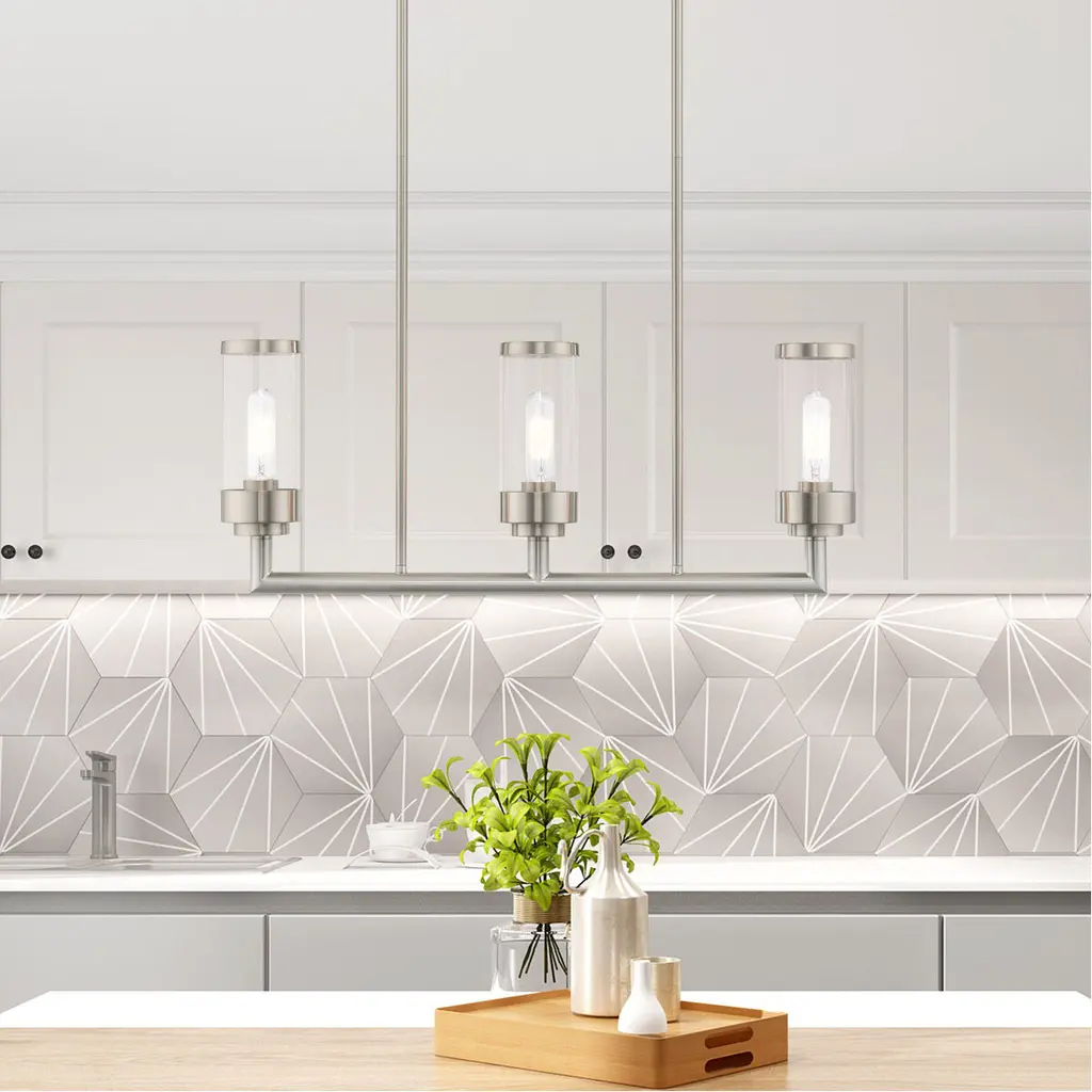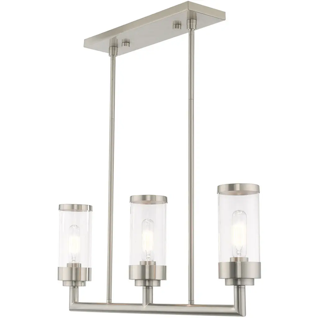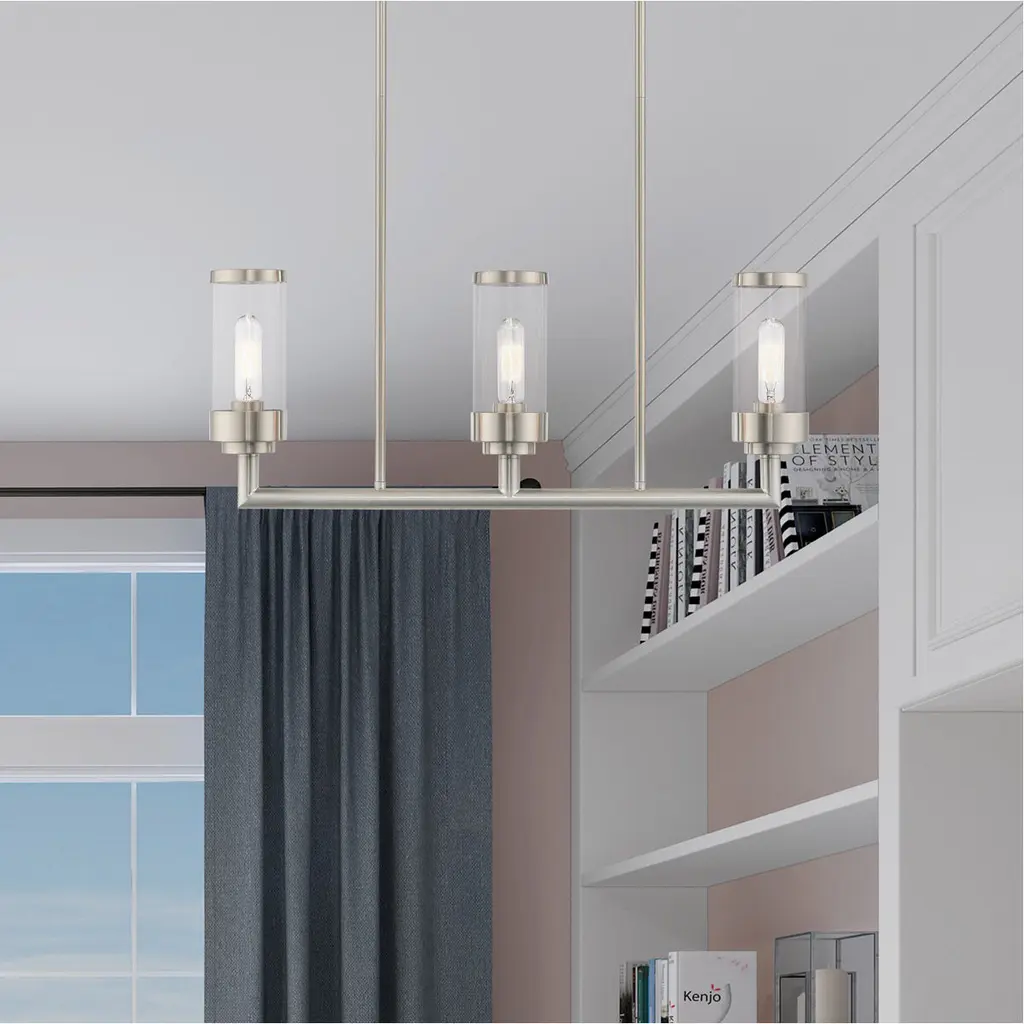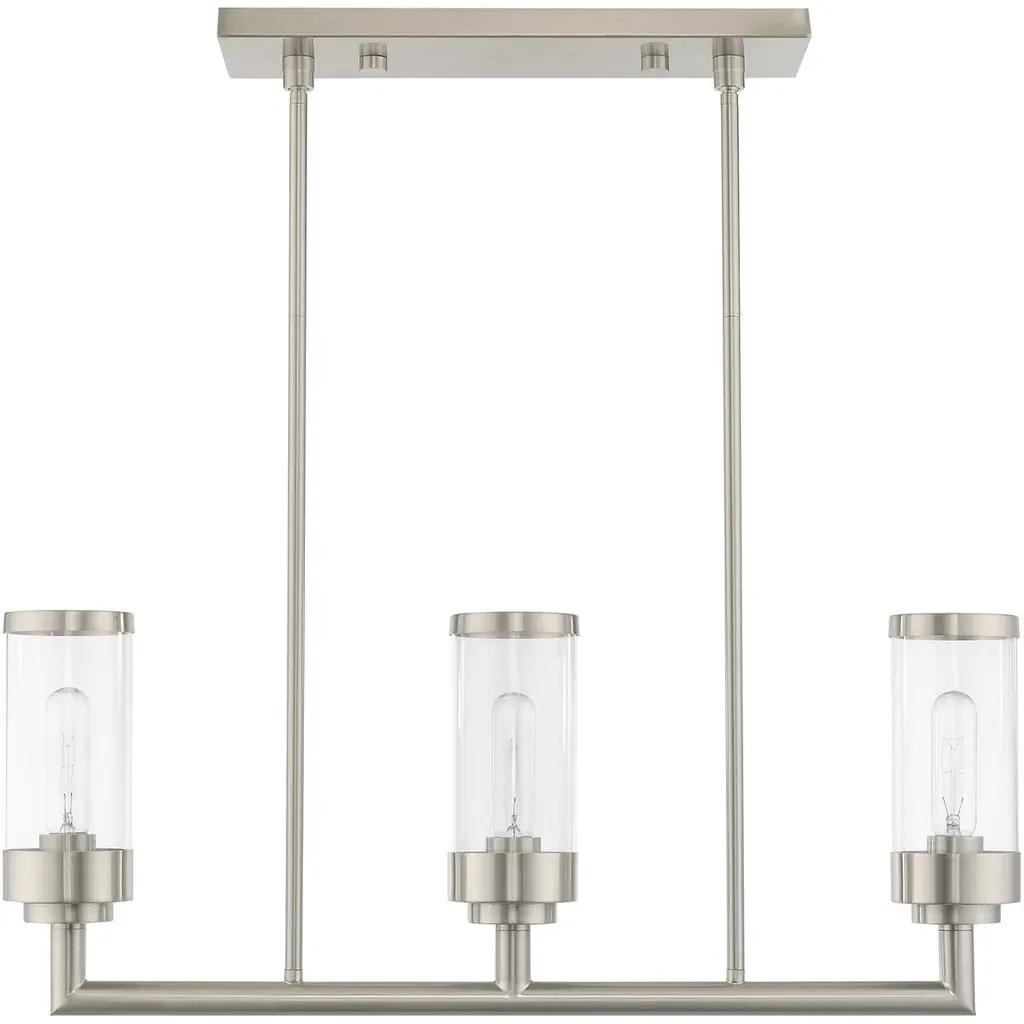 Hillcrest 3 Light 28 Inch Brushed Nickel Linear Chandelier Ceiling Light